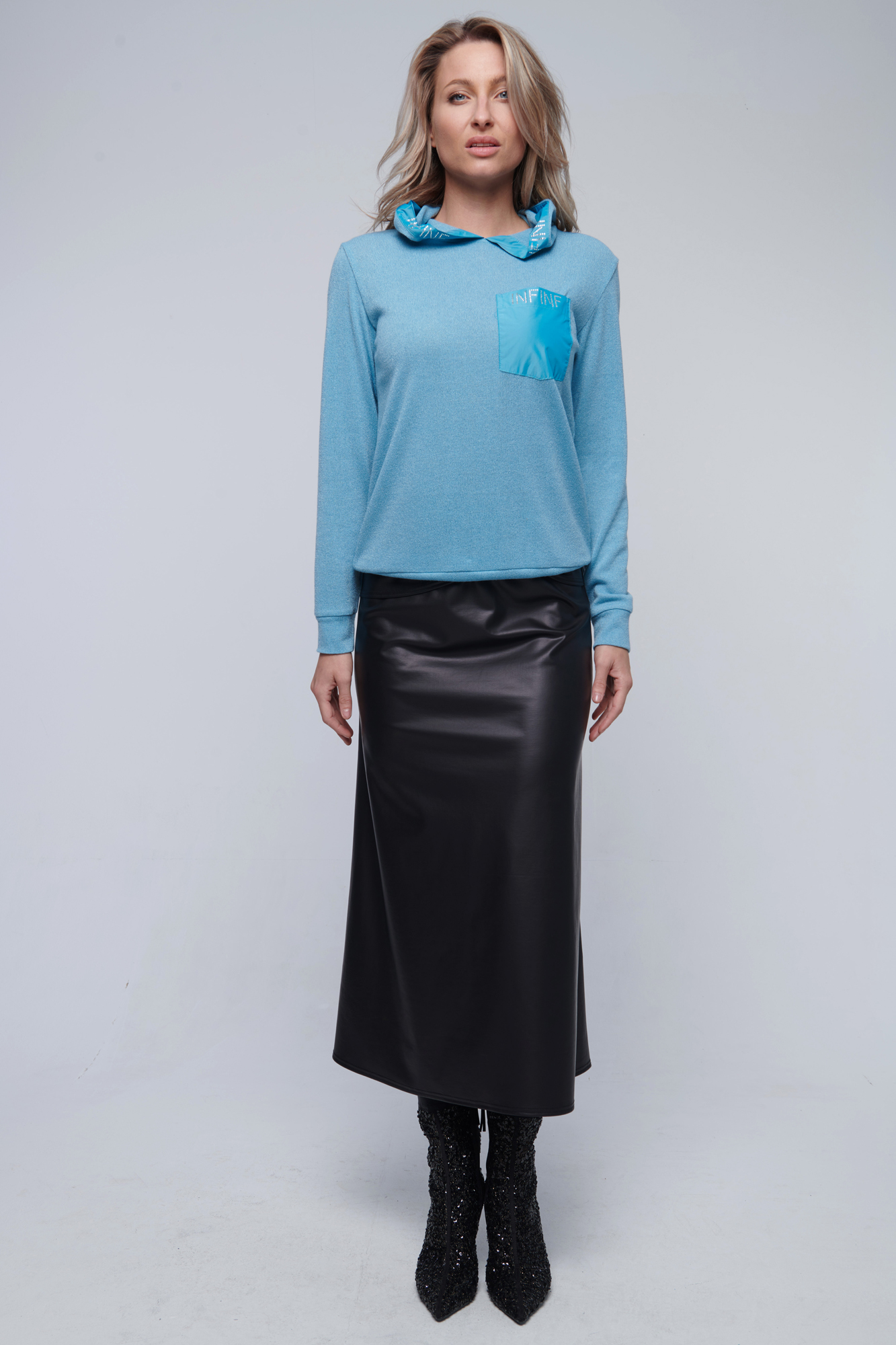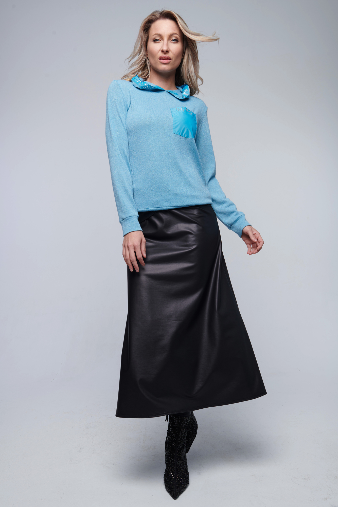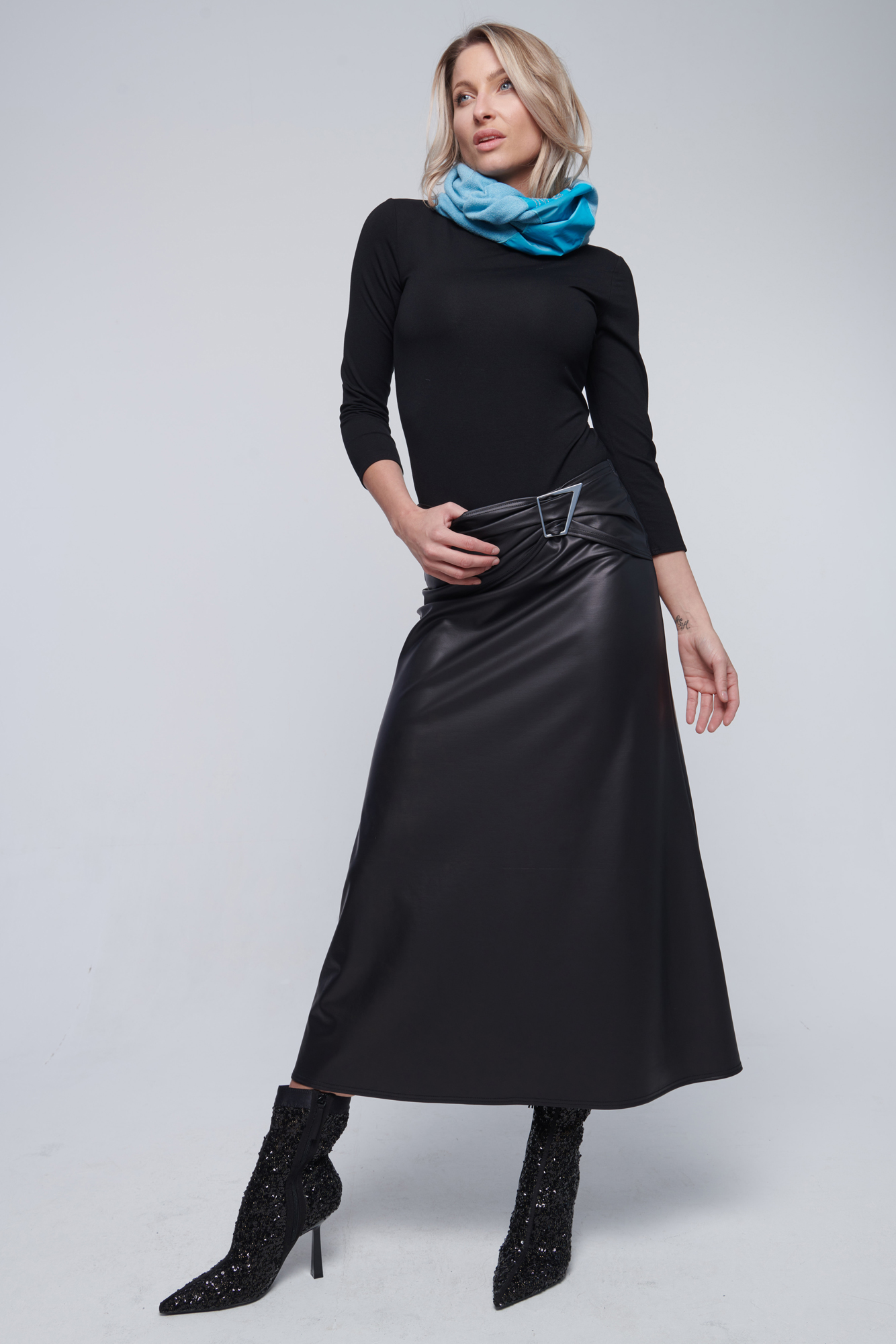 Dlouhá sukně z eko kůže. V pase okrasná spona.