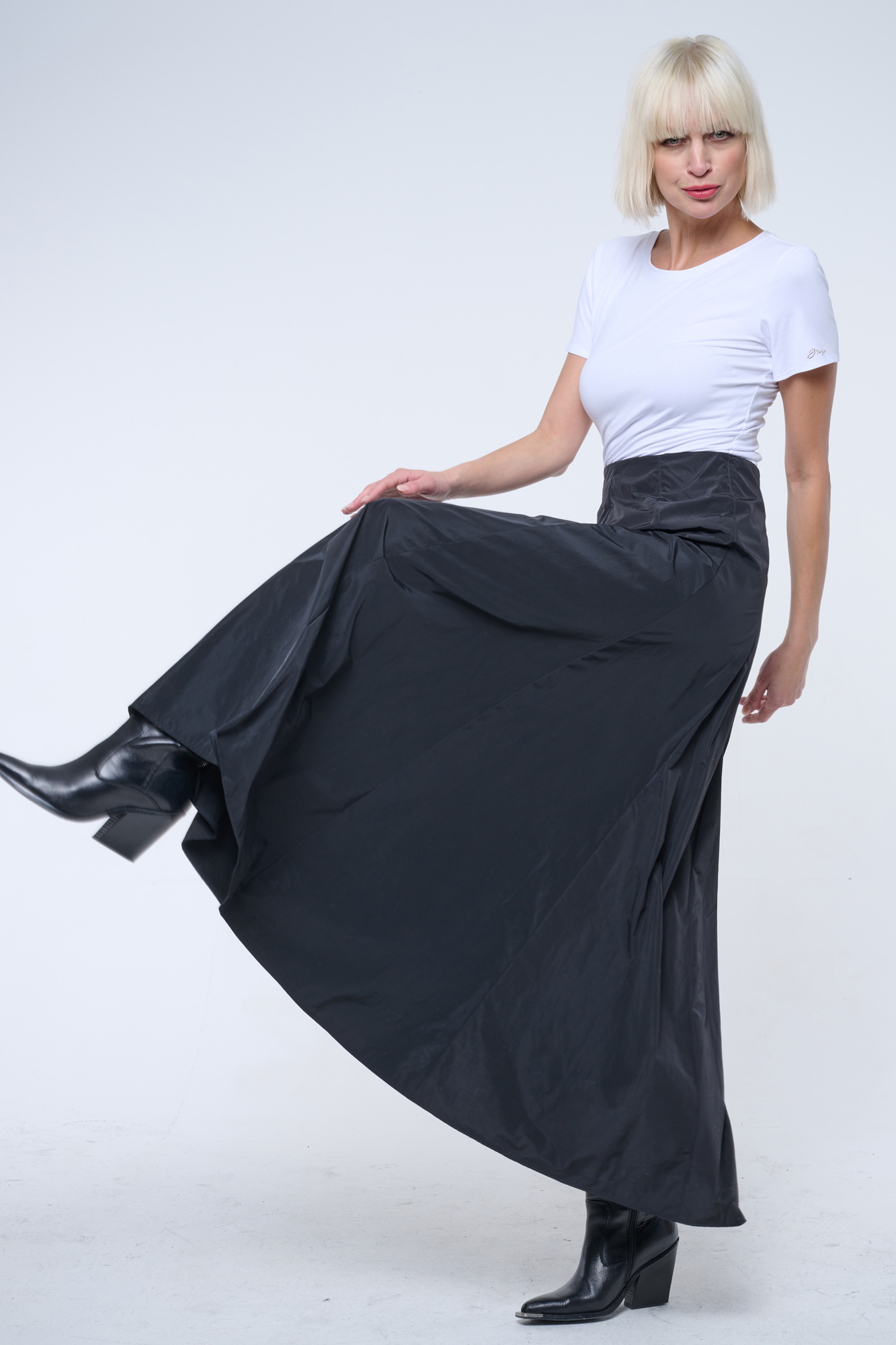Dlouhá módní taftová sukně. V pase guma.