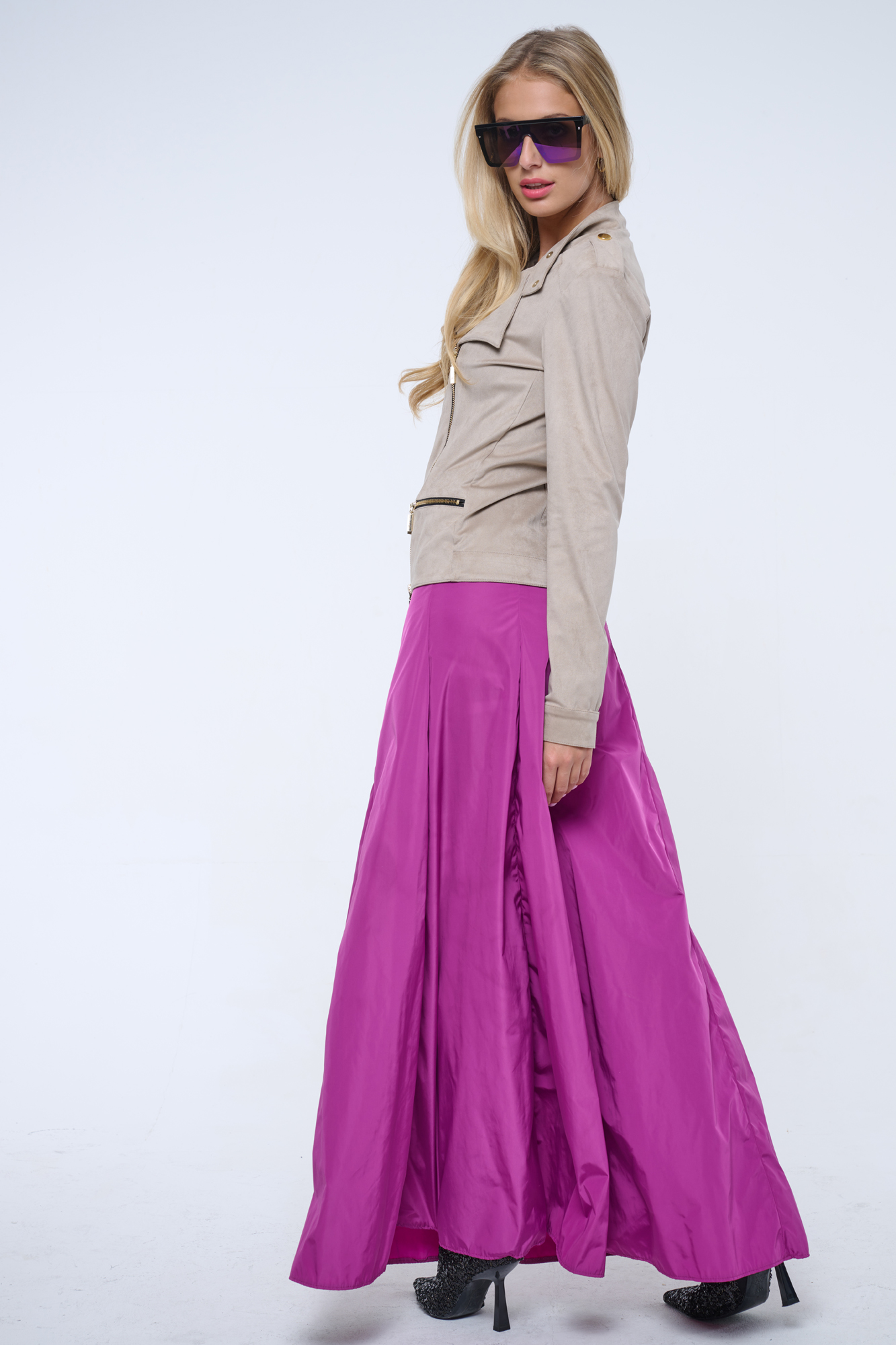 Dlouhá módní taftová sukně. V pase guma.