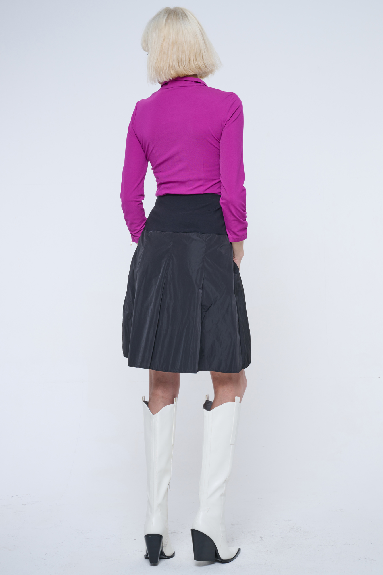 Módní taftová sukně v délce pod kolena. V pase guma.
