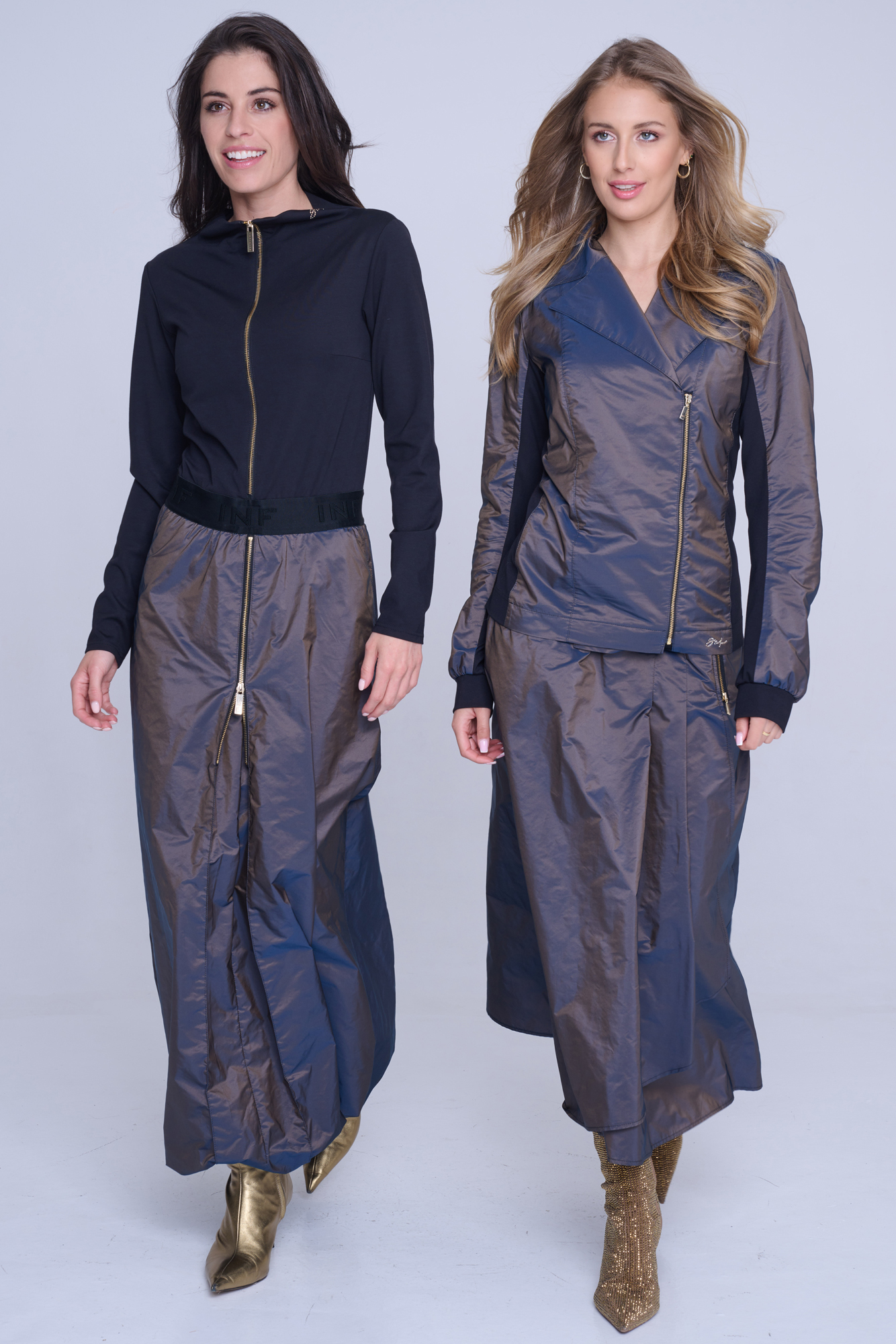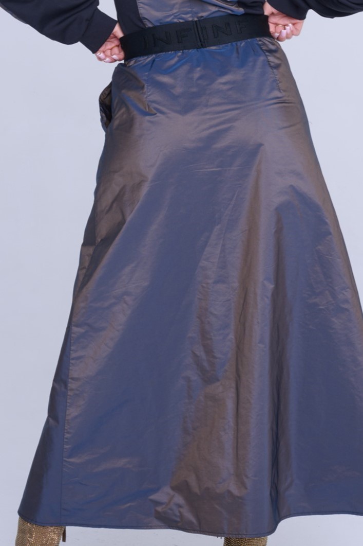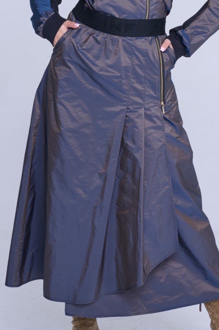 Šusťáková dlouhá sukně do áčka se zipem. V pase efektní guma INF.
