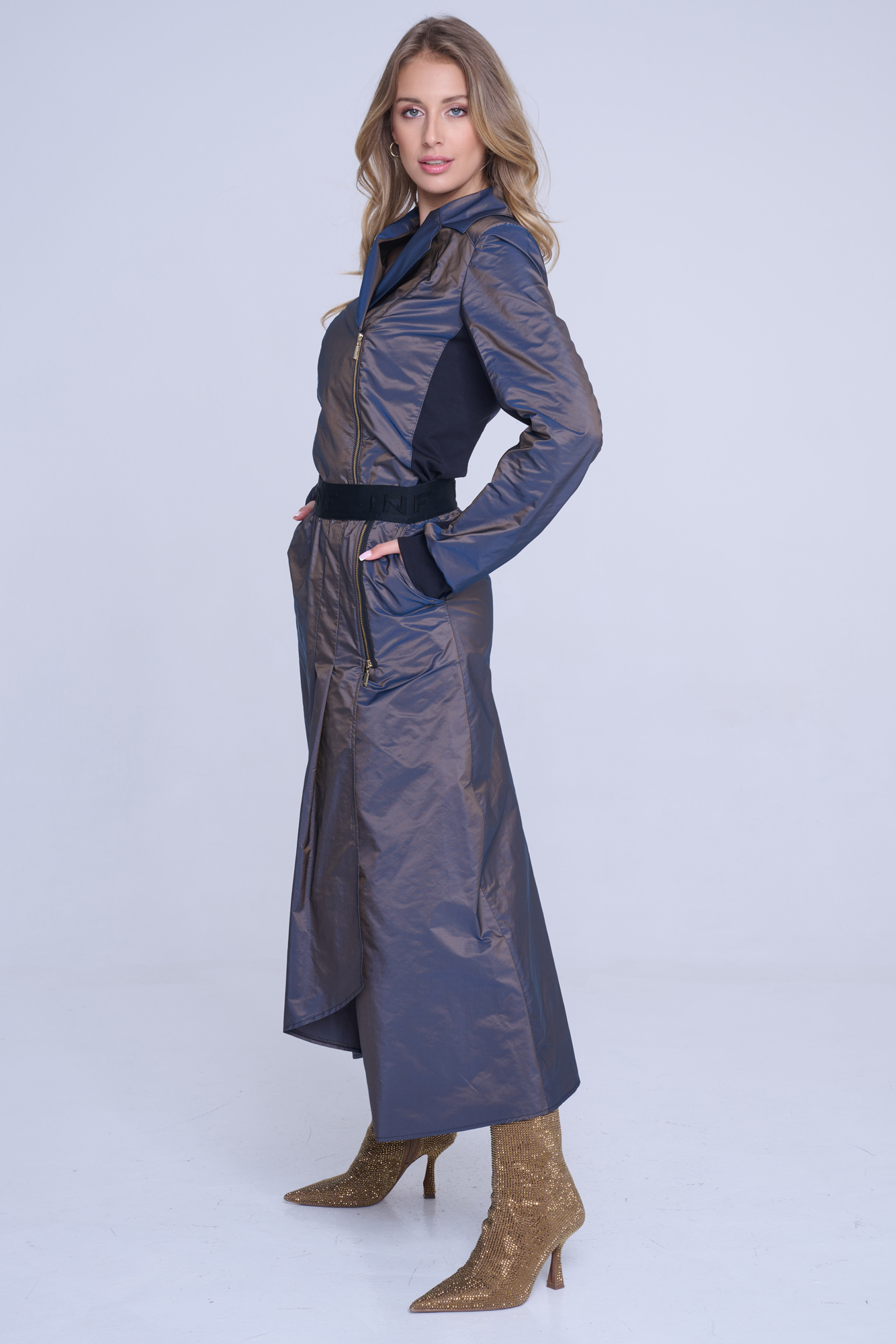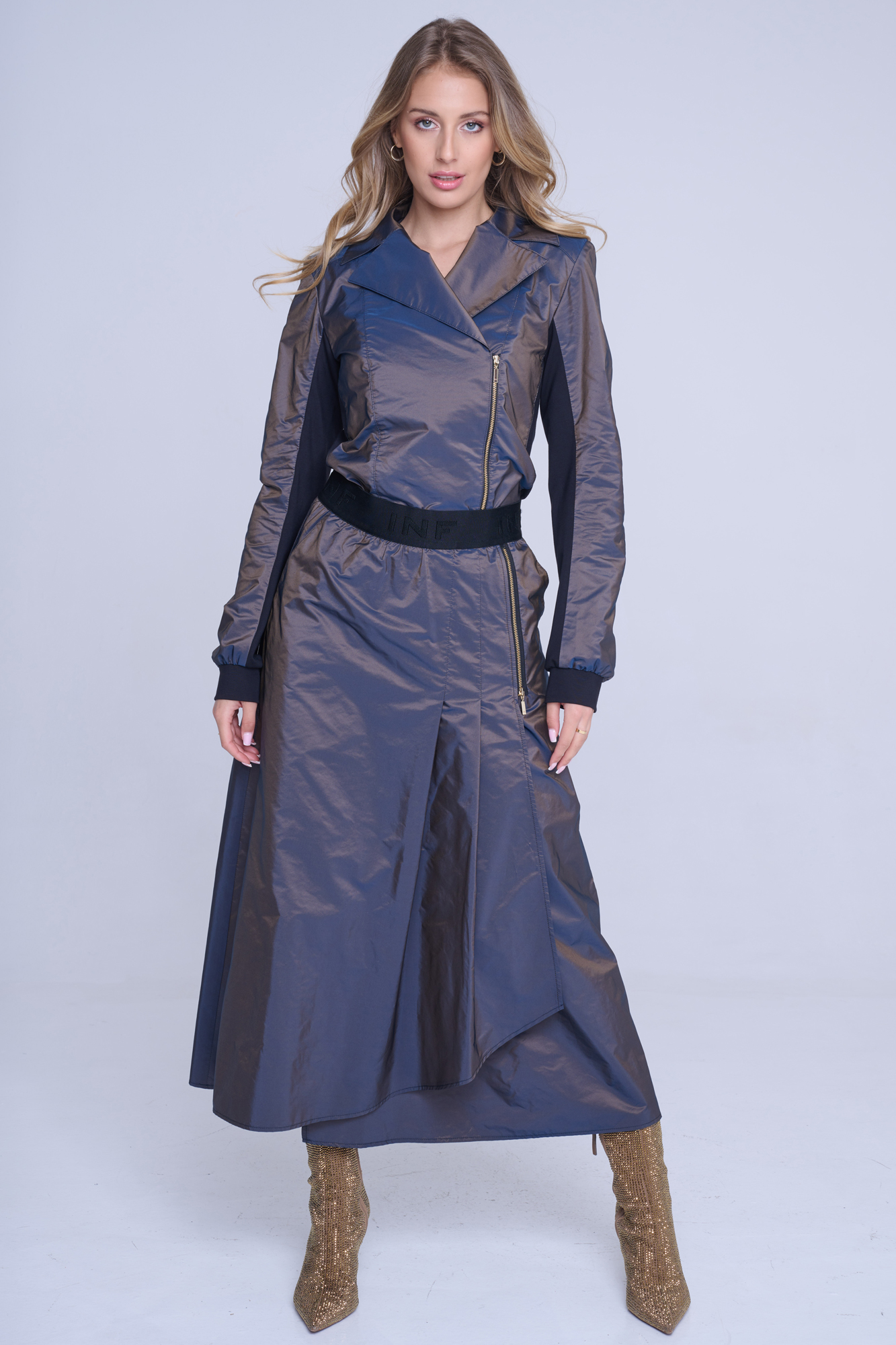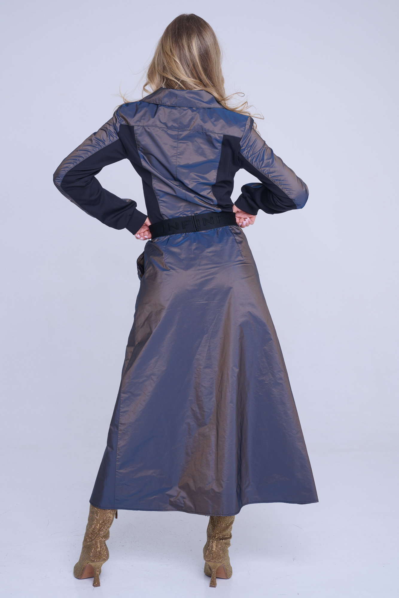 Šusťáková dlouhá sukně do áčka se zipem. V pase efektní guma INF.