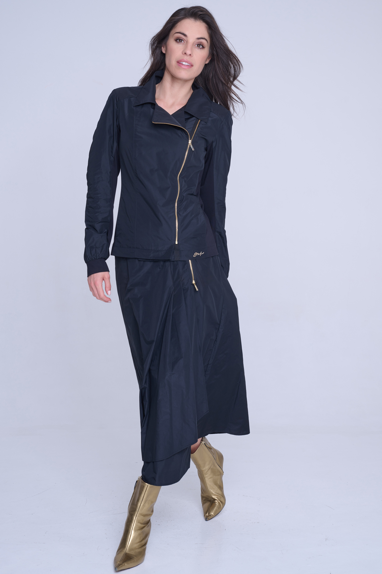 Šusťáková dlouhá sukně do áčka se zipem. V pase efektní guma INF.