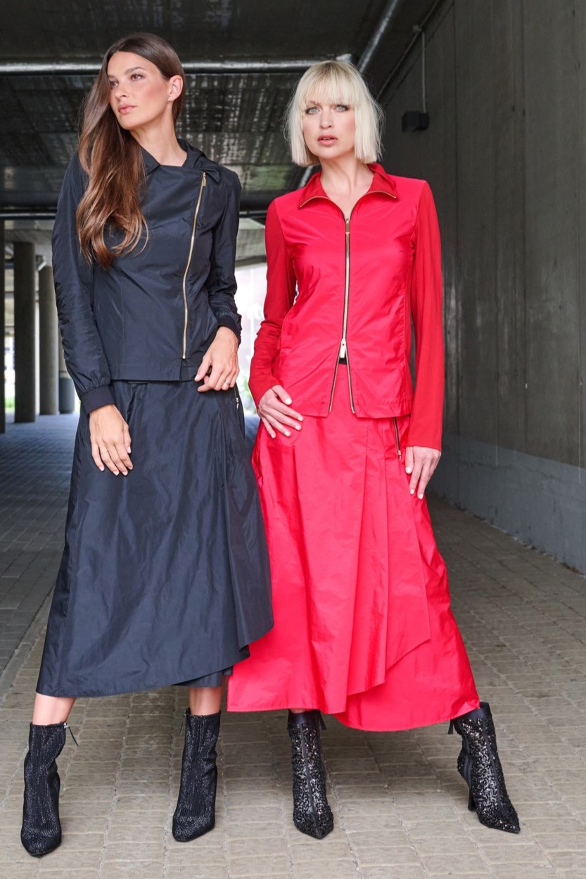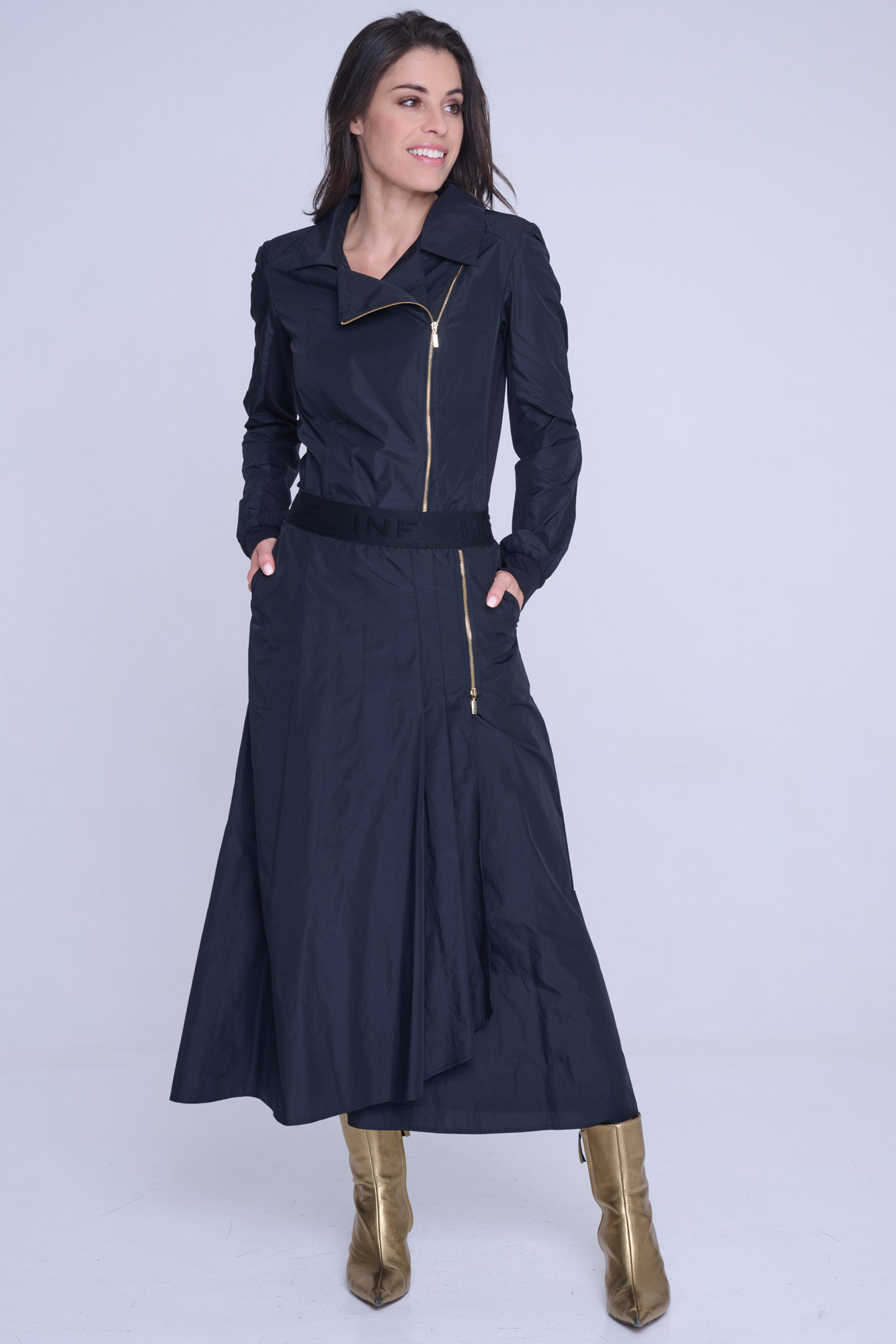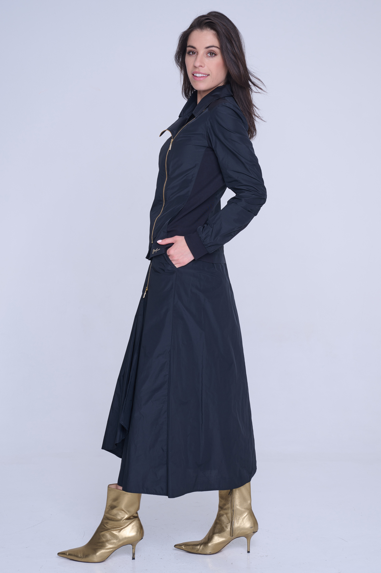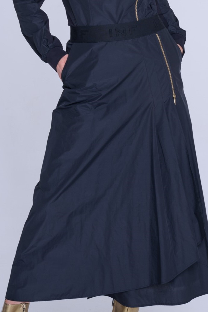 Šusťáková dlouhá sukně do áčka se zipem. V pase efektní guma INF.