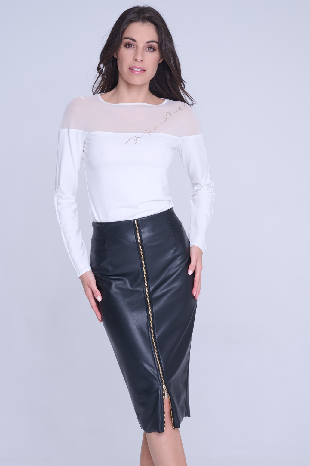 Dlouhá Infinite sukně těsně pod kolena se zlatým zipem z módní ekokůže. Velmi úzký sexy střih.