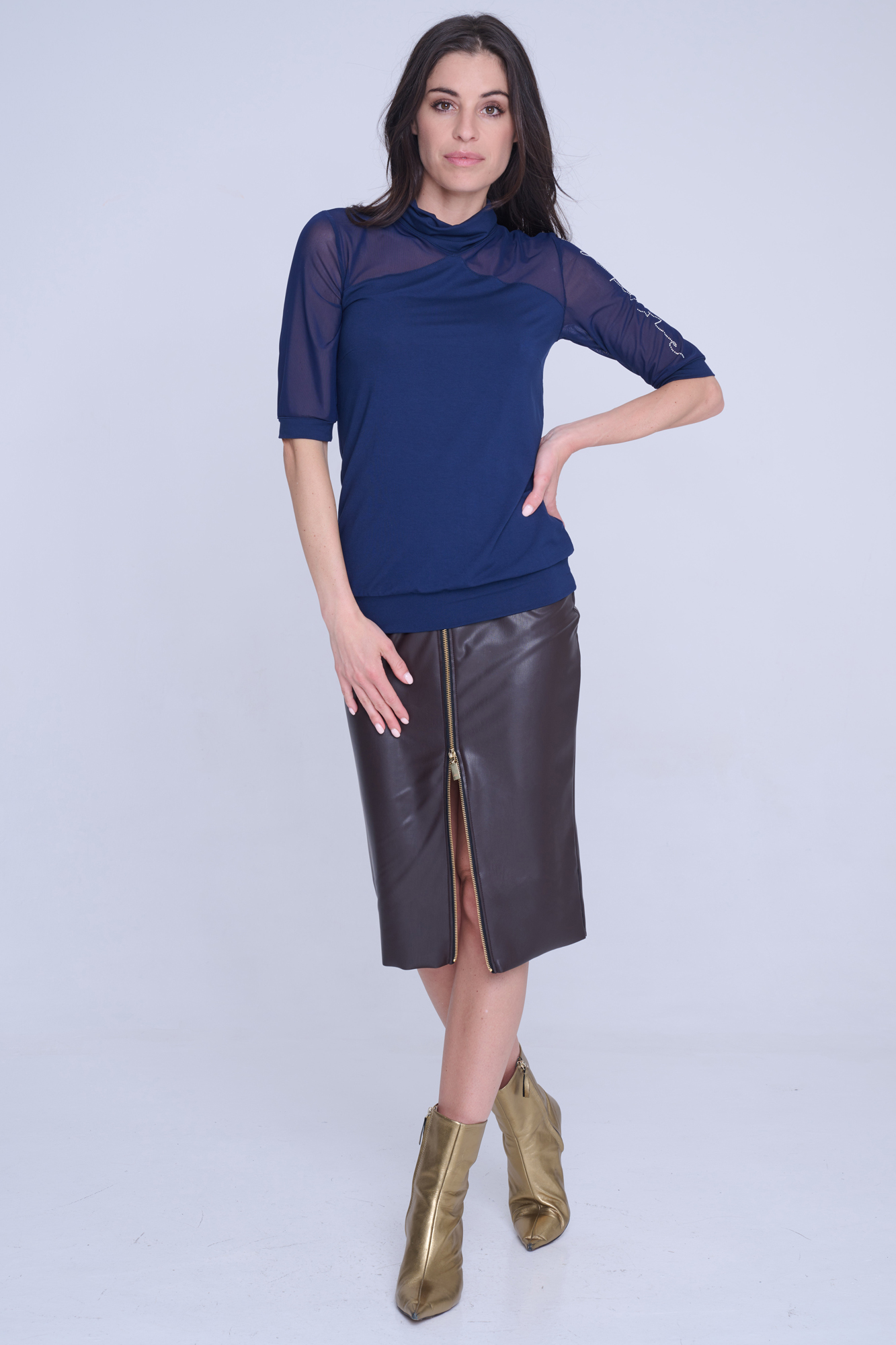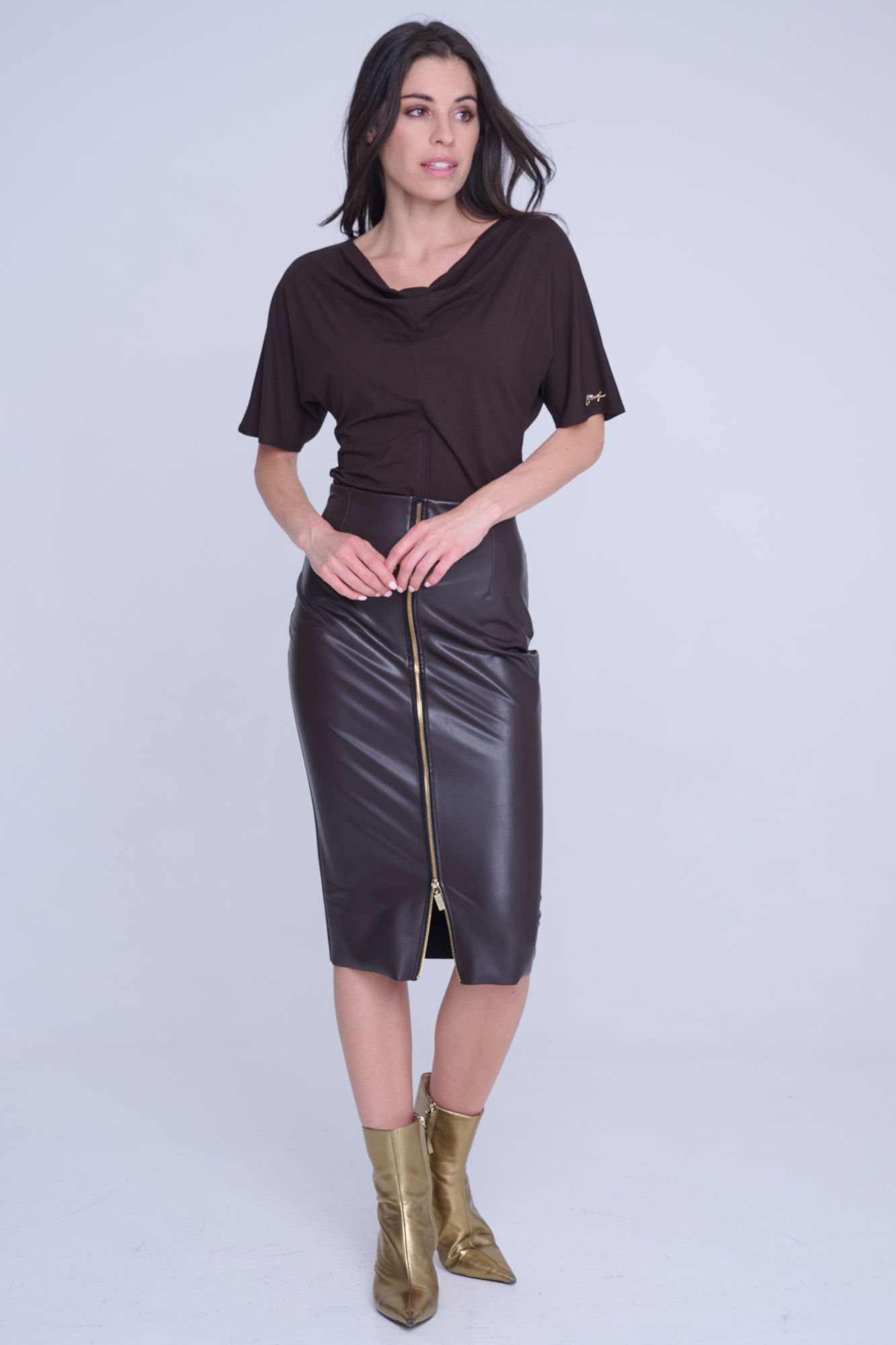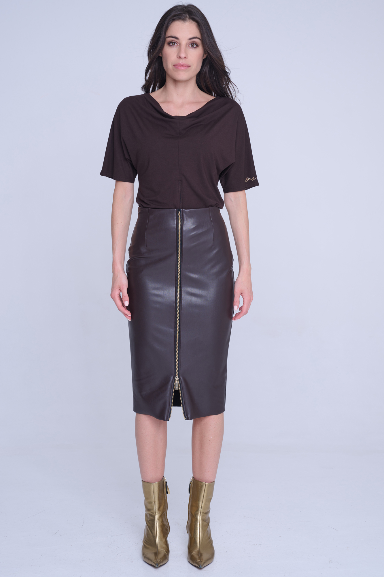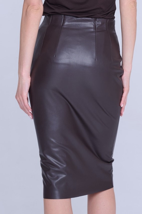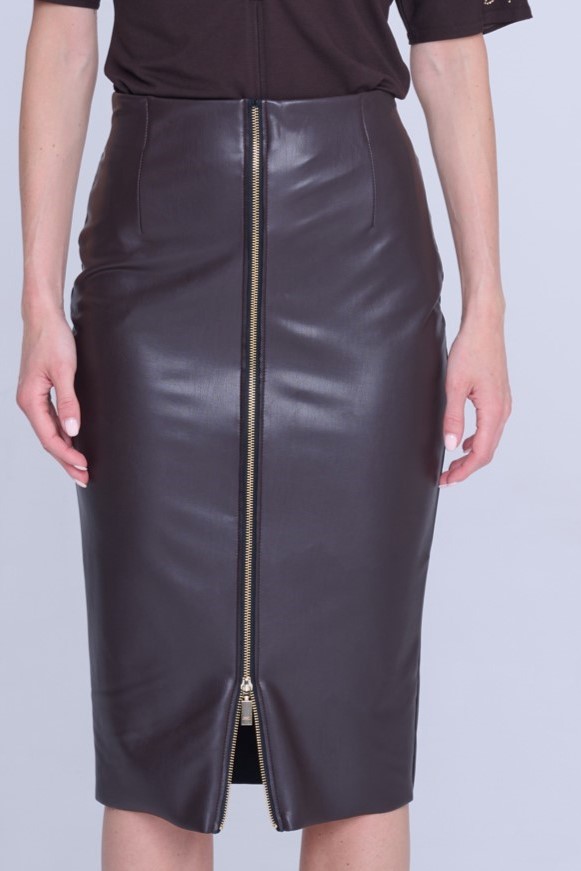 Dlouhá Infinite sukně těsně pod kolena se zlatým zipem z módní ekokůže. Velmi úzký sexy střih.