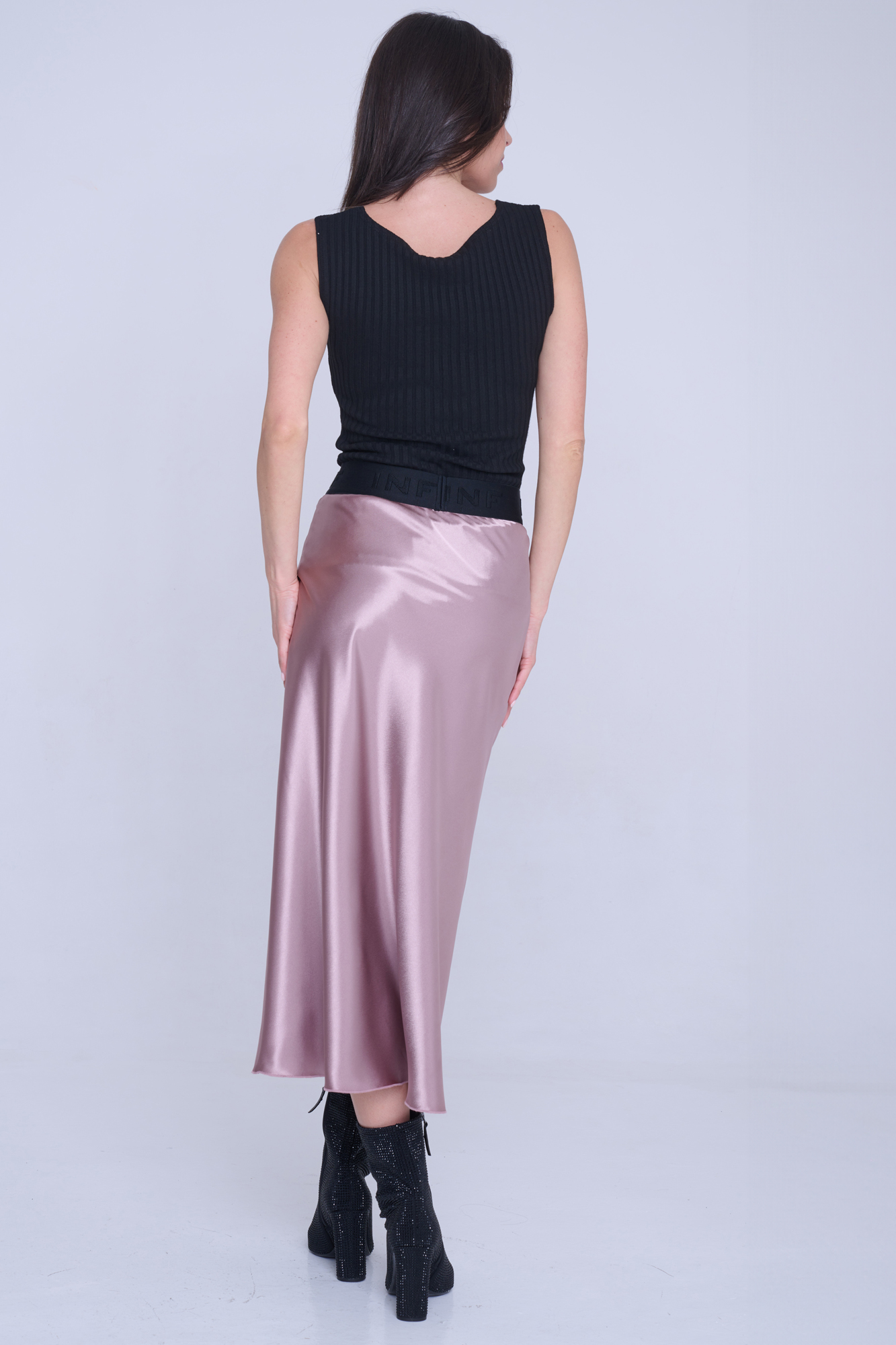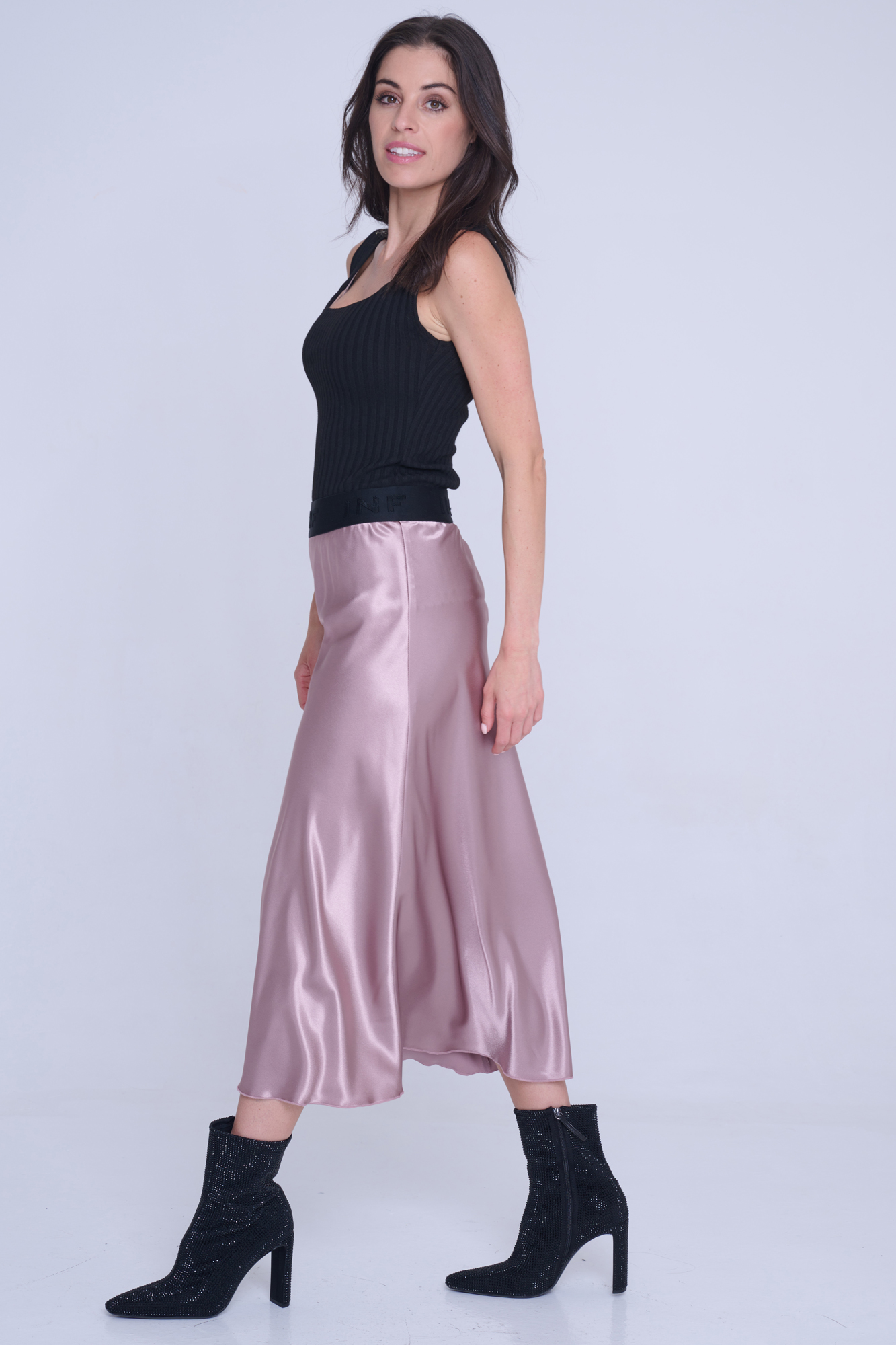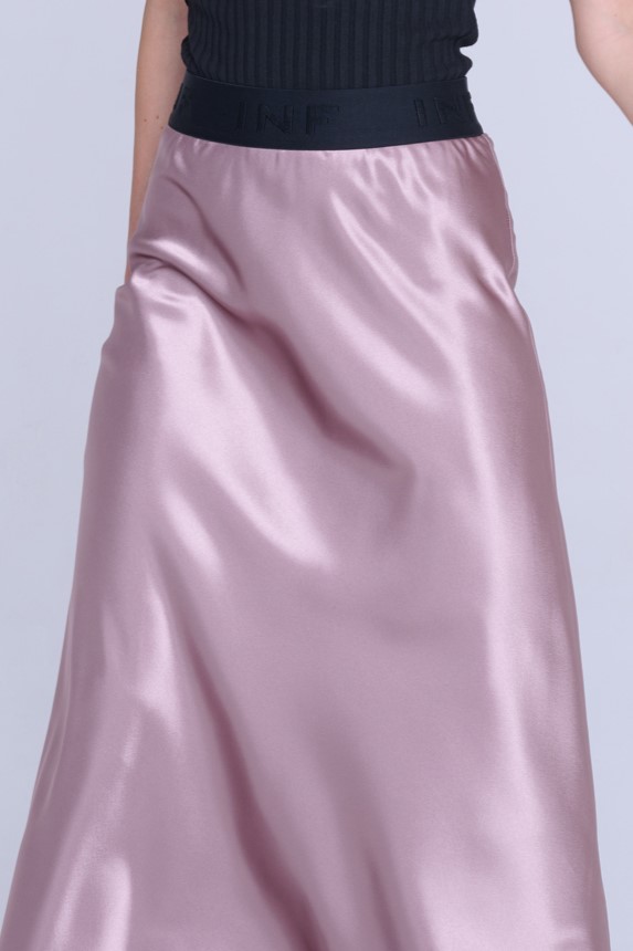 Saténová dlouhá sukně. V pase efektní guma INF.