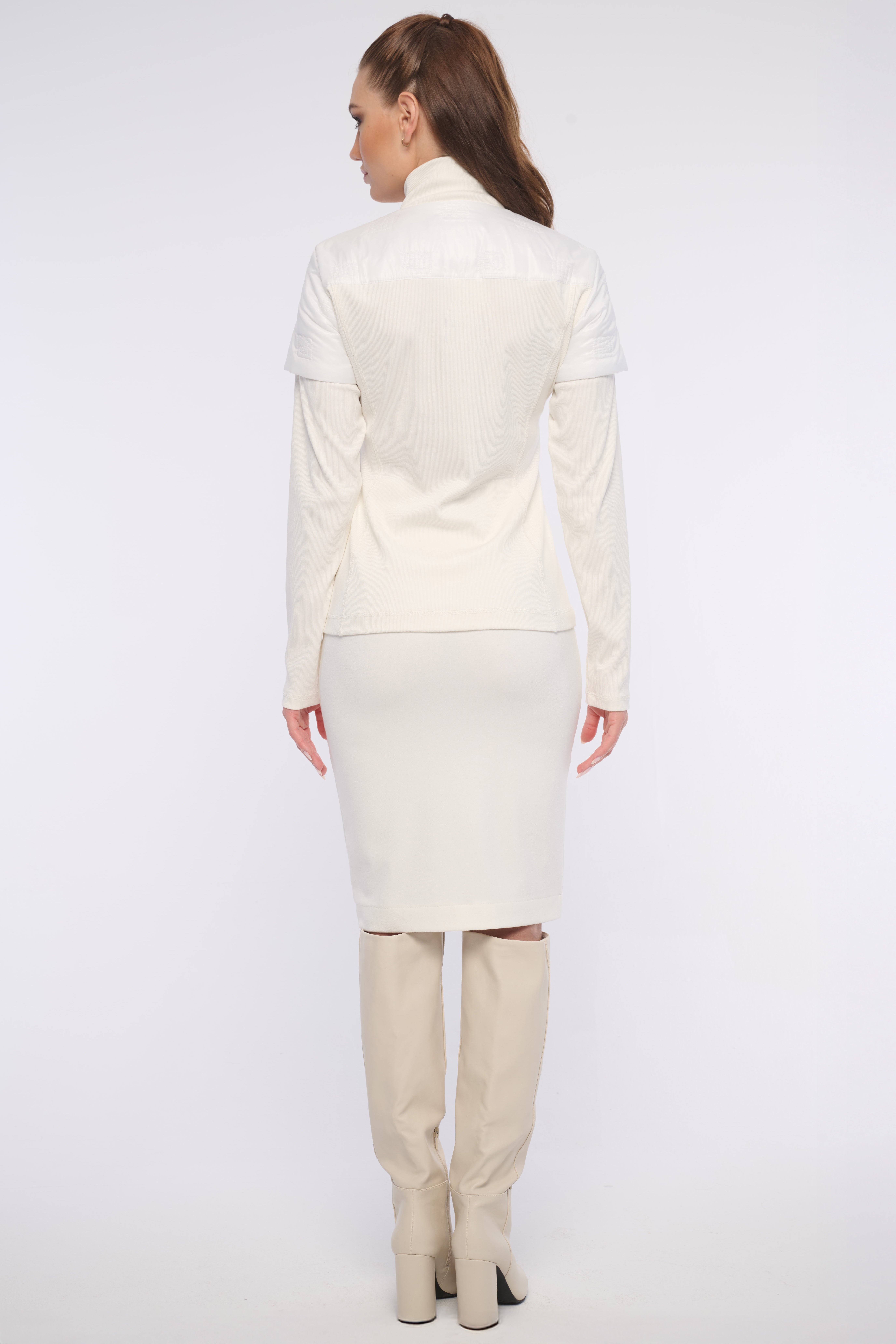 Sukně s vysokým pasem z velmi příjemného materiálu, která krásně tvaruje postavu. Detail na boku tvoří logo z luxusních krystalů Swarovski. Dostupná ve třech variantách.