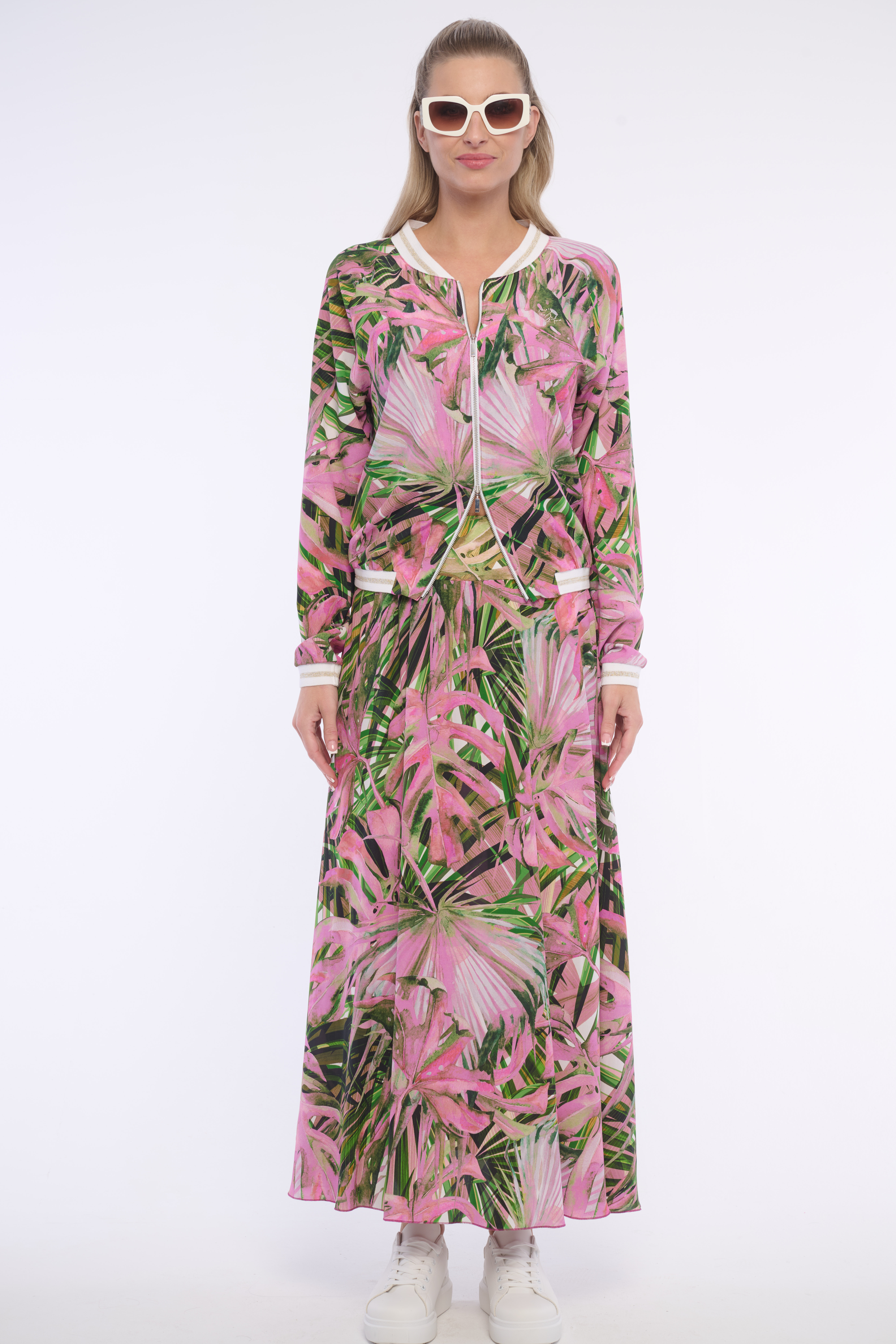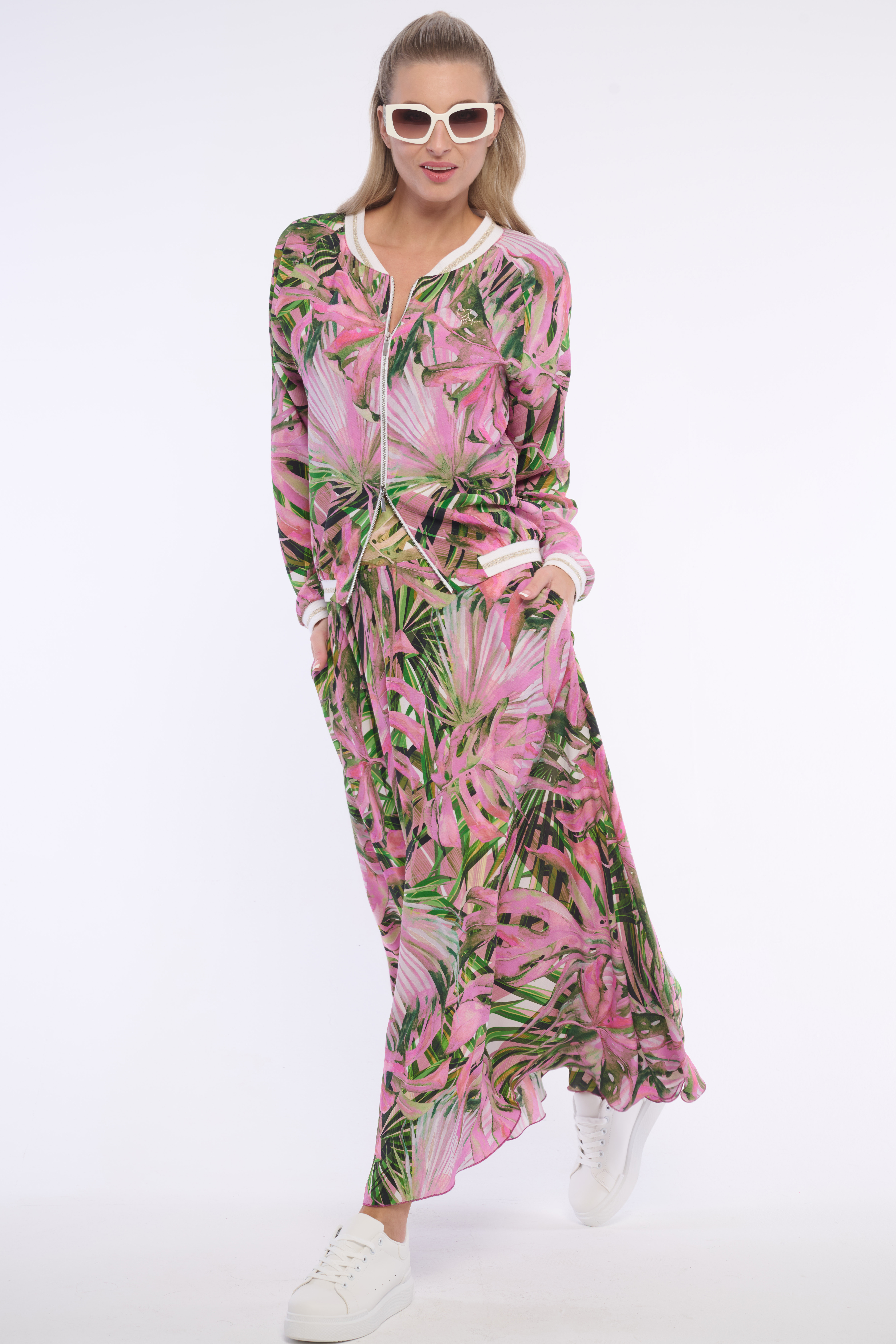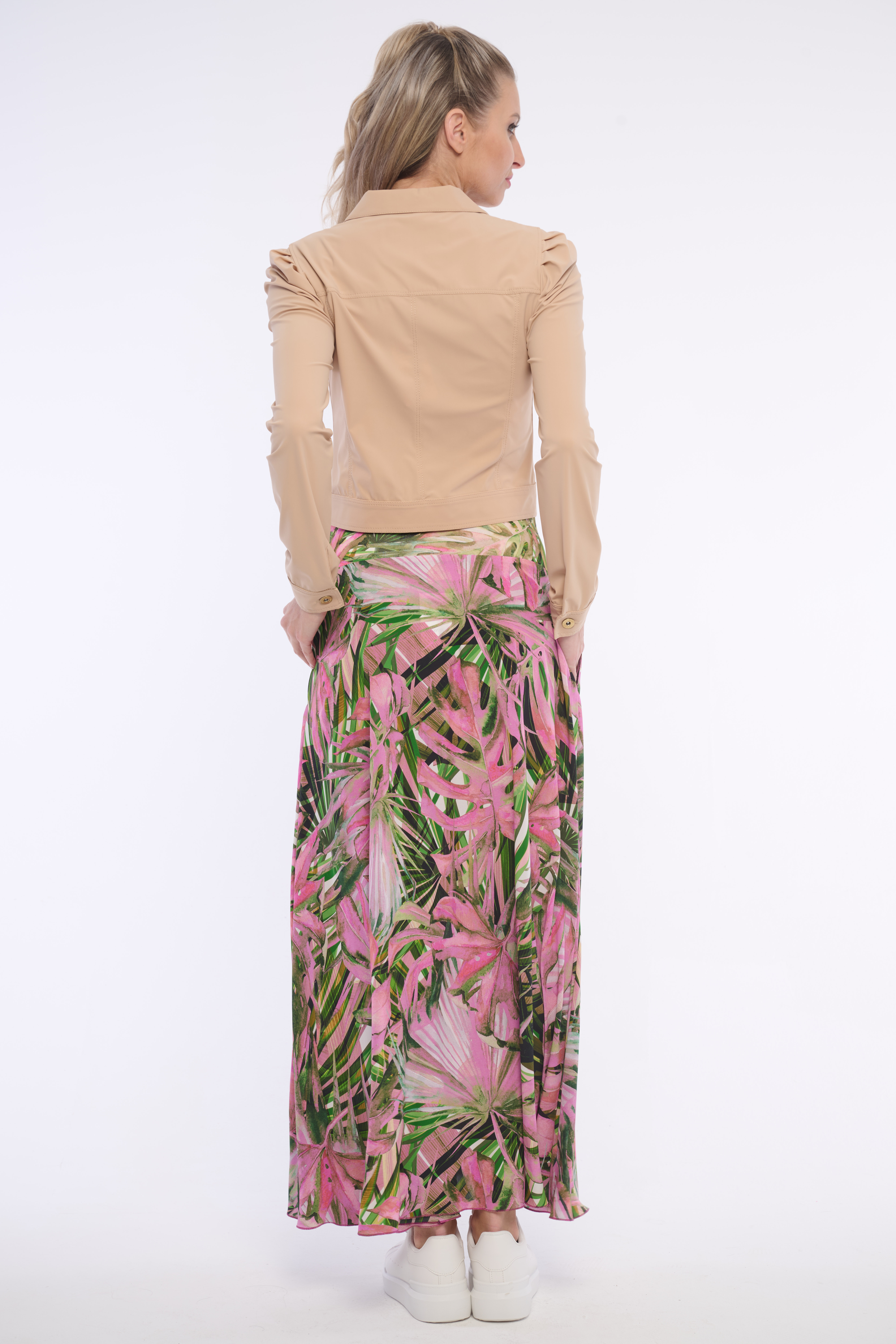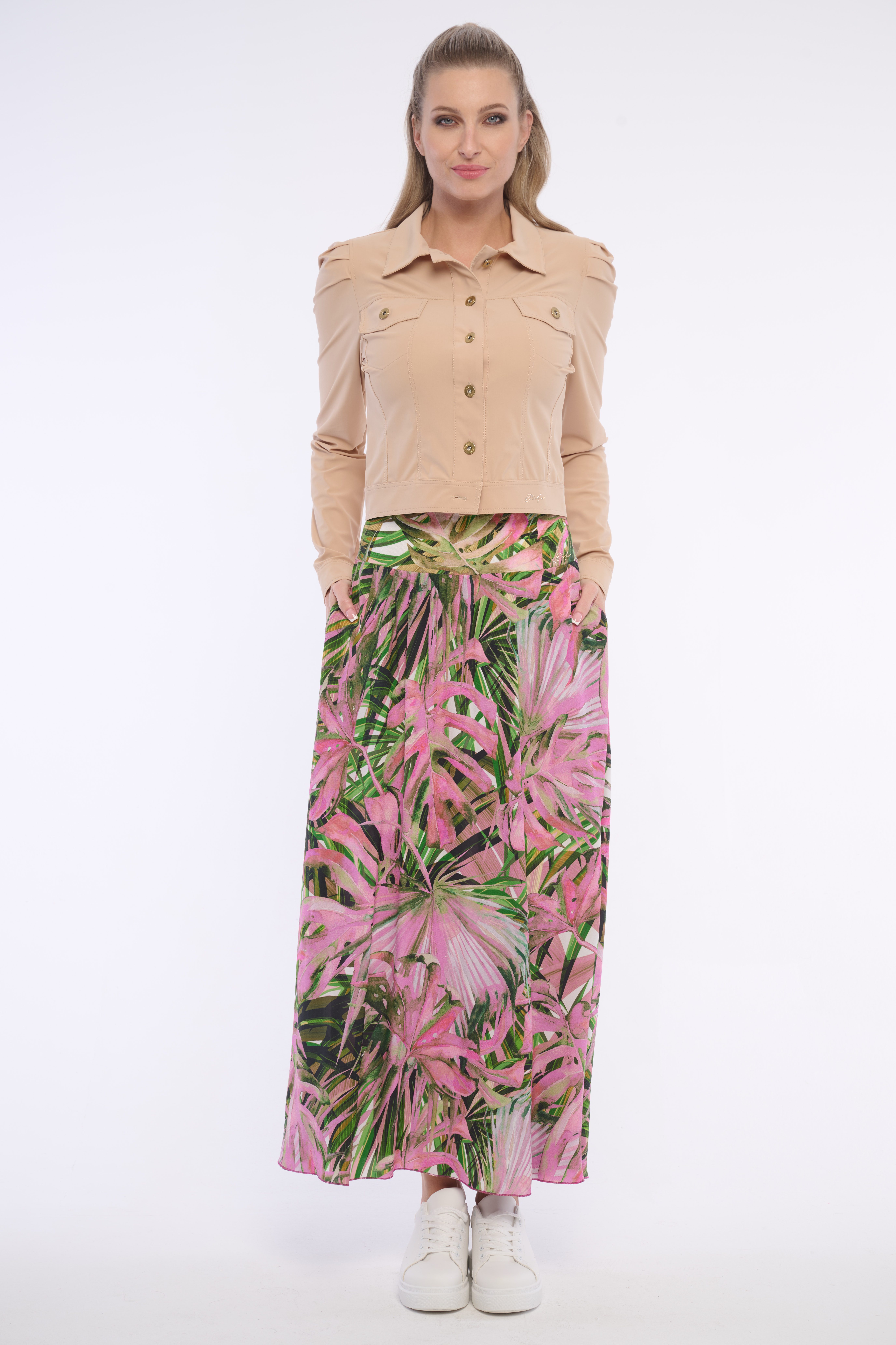 Volná sukně z lehkého materiálu se zajímavým letním vzorem, která zaujme každého. Pevnější látka v pase s logem z luxusních krystalů Swarowski krásně zvýrazní pas. Dostupná ve třech barevných variantách.