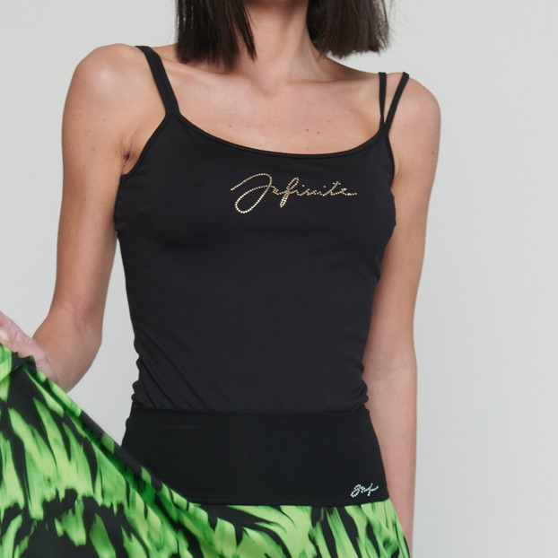 Tílko na úzké ramínka. Na předním dílu zlaté crystalové logo INFINITE.
