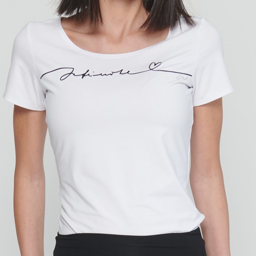 Basic tričko s tiskem na předním díle. Malé crystalové logo INF.