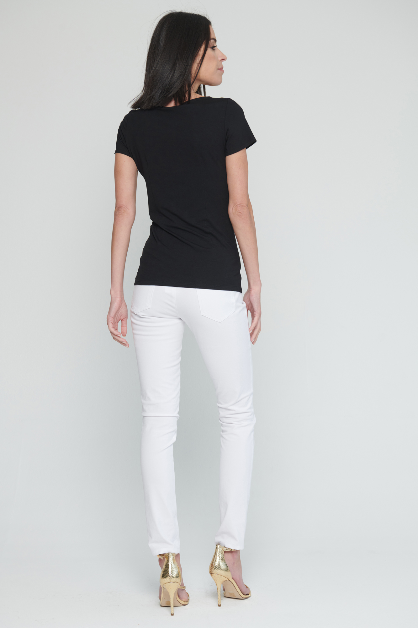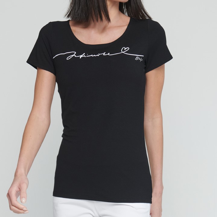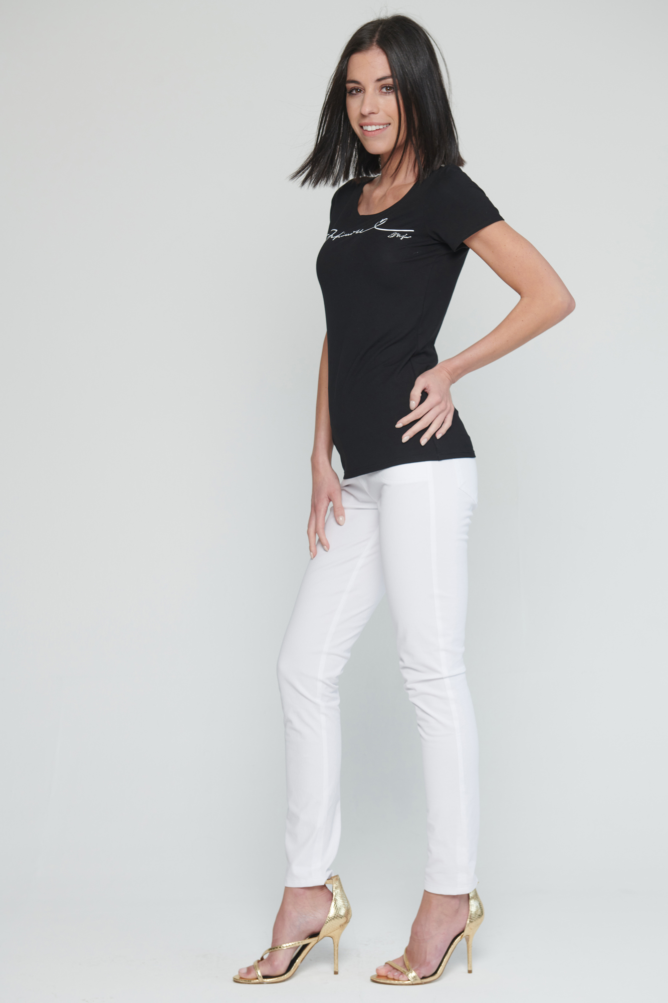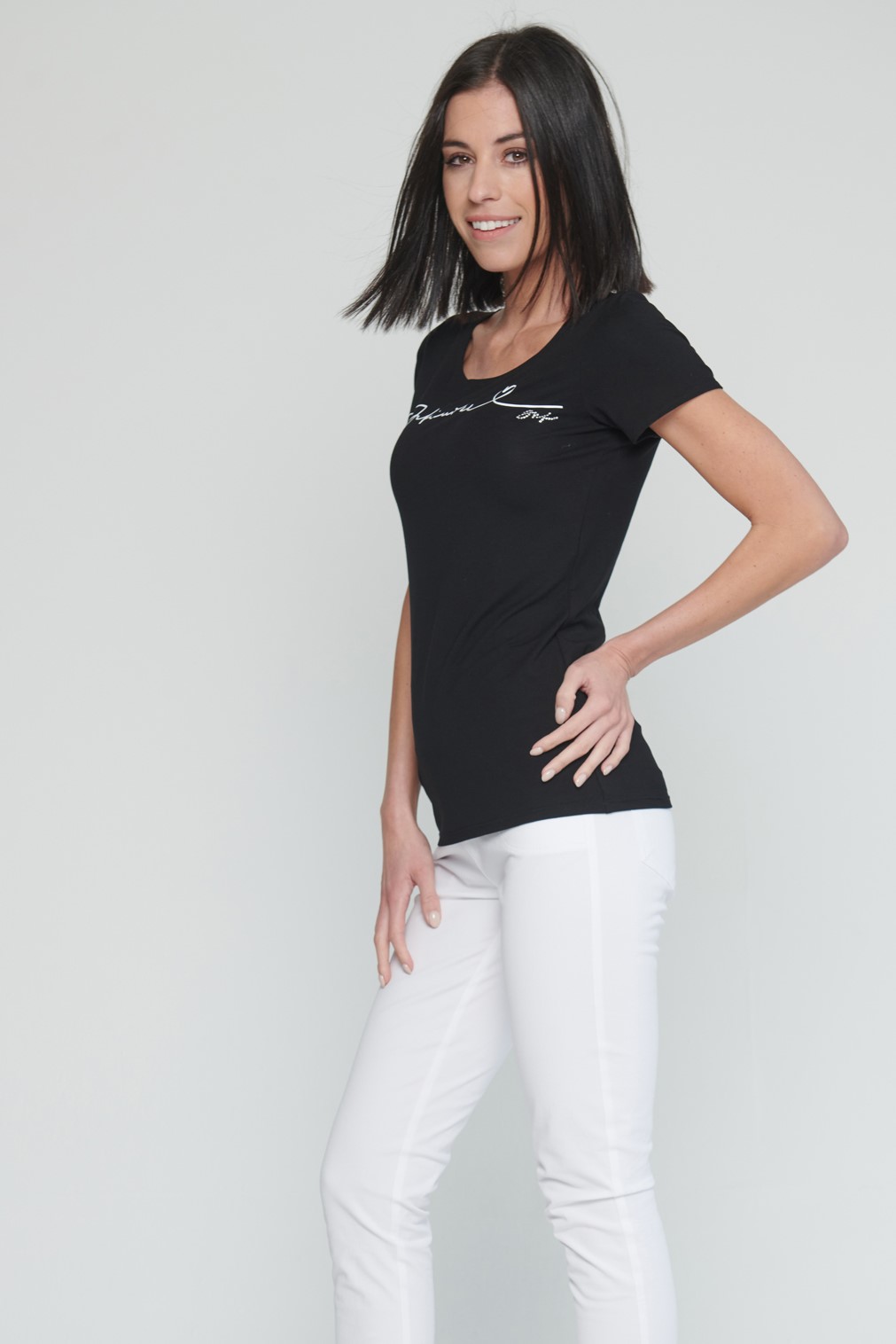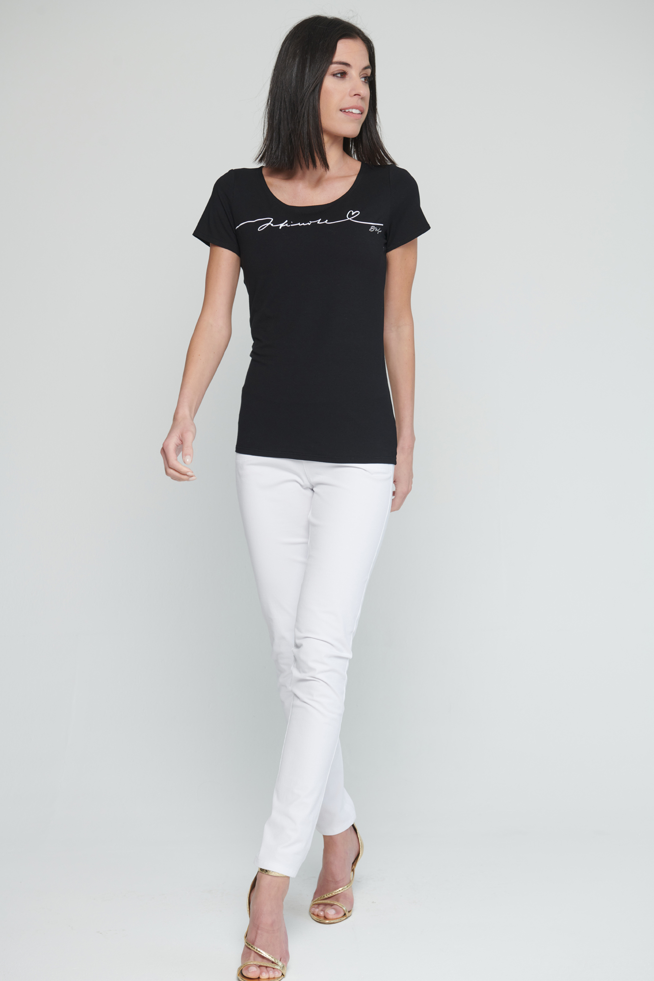 Basic tričko s tiskem na předním díle. Malé crystalové logo INF.