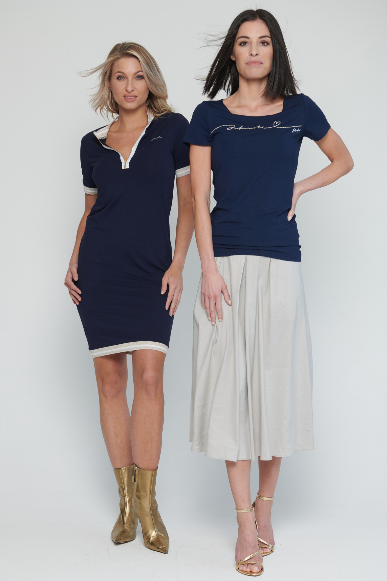 Basic tričko se zlatým tiskem na předním díle. Malé crystalové logo INF.