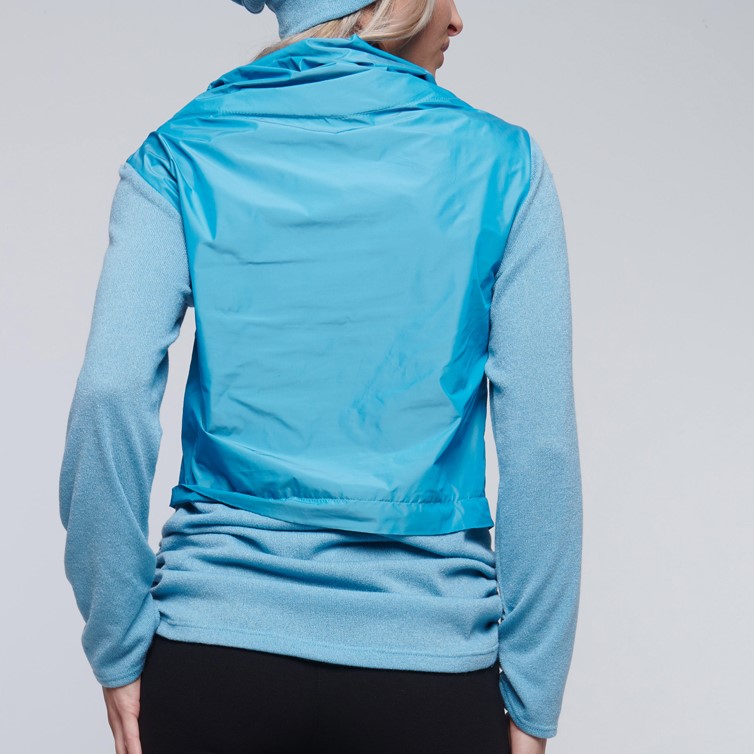 Kombinace pletáže a šusťáku. Na předním díle crystaly INF