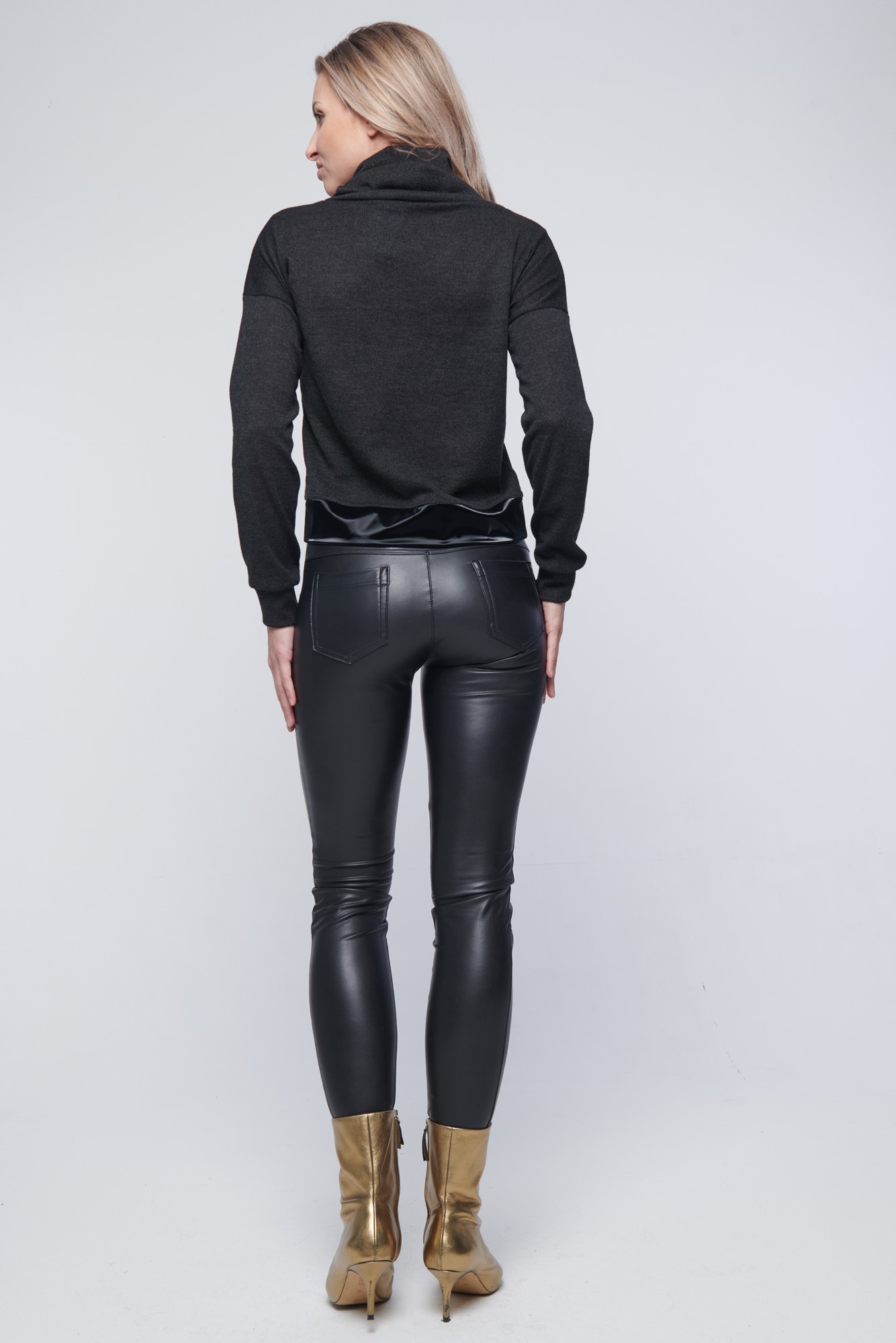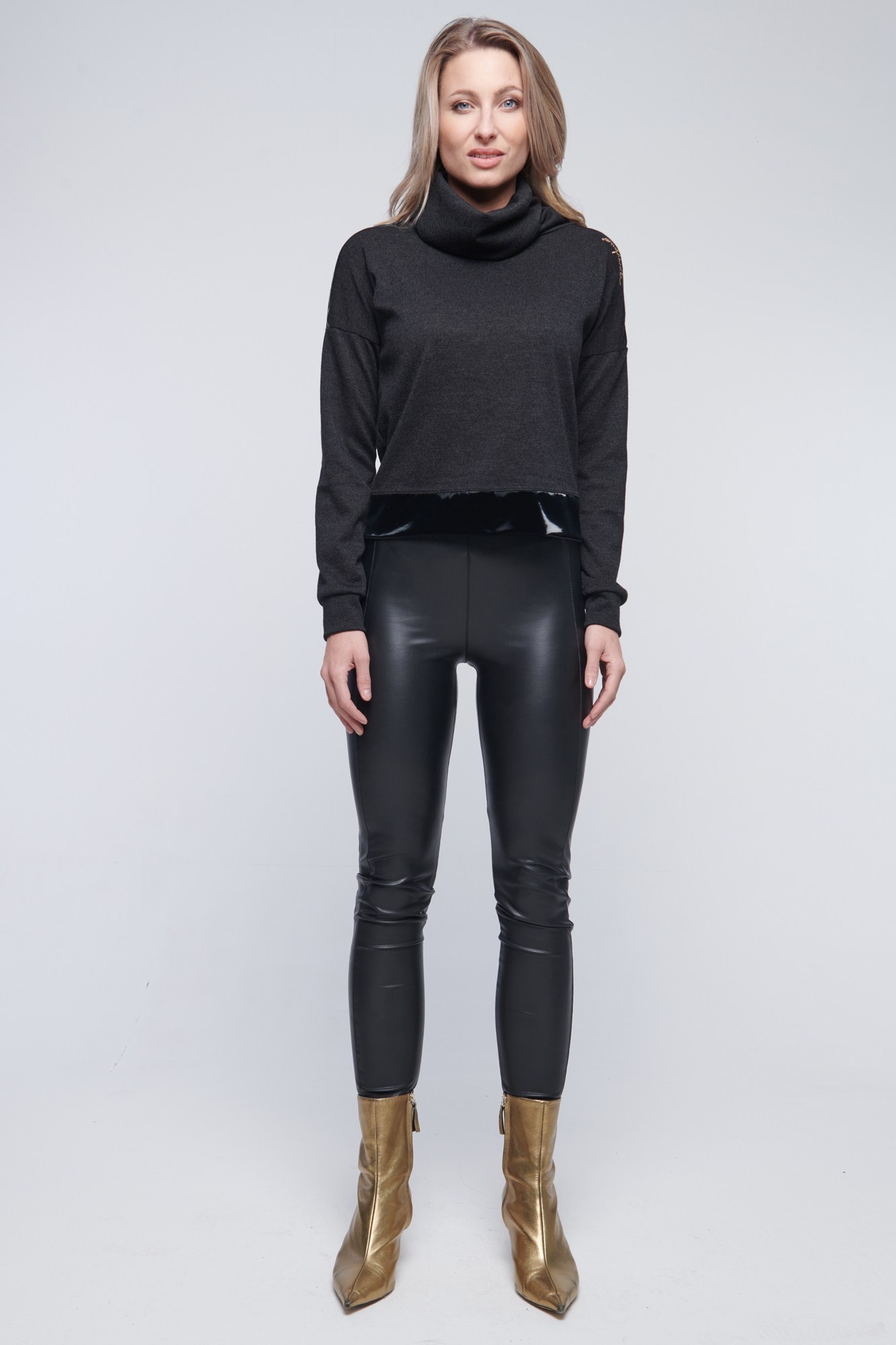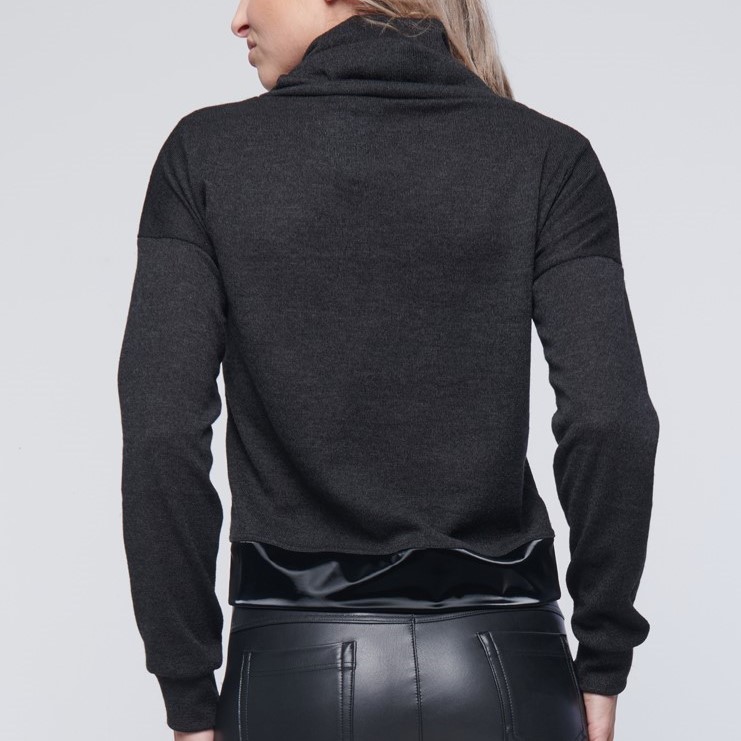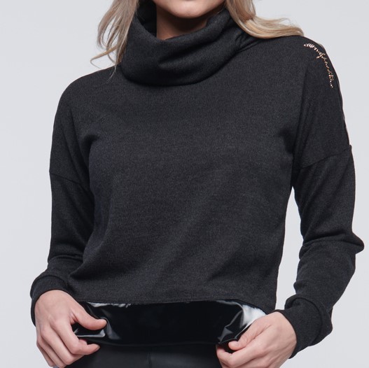 Svetřík - rolák, kombinován s lesklým efektním materiálem. Na rameni zlaté krystalové logo Infinite.