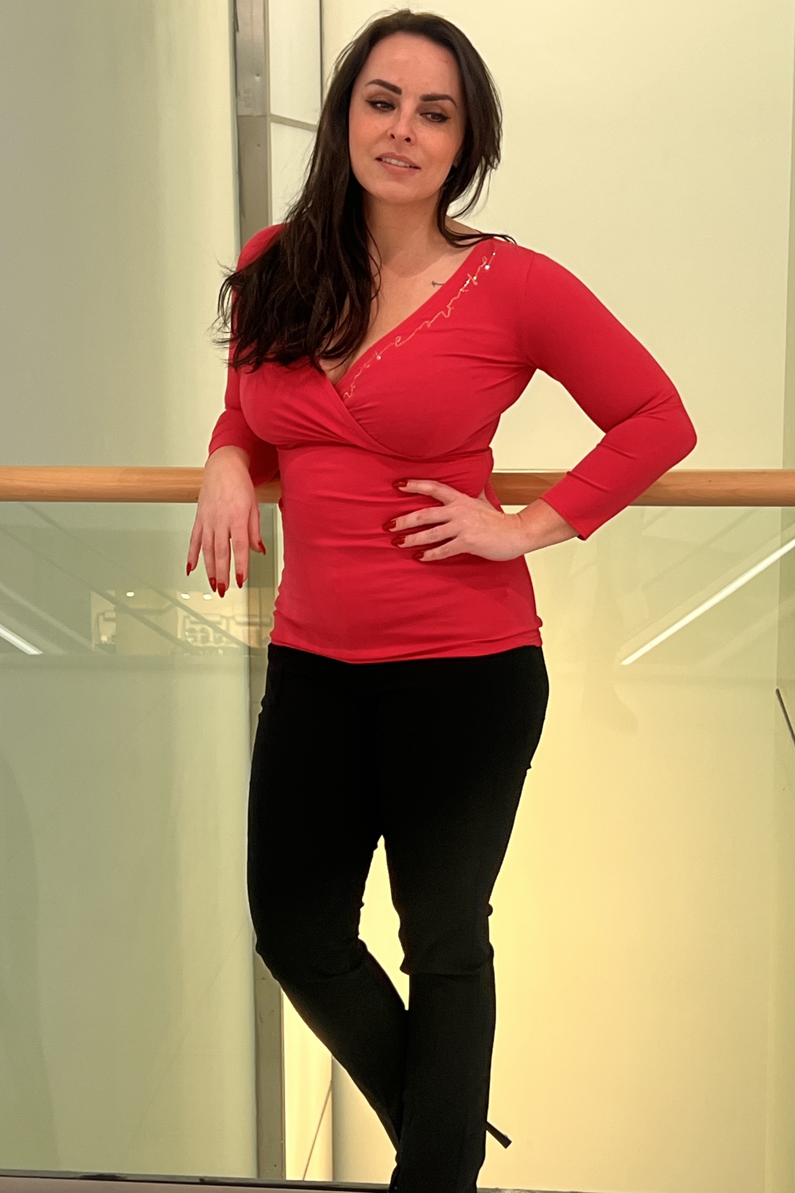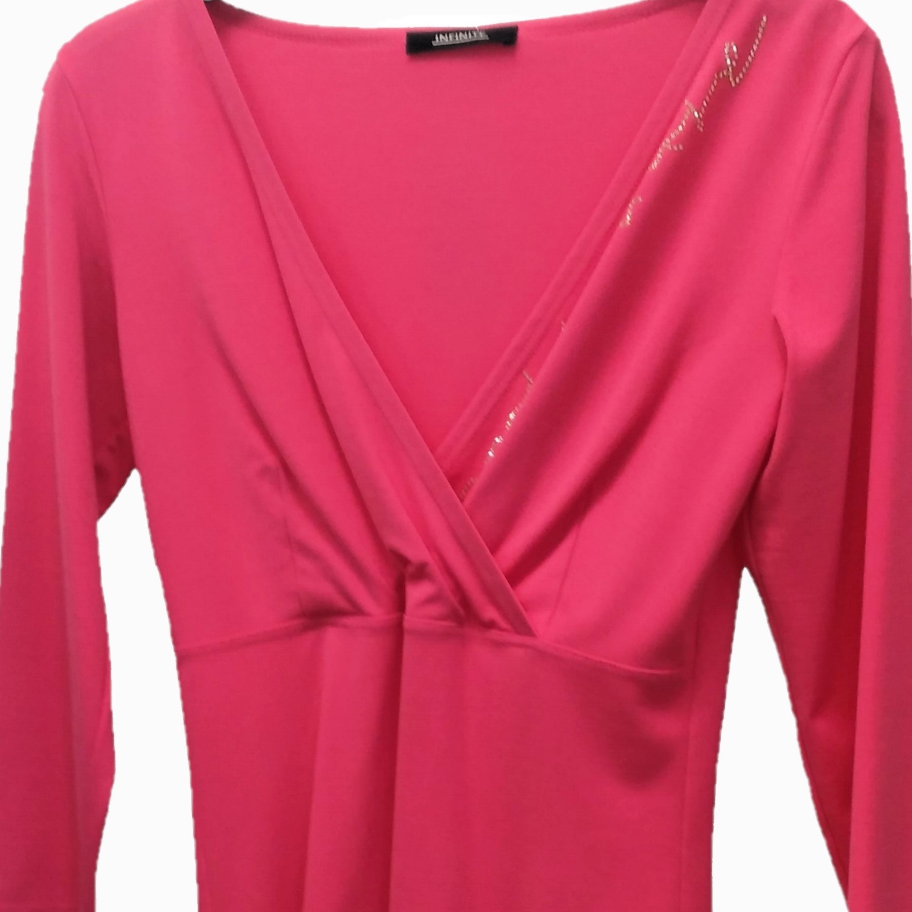Tričko ženského střihu. Ve výstřihu crystal logo INFINITE.