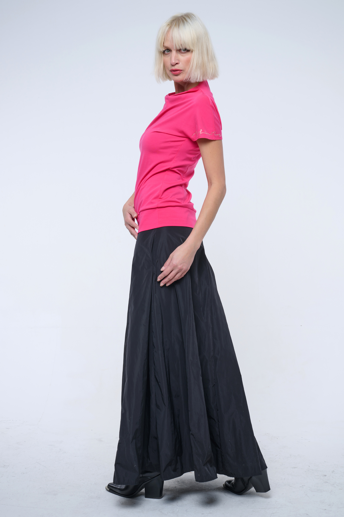 Úpletová tunika stažená do patentu v pase. Na rukávu krystalové logo Infinite.