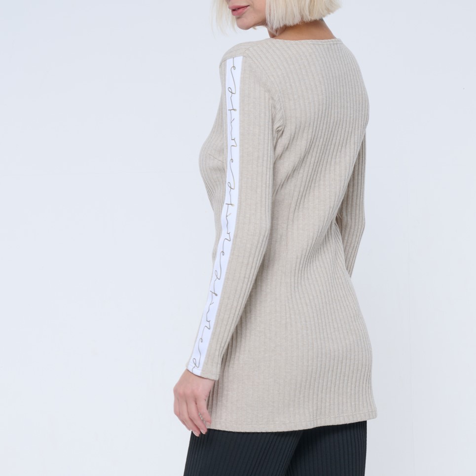 Tunika z žebrového úpletu. Okrasná bílozlatá stuha Infinite.