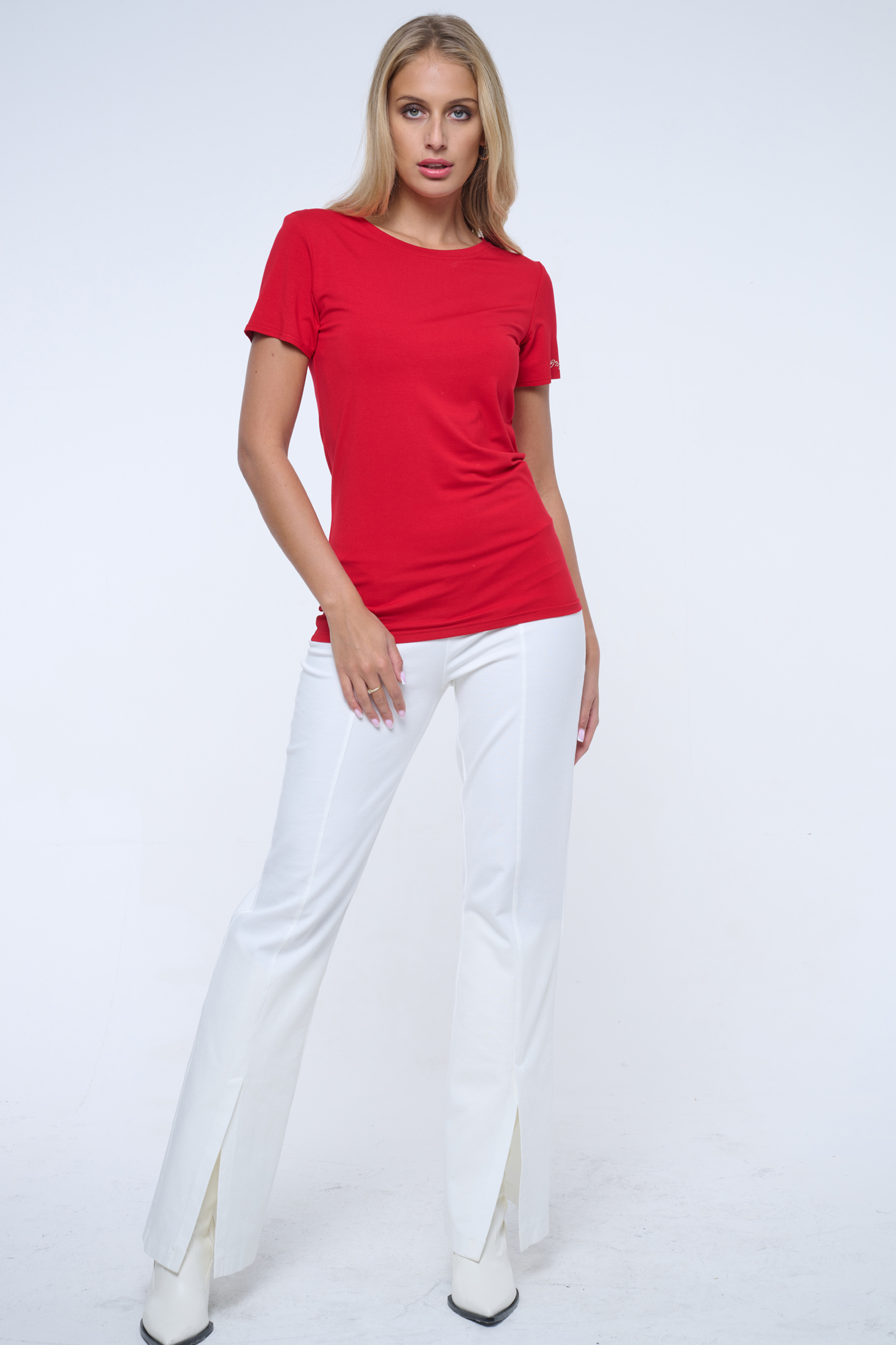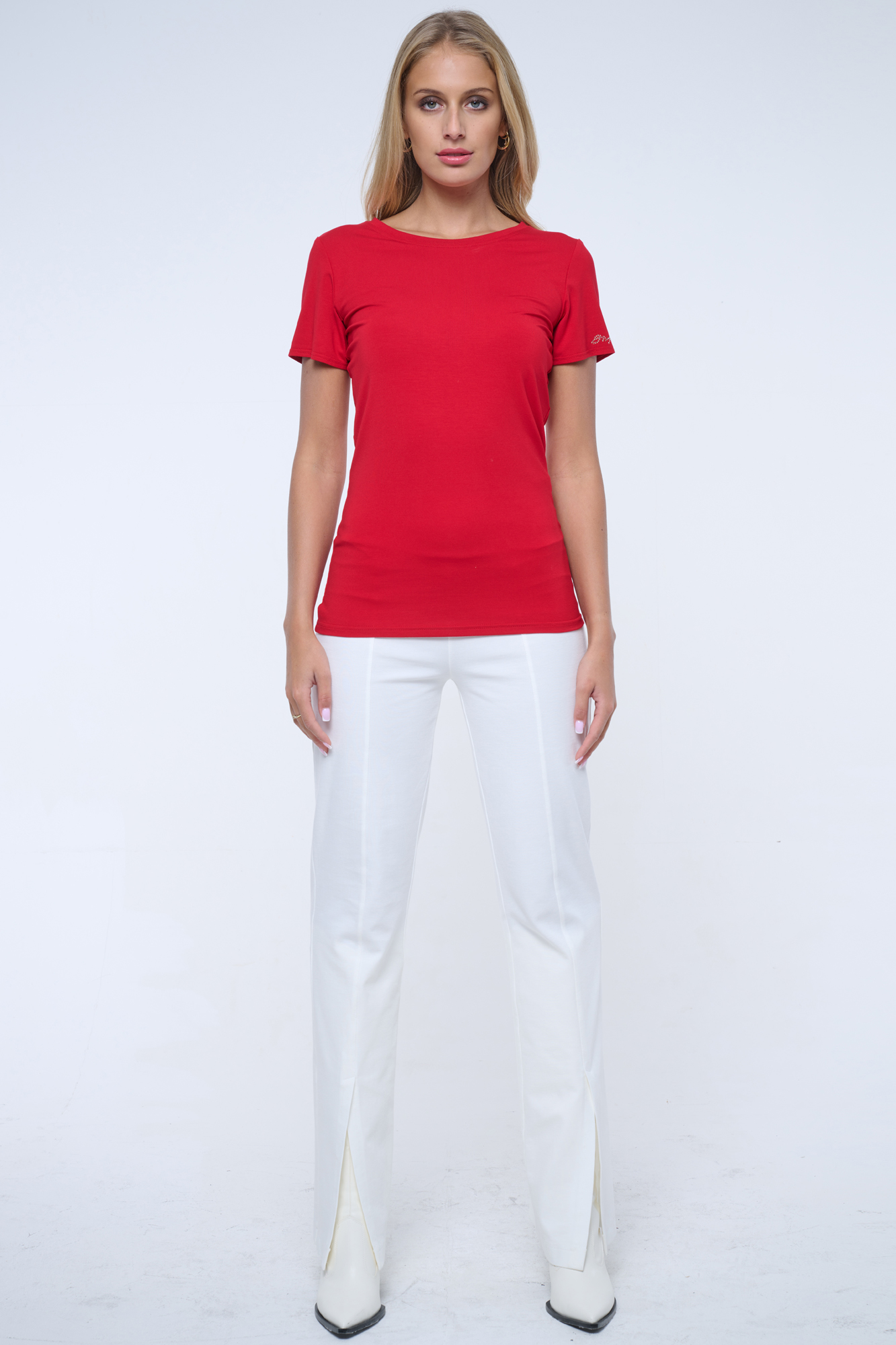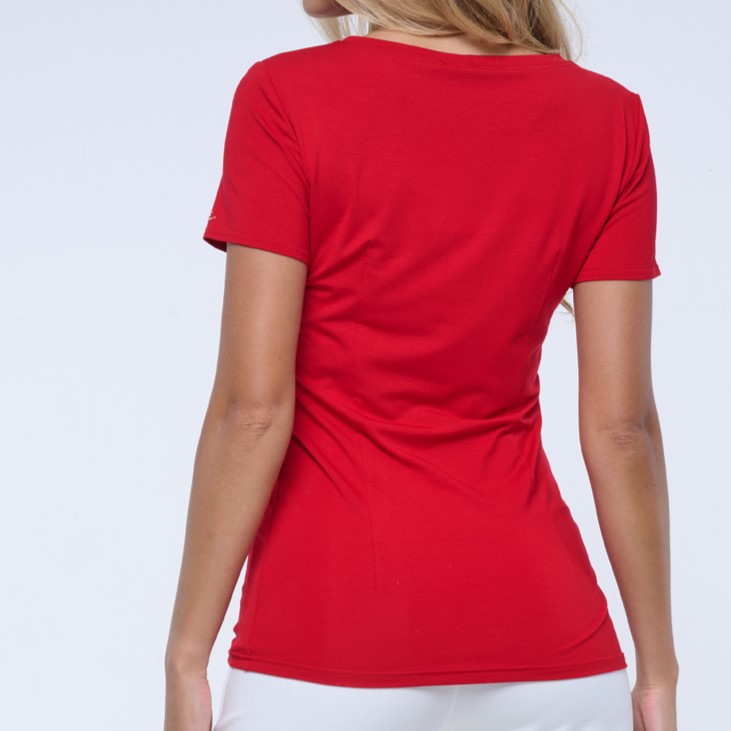 Basic tričko s krátkým rukávem. Na rameni ozdobné zlaté krystalové logo INF.