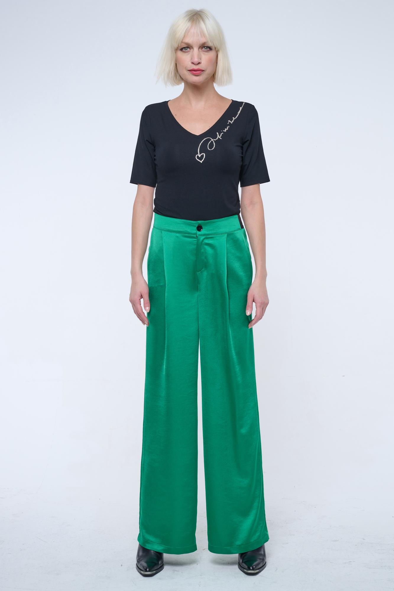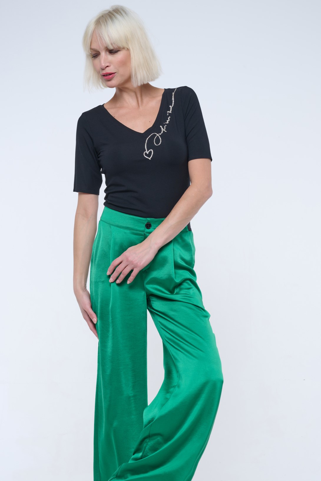 Basic triko s výstřihem do véčka. Zlatý glitrový tisk Infinite ve výstřihu.