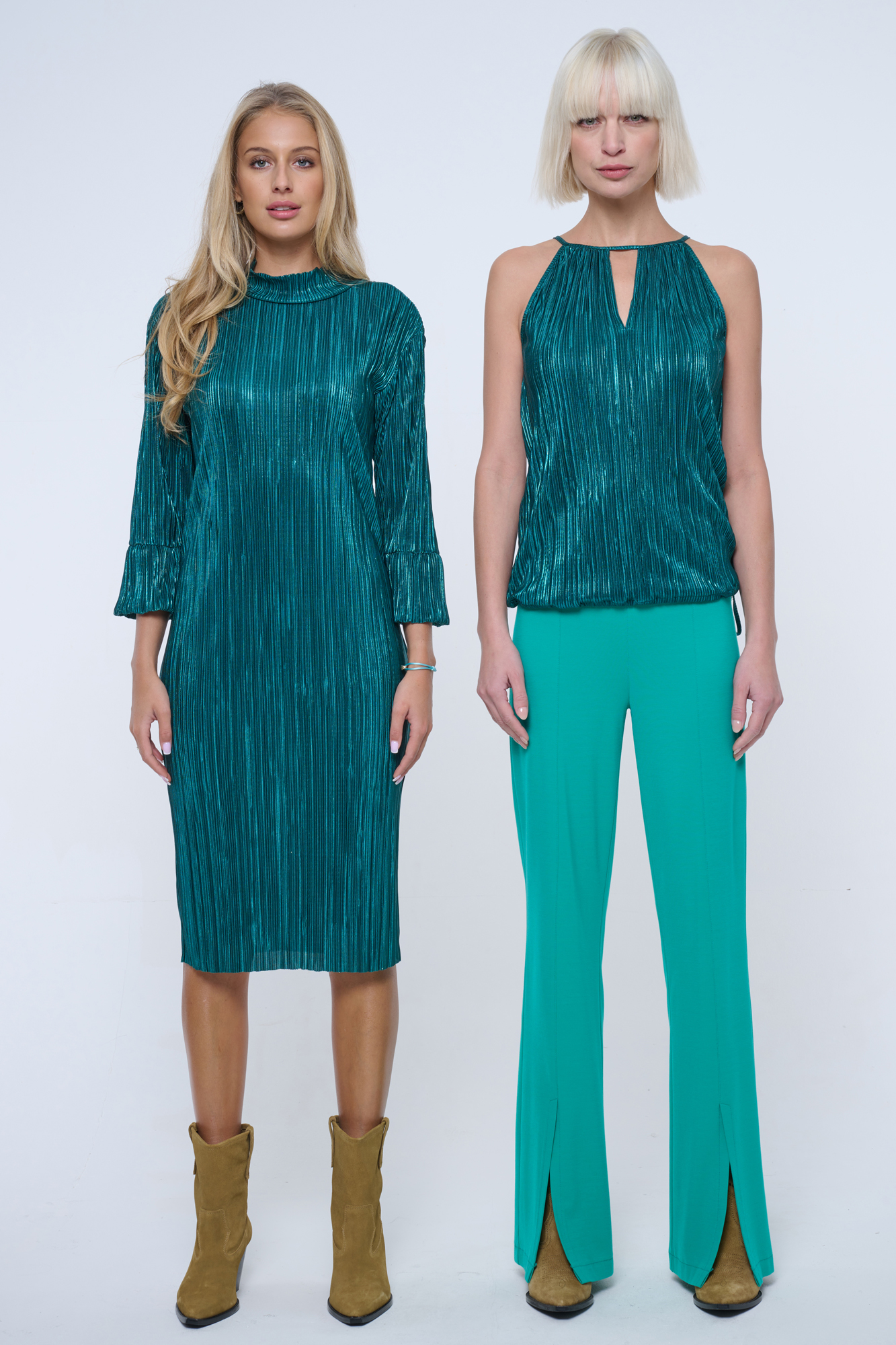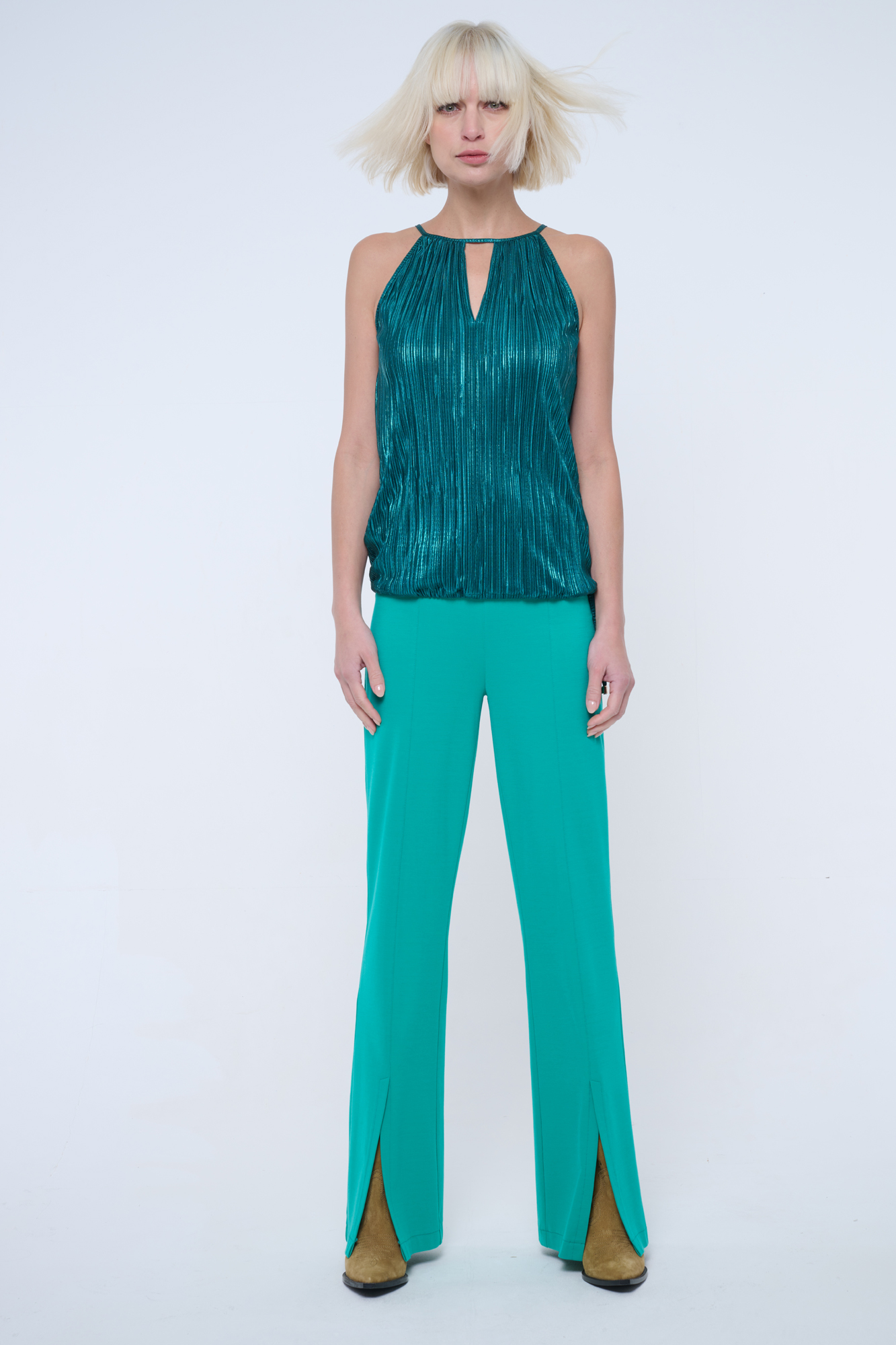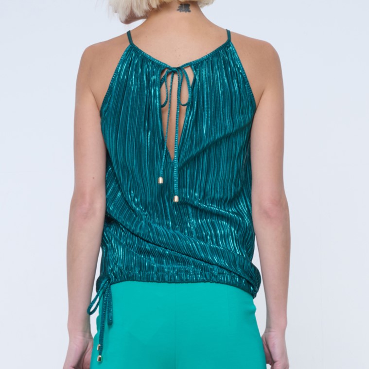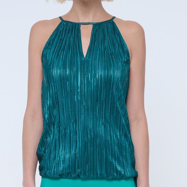 Společenský top z lesklého mírně plisovaného materiálu.