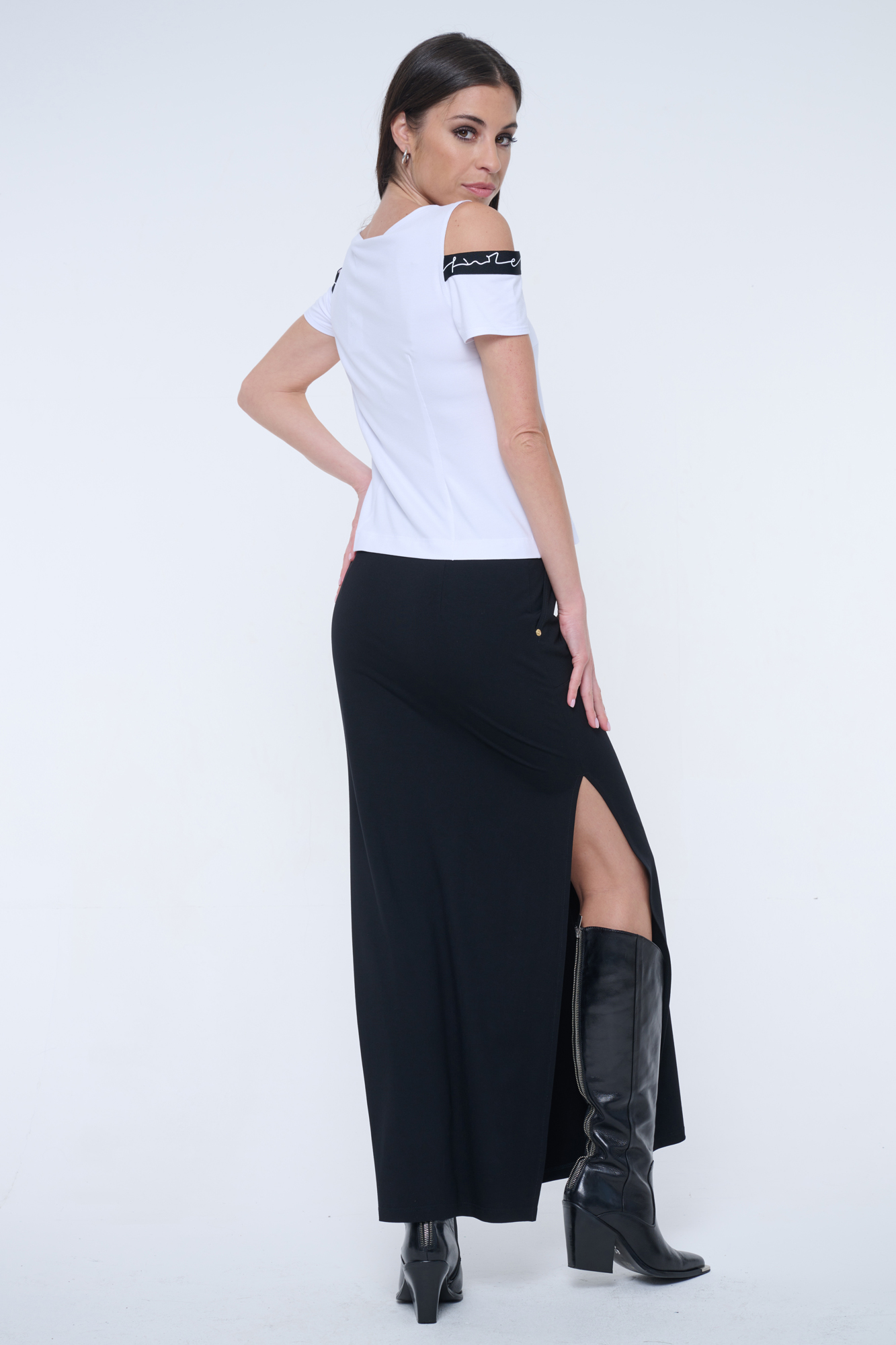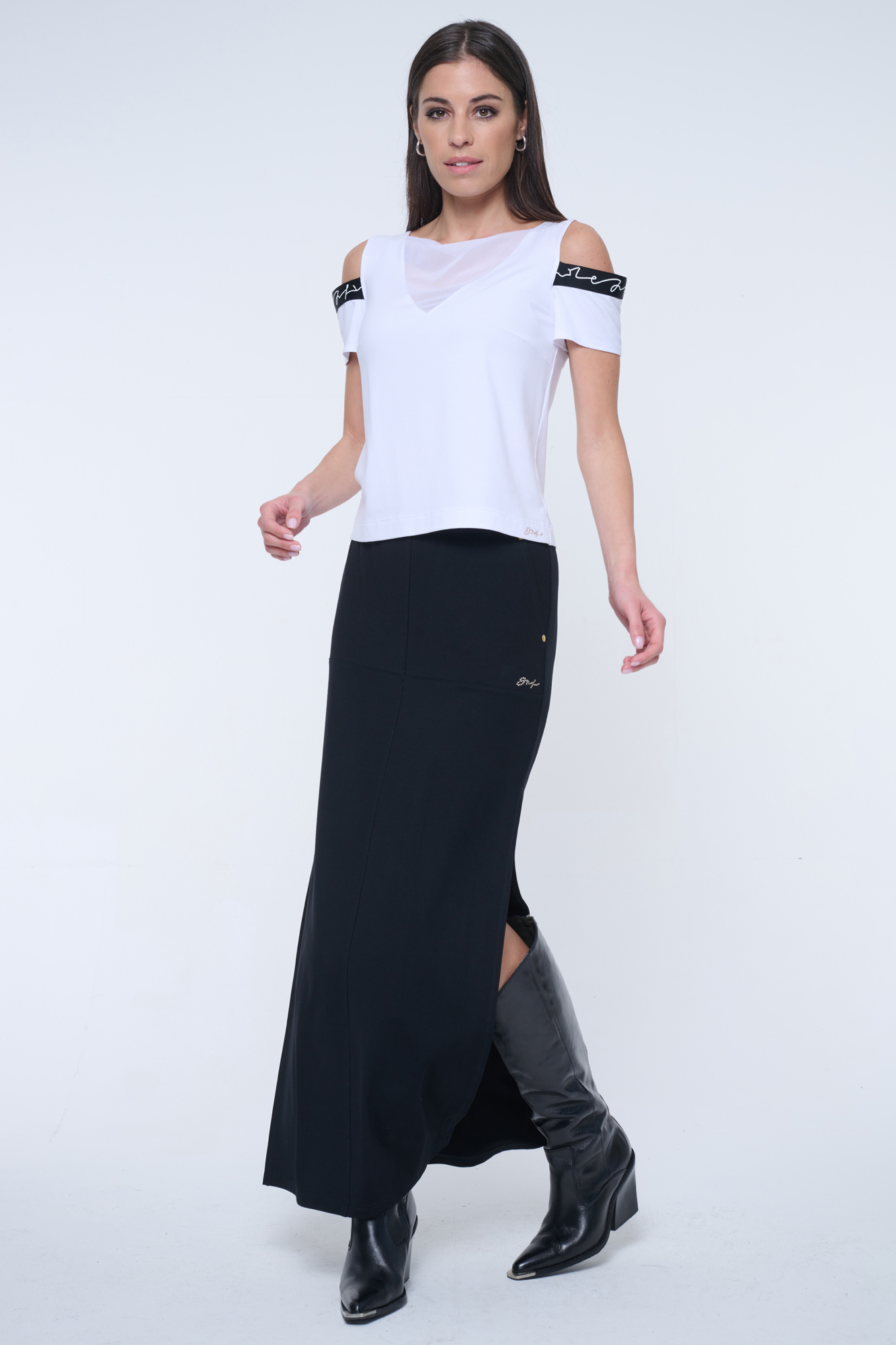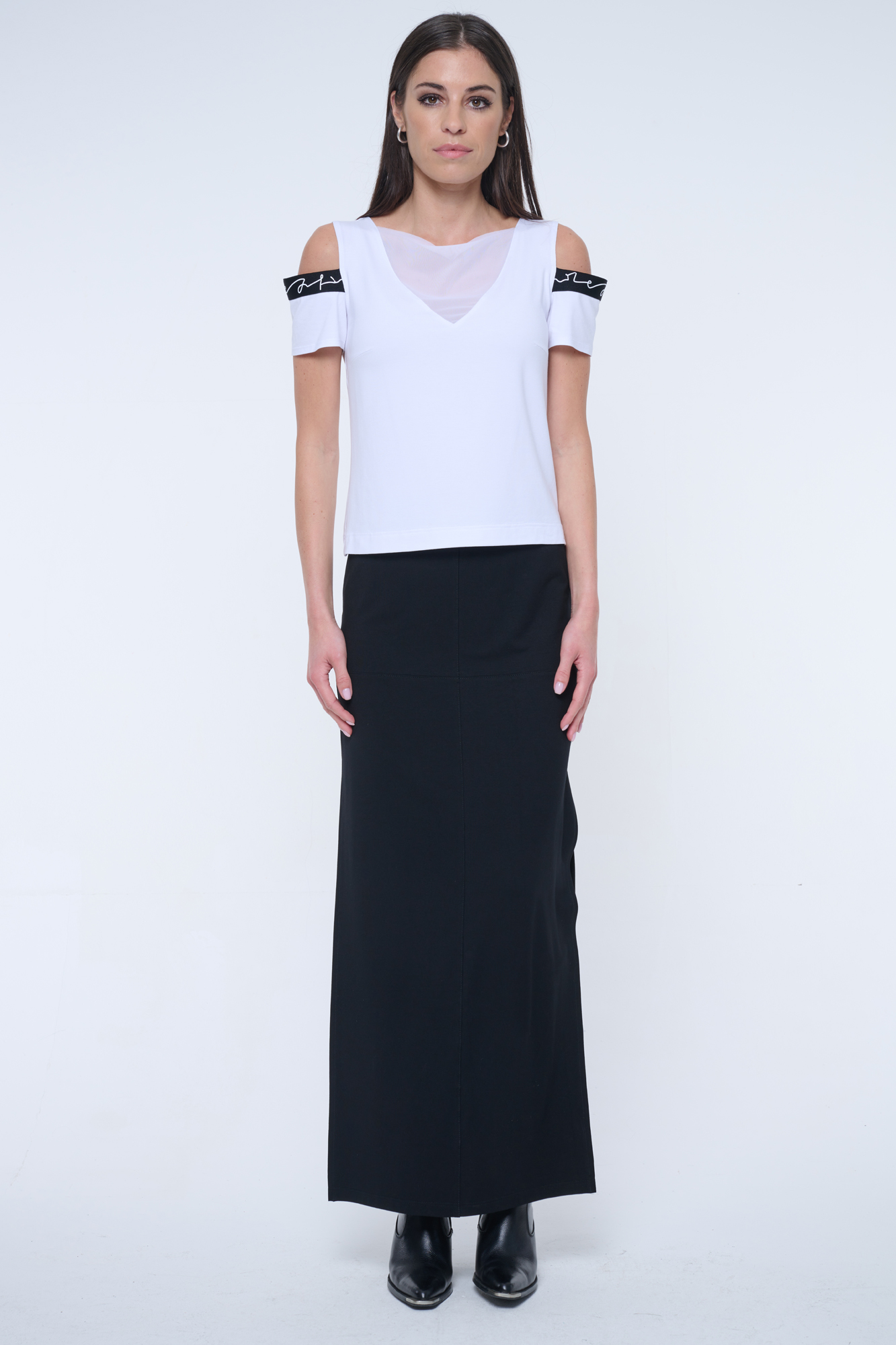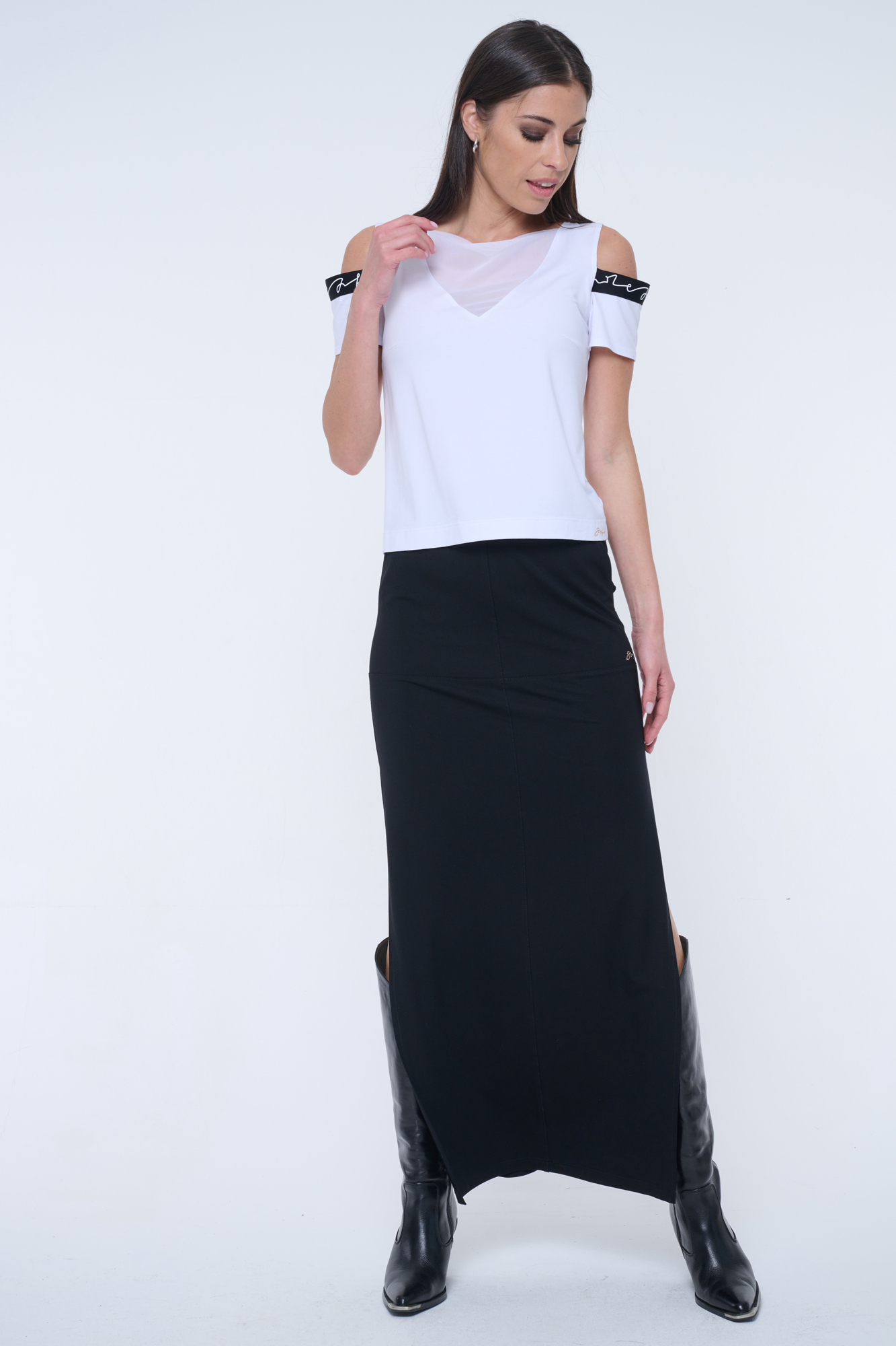 Rovný kratší top s efektními lampasy INF.