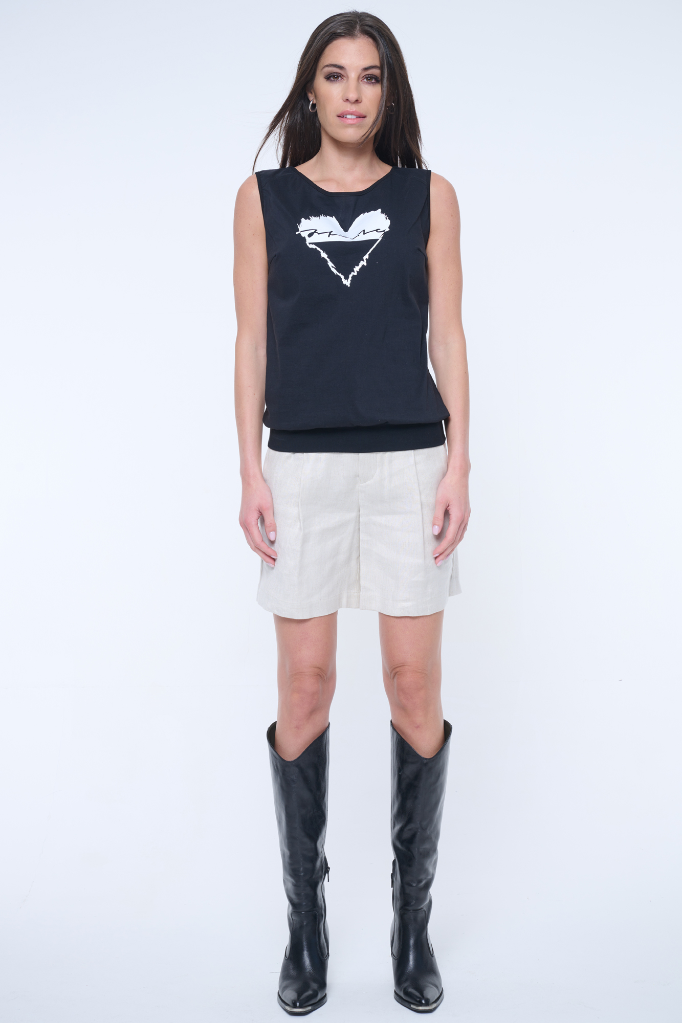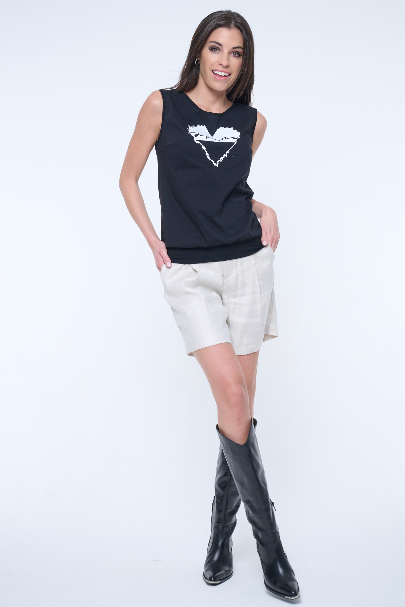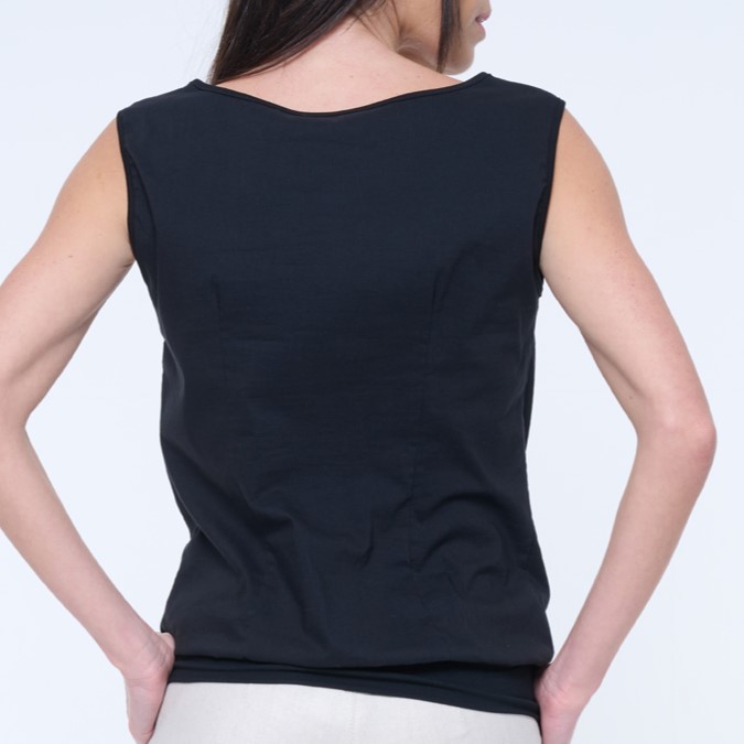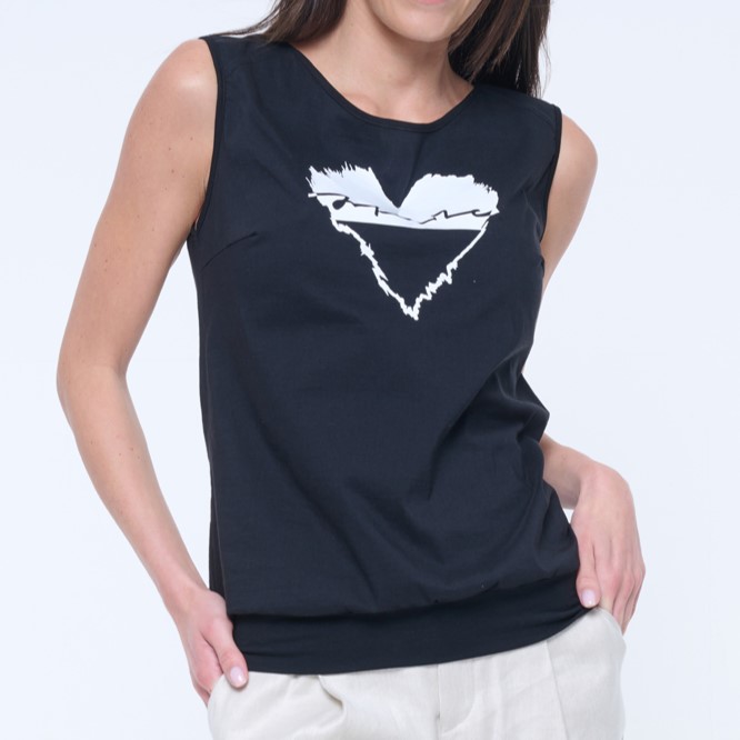 Tunika bez rukávu s podkasem. V pase patent, na předním díle tisk.