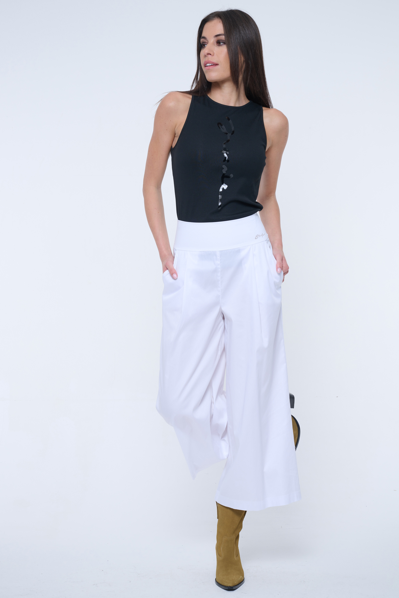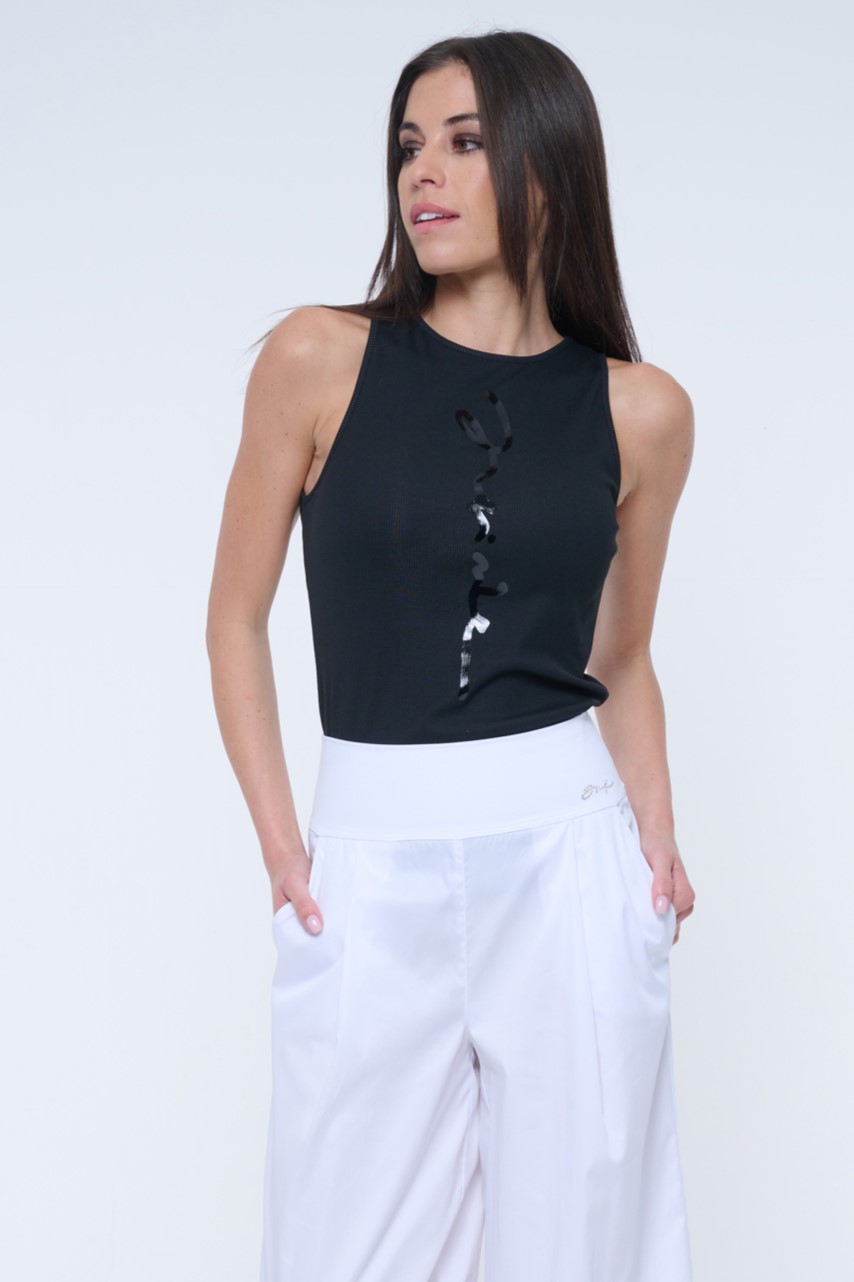 Žebrovaný top s "americkými" průramky. Na předním díle tisk INF.