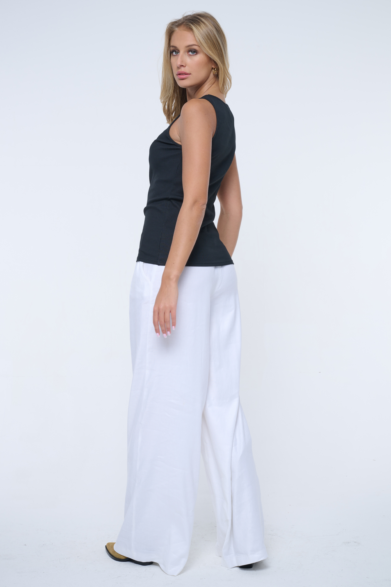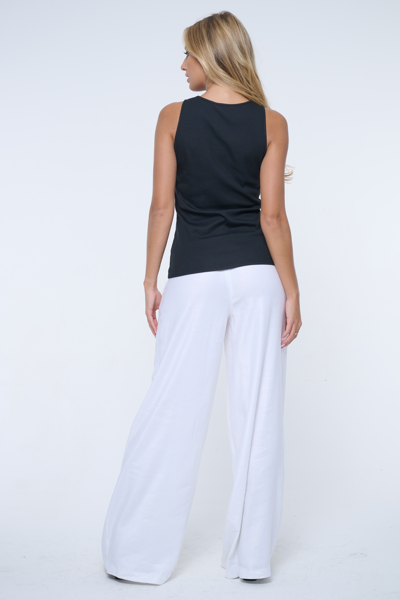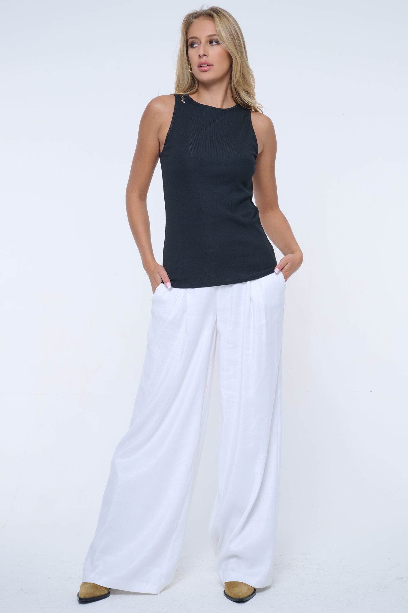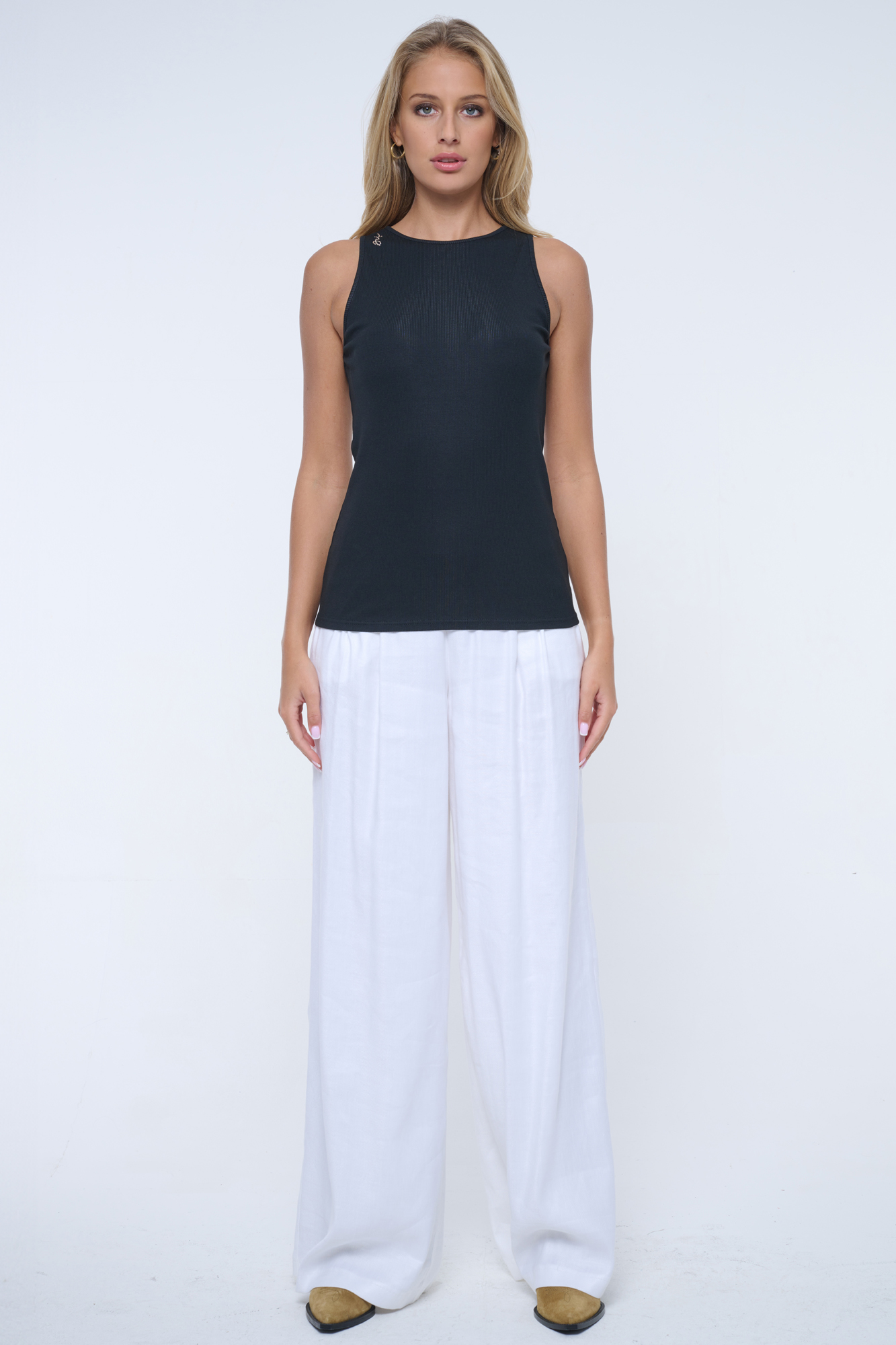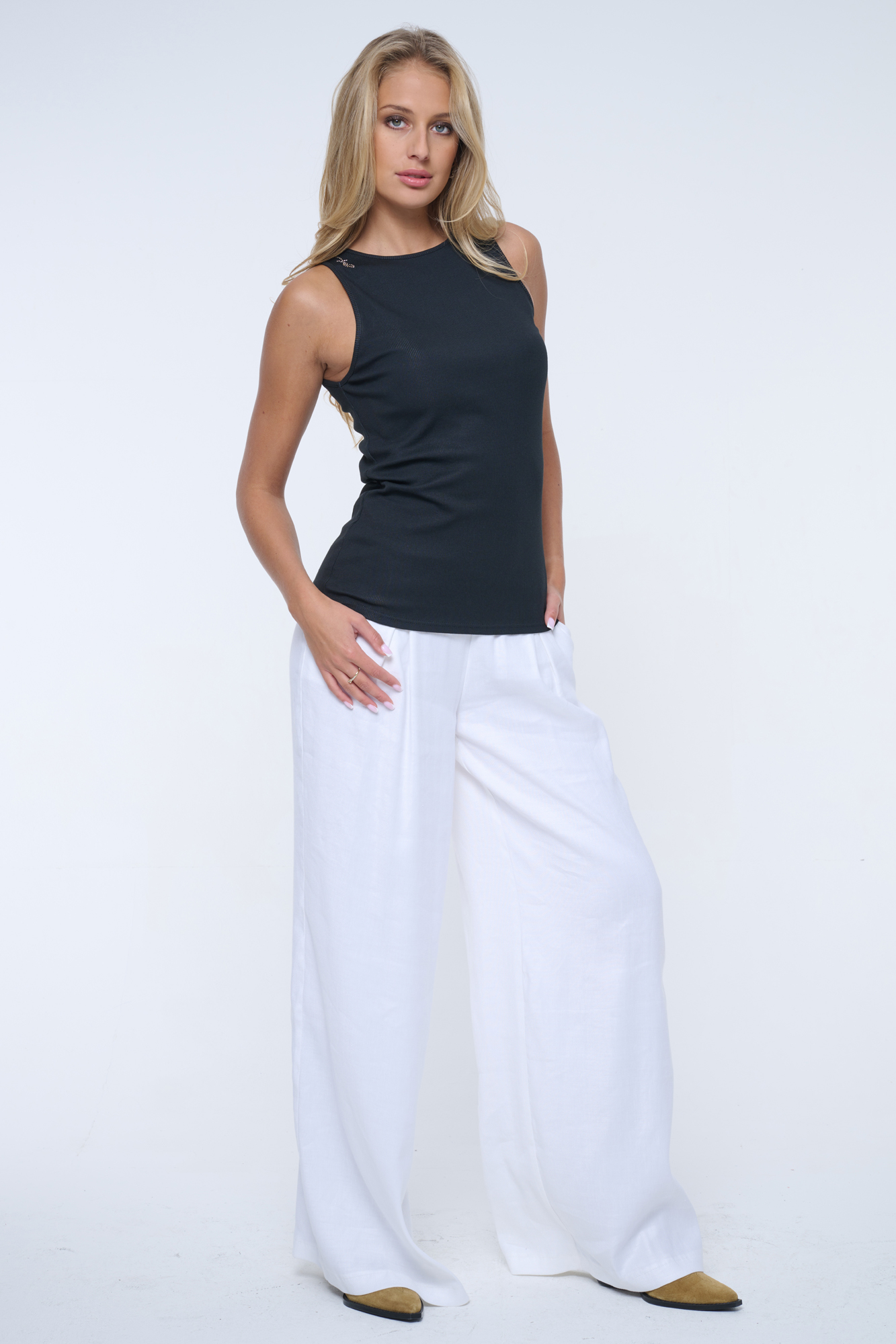 Žebrovaný top s "americkými" průramky. Malé zlaté krystalové logo INF.