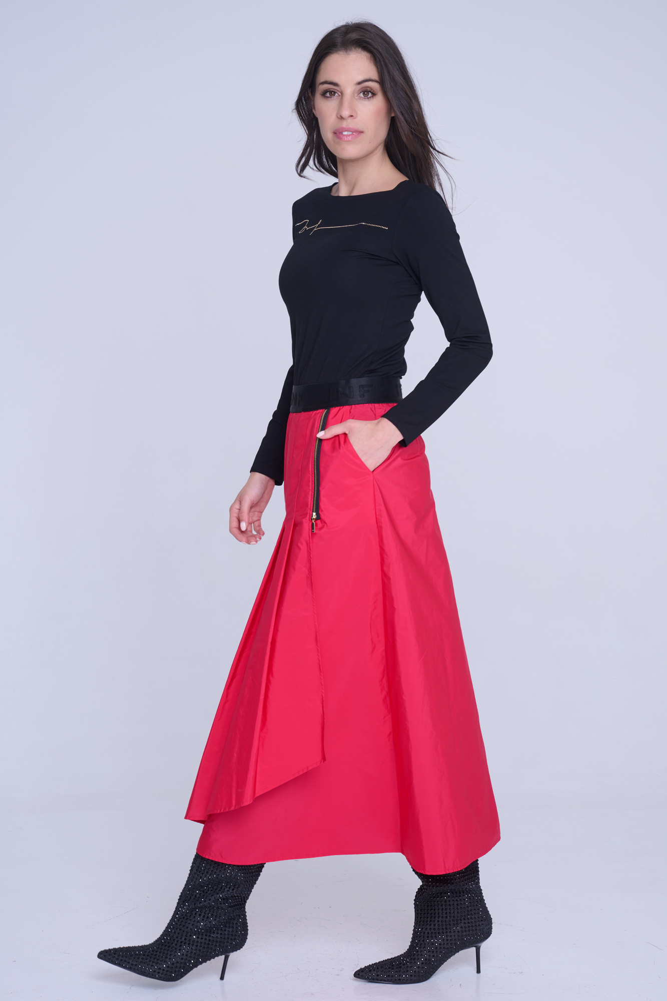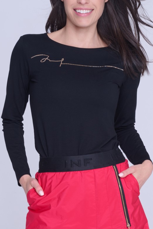 Basic tričko s dlouhým rukávem. Na předním díle motiv Infinite ze zlatých krystalů Preciosa.