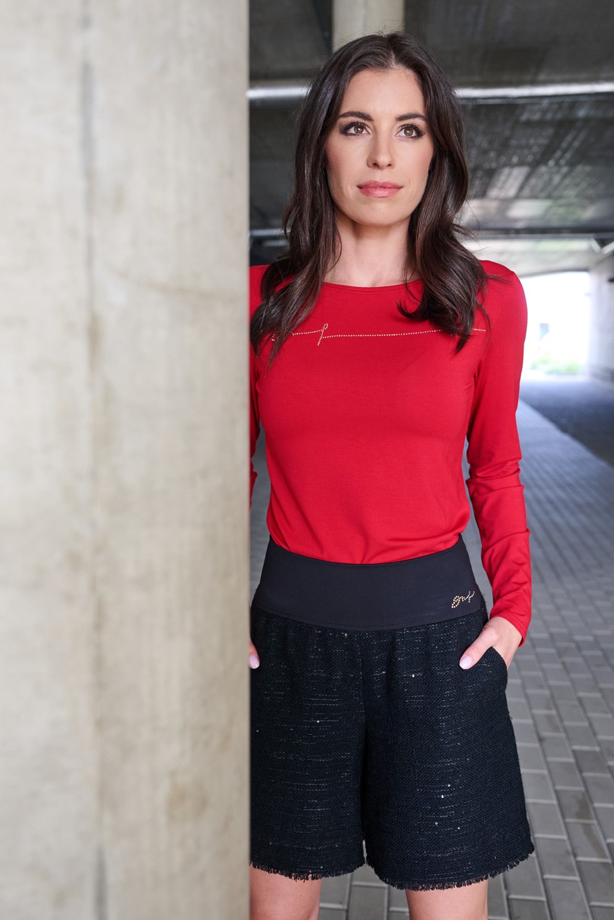 Basic tričko s dlouhým rukávem. Na předním díle motiv Infinite ze stříbrných krystalů Preciosa.