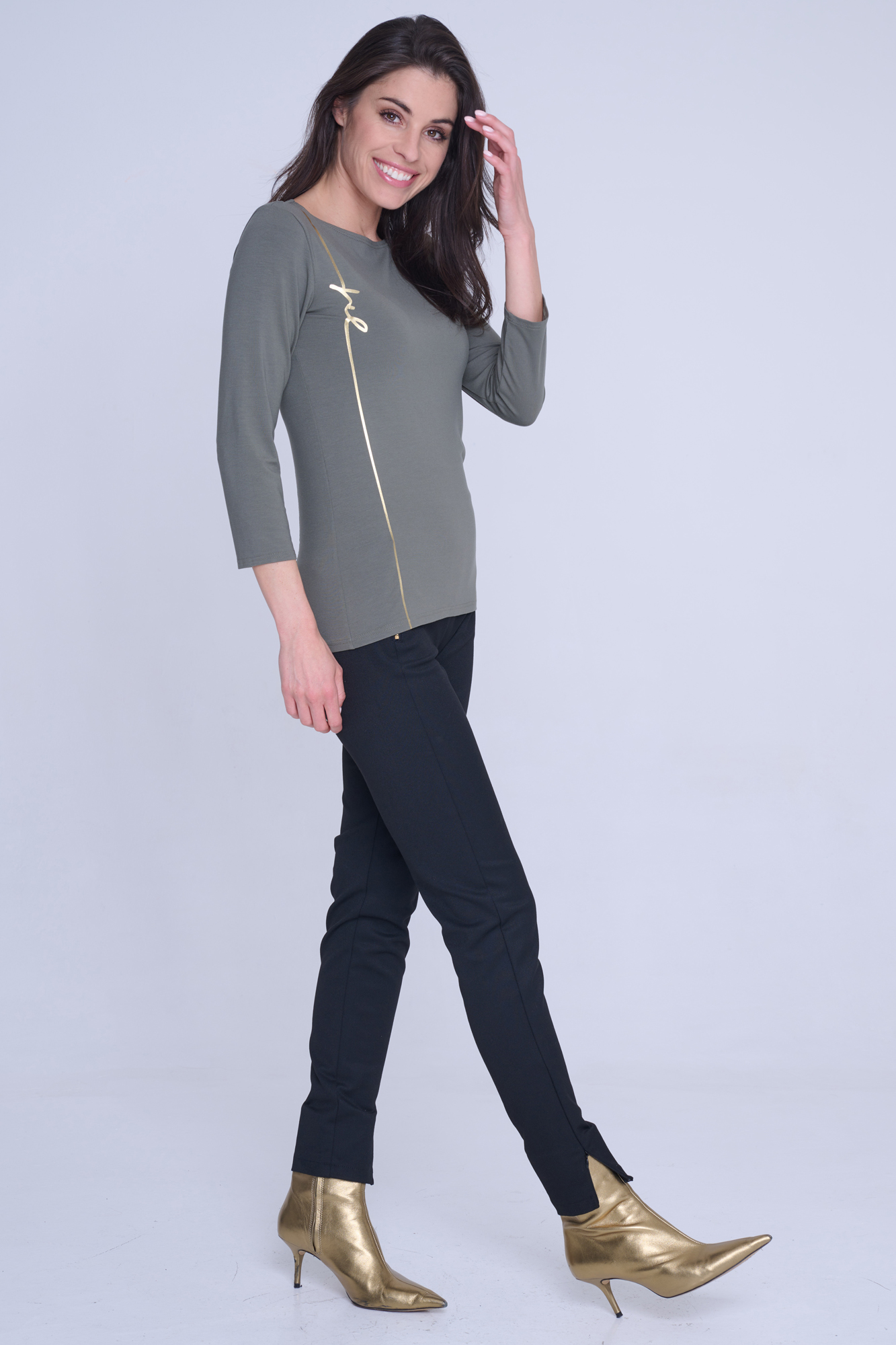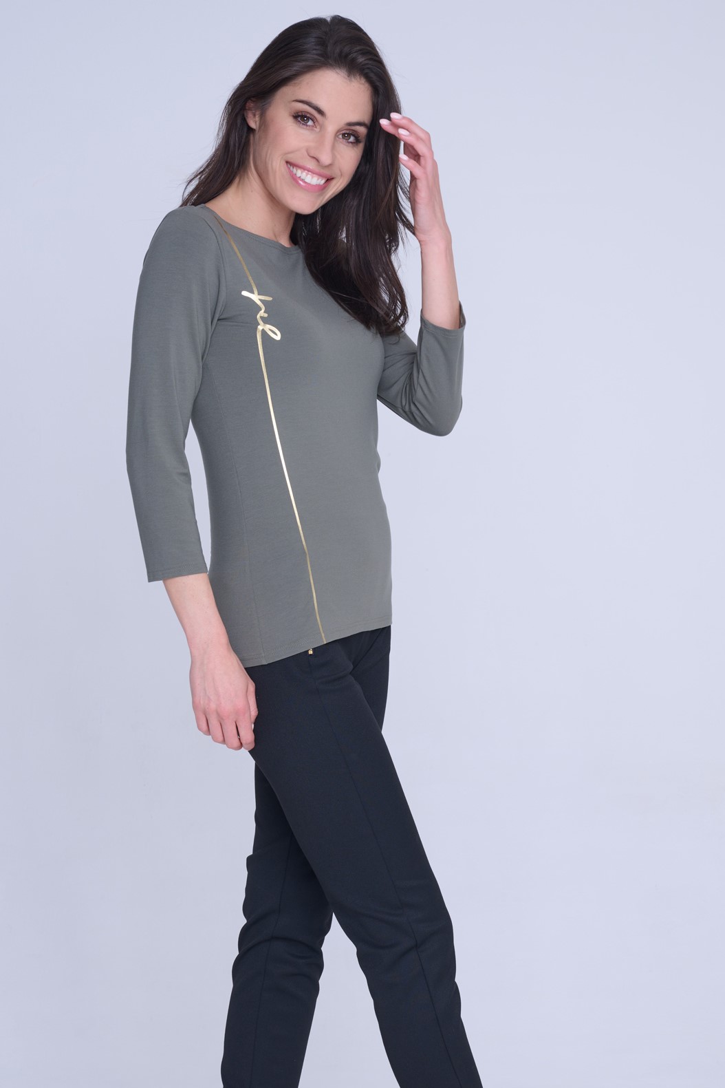 Basic tričko s 3/4 rukávem se zlatým tiskem INFINITE.