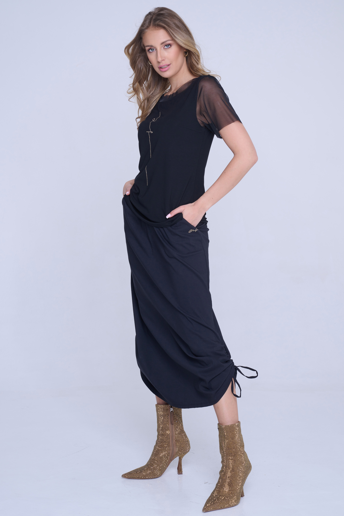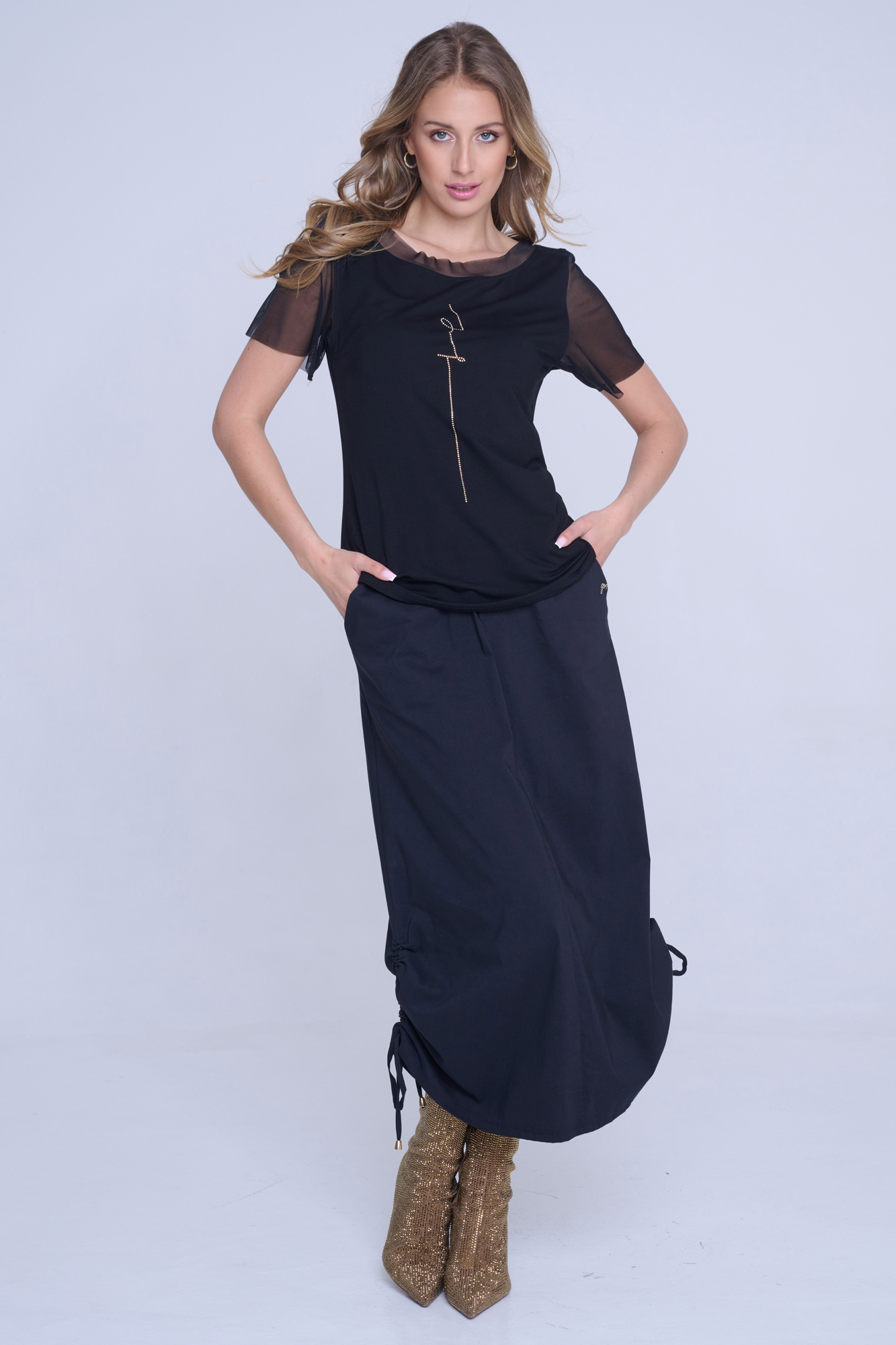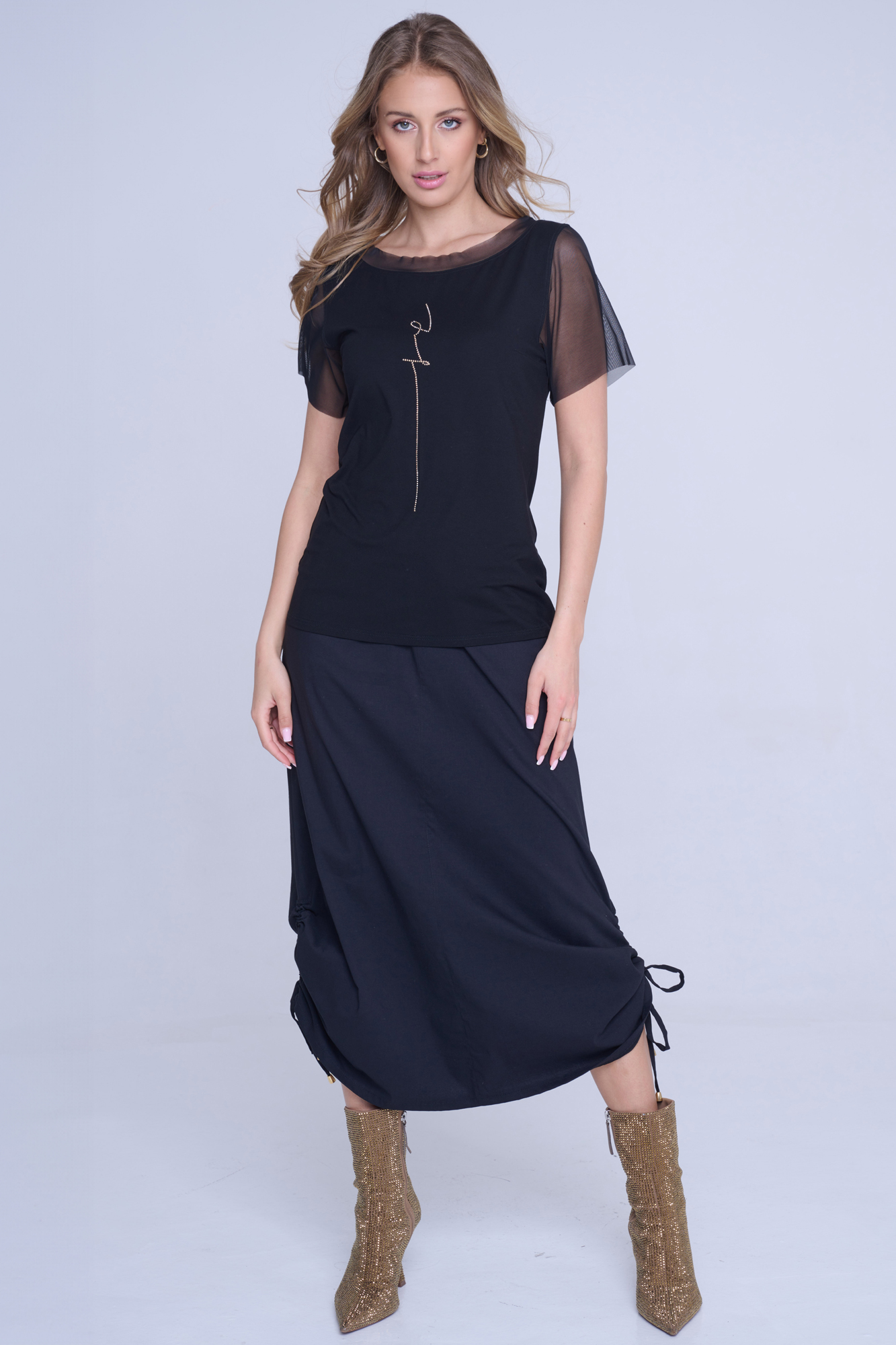 Tričko s nápisem Infinite ze zlatých krystalů Preciosa.