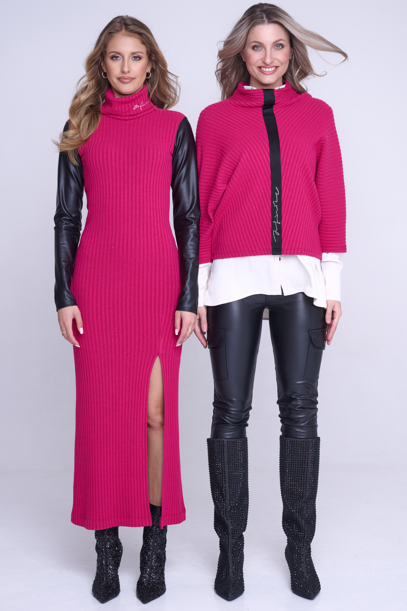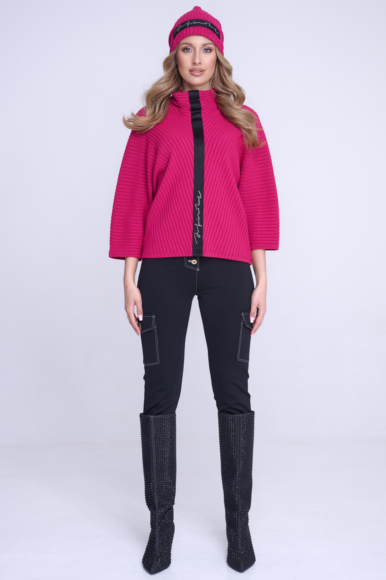 "Pončo" svetr. Na předním díle stuha s nápisem Infinite ze stříbrných krystalů Preciosa.