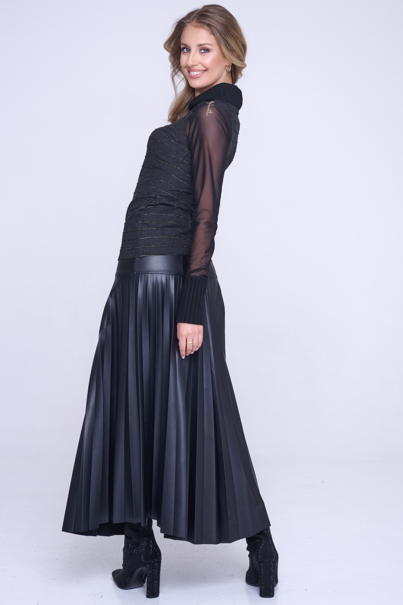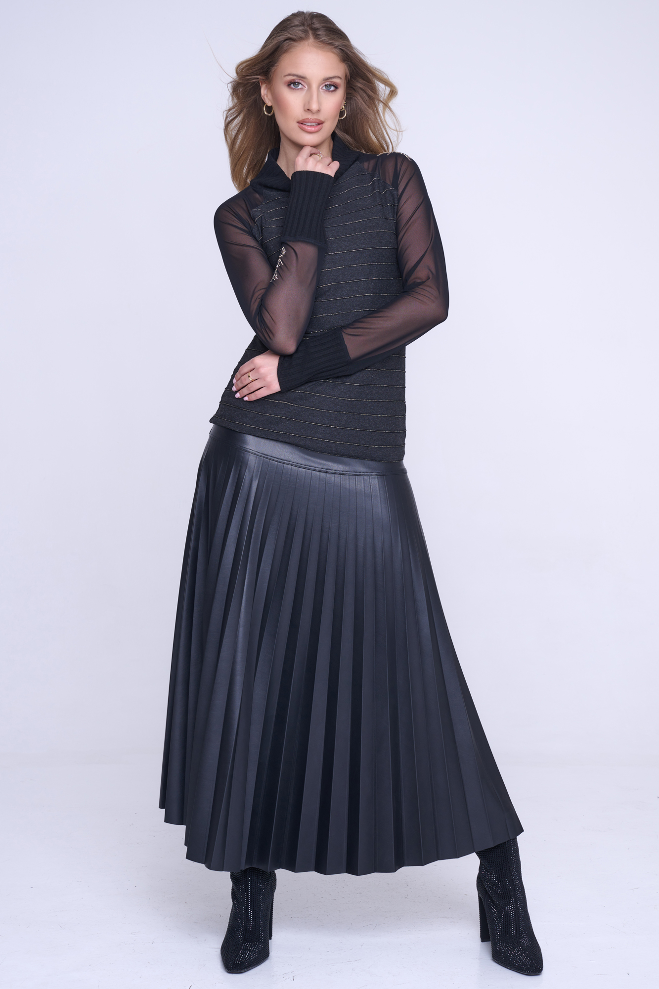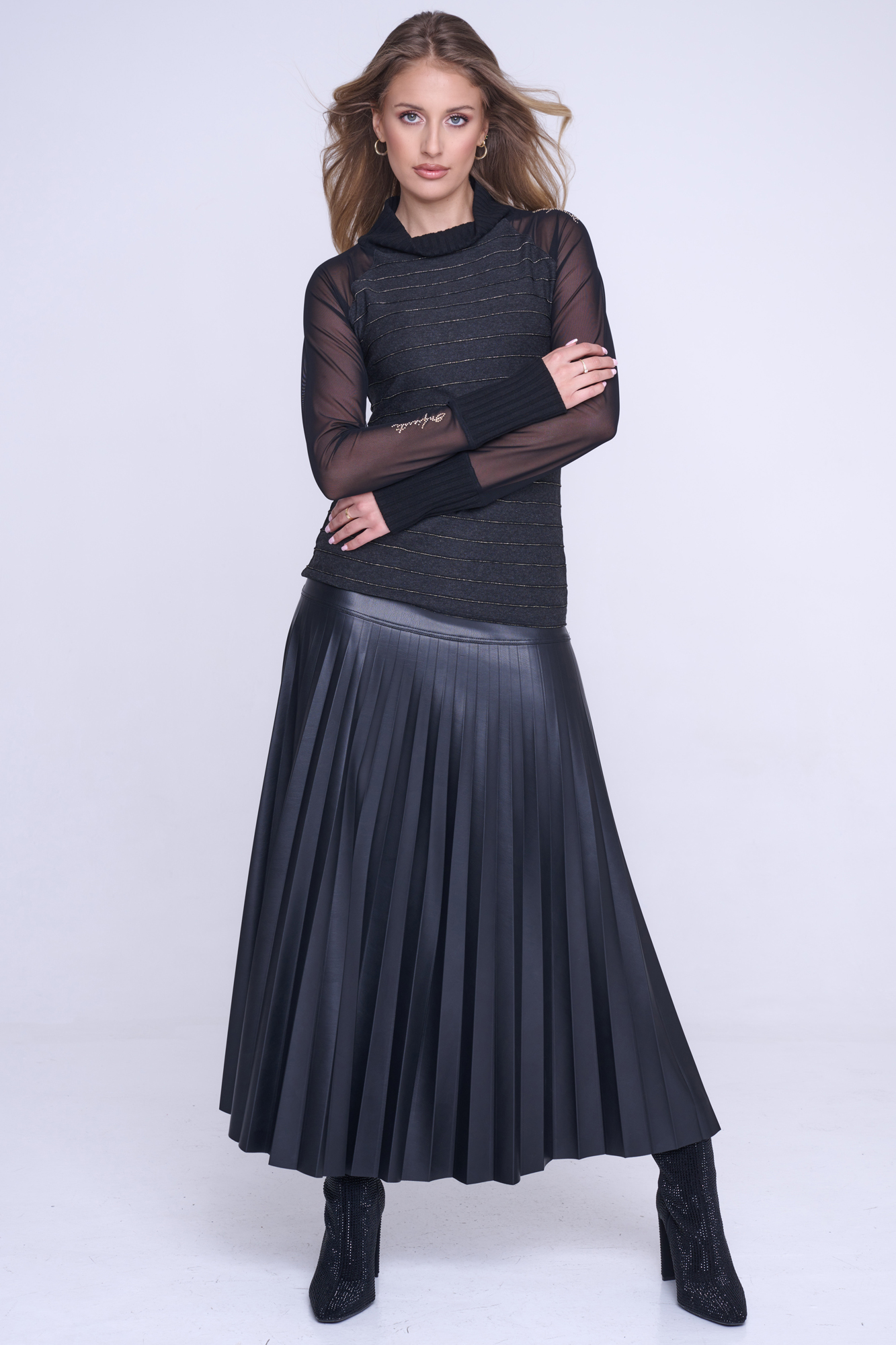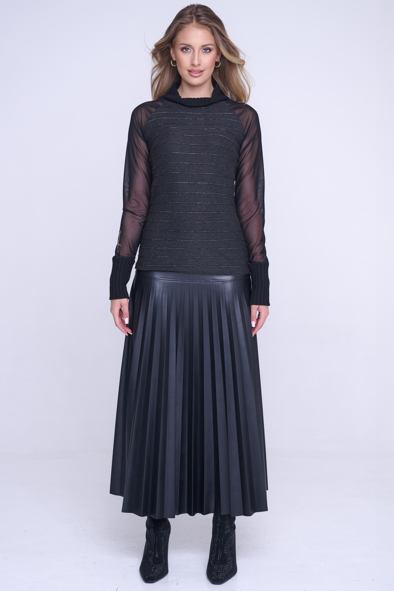 Tričko Infinite s rolákem a manžetami ze žebrovaného úpletu. Rukávy z průhledného tylu a s efektním detailem nápisu Infinite ze zlatých krystalů Preciosa.