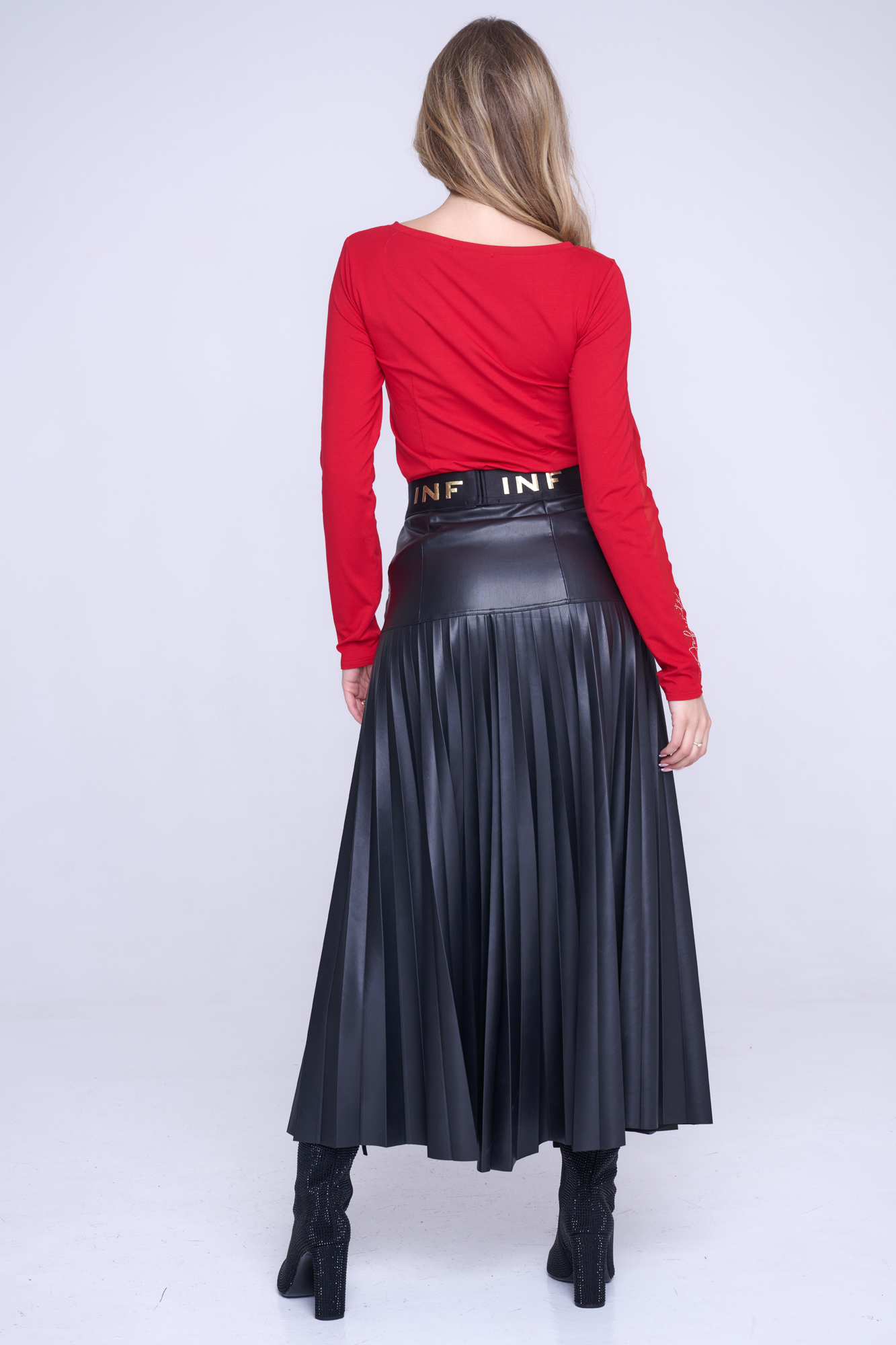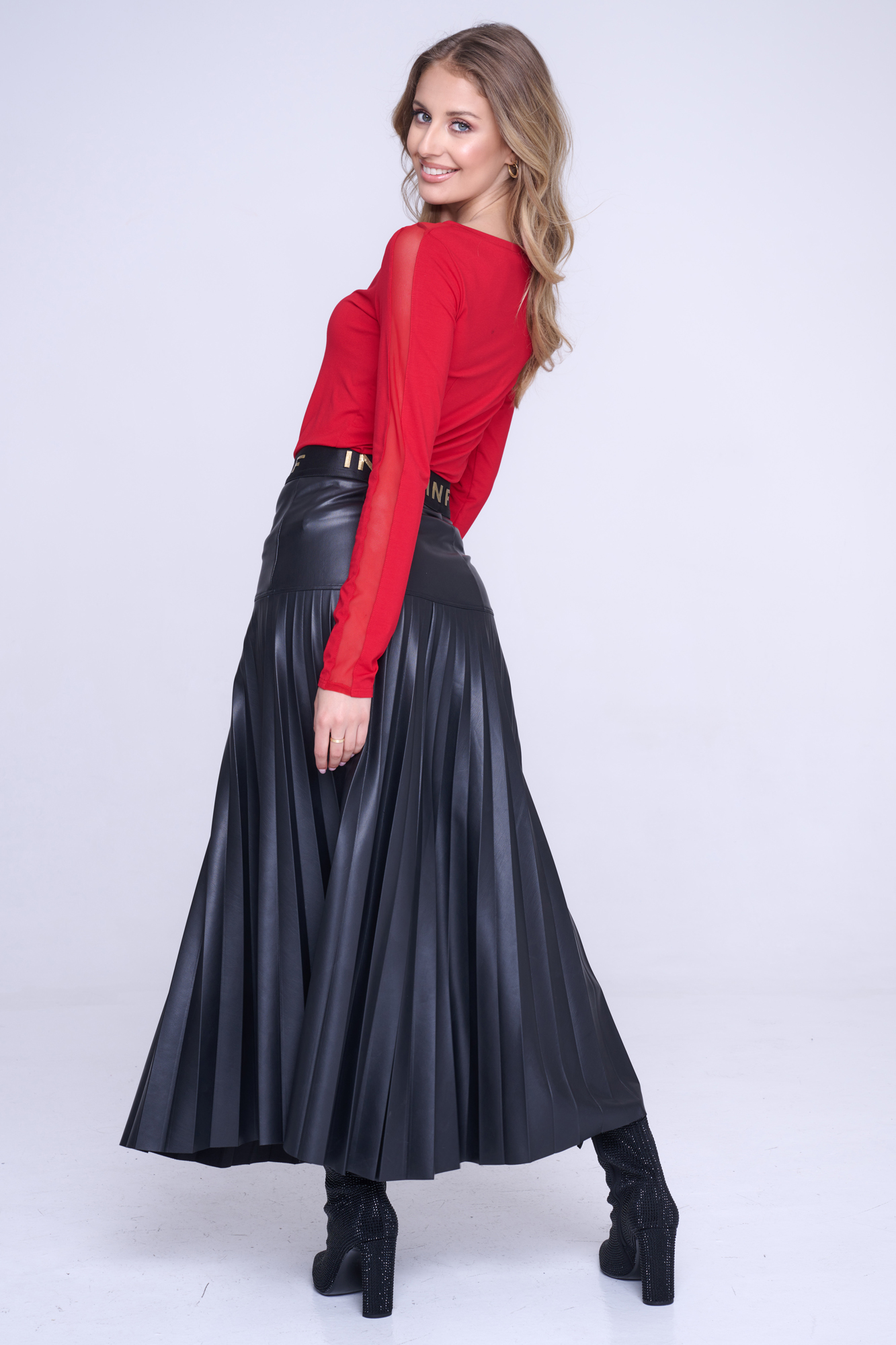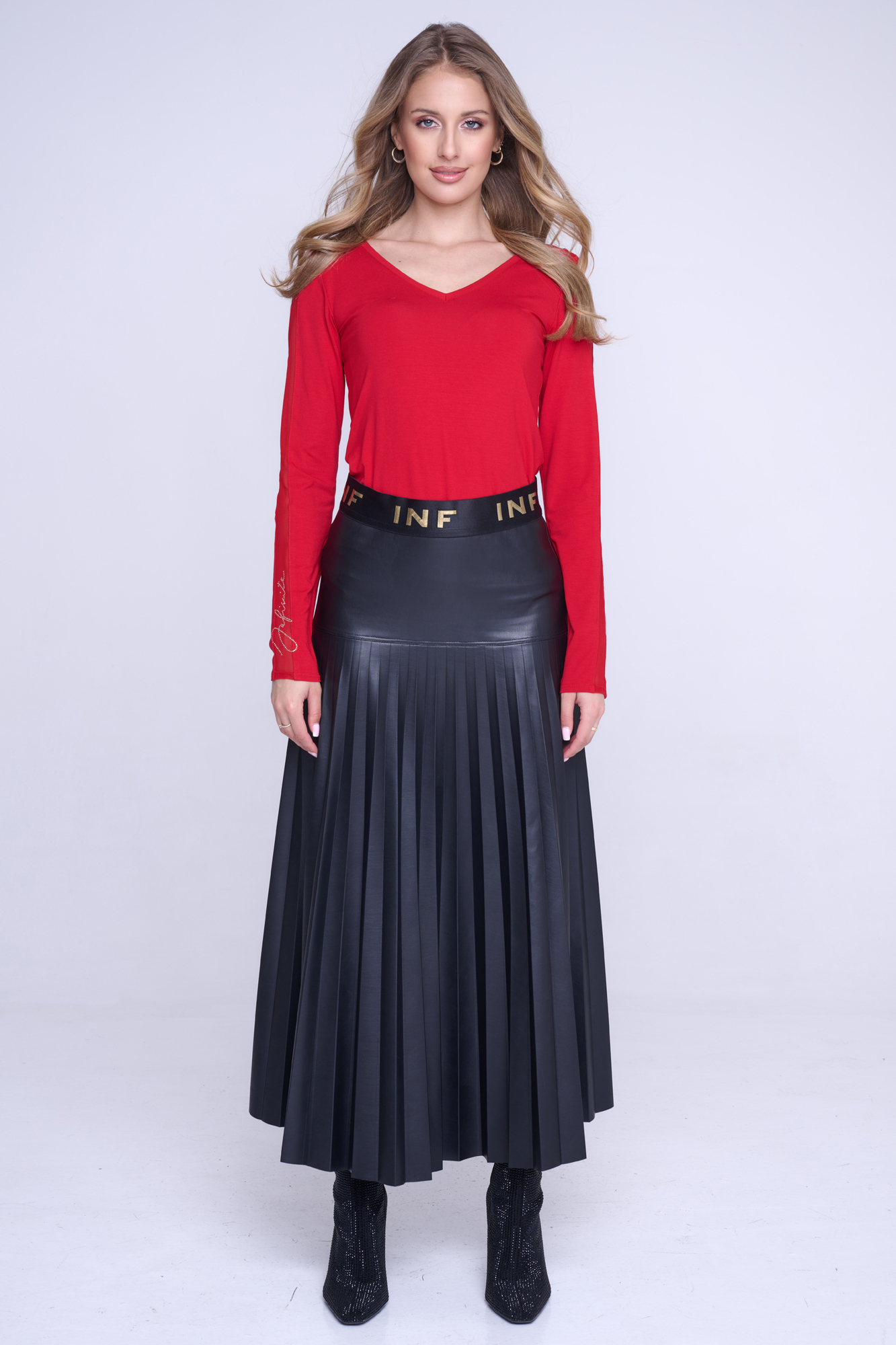 Tričko s dlouhým rukávem s výstřihem do véčka. Lampasy na rukávech z průsvitného tylu. Na rukávu efektní nápis Infinite ze zlatých krystalů Preciosa.