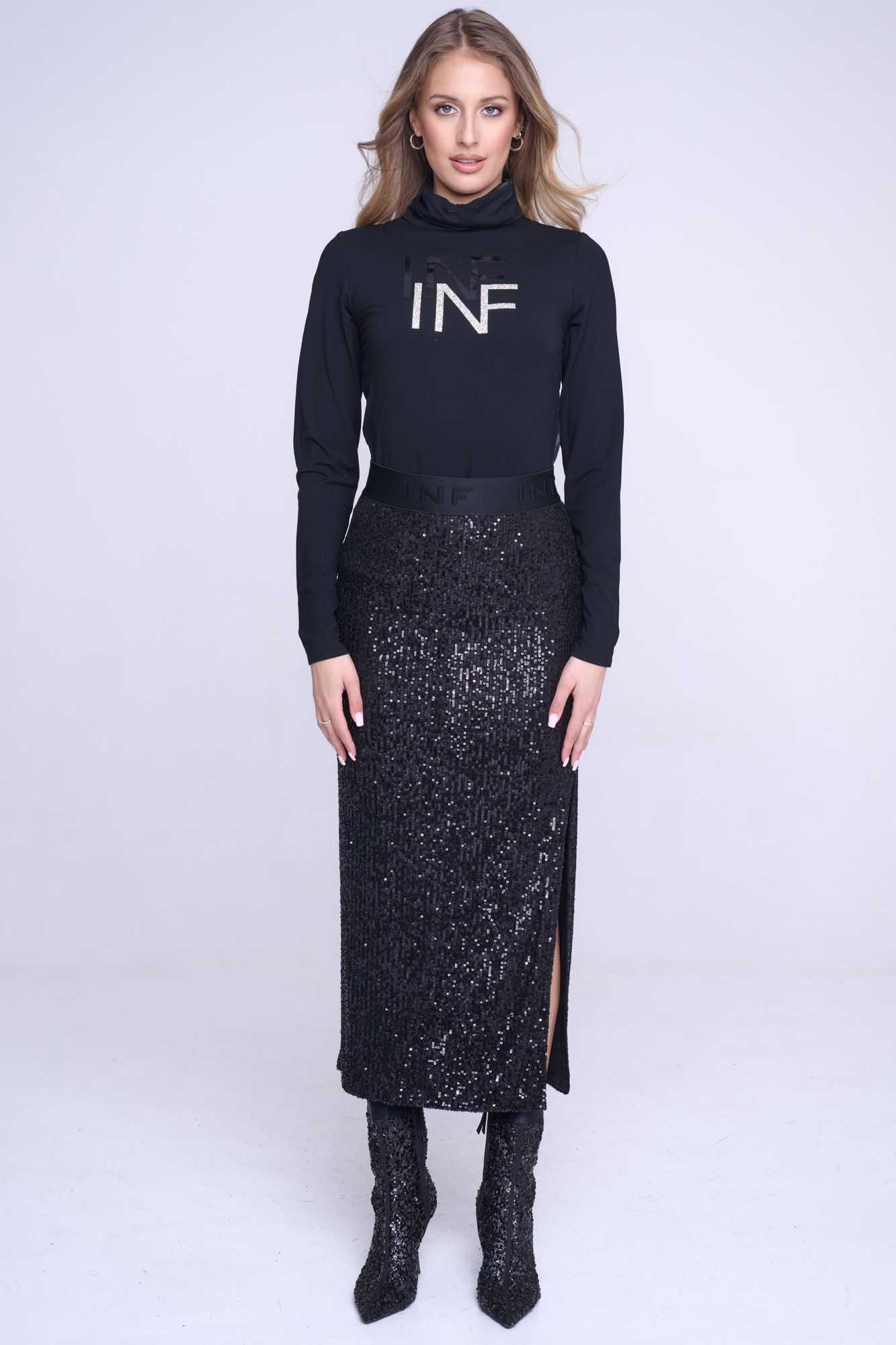 Rolák s dlouhým rukávem. Na předním díle glitrový tisk INF.