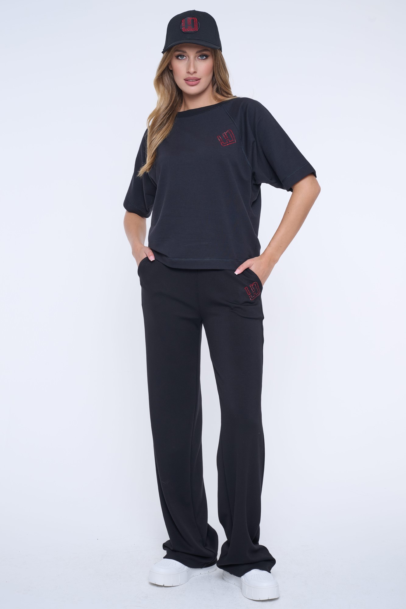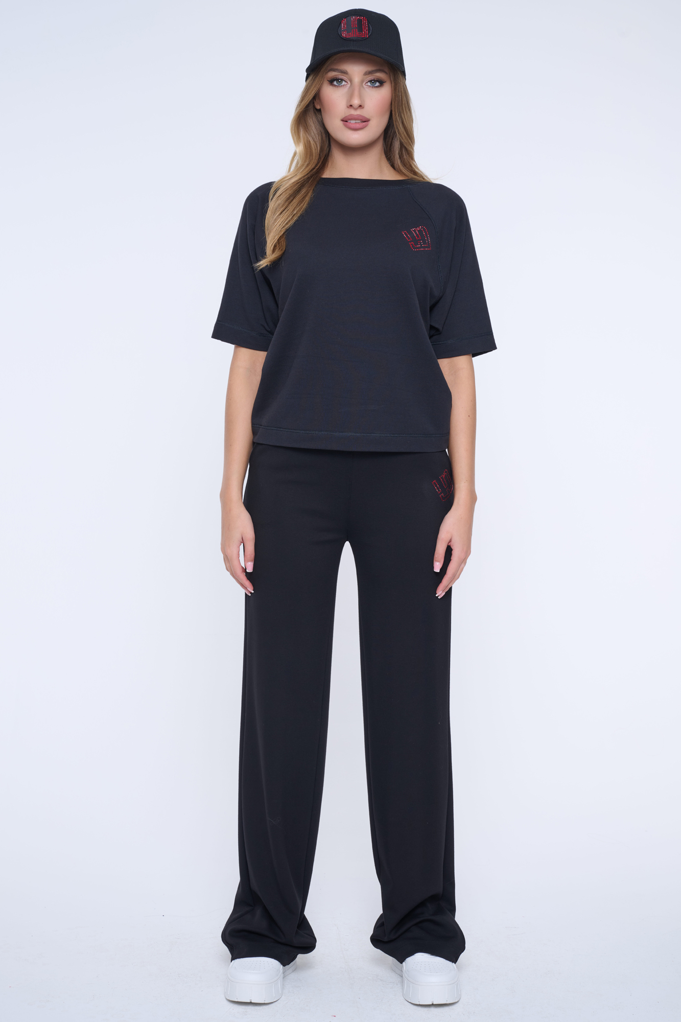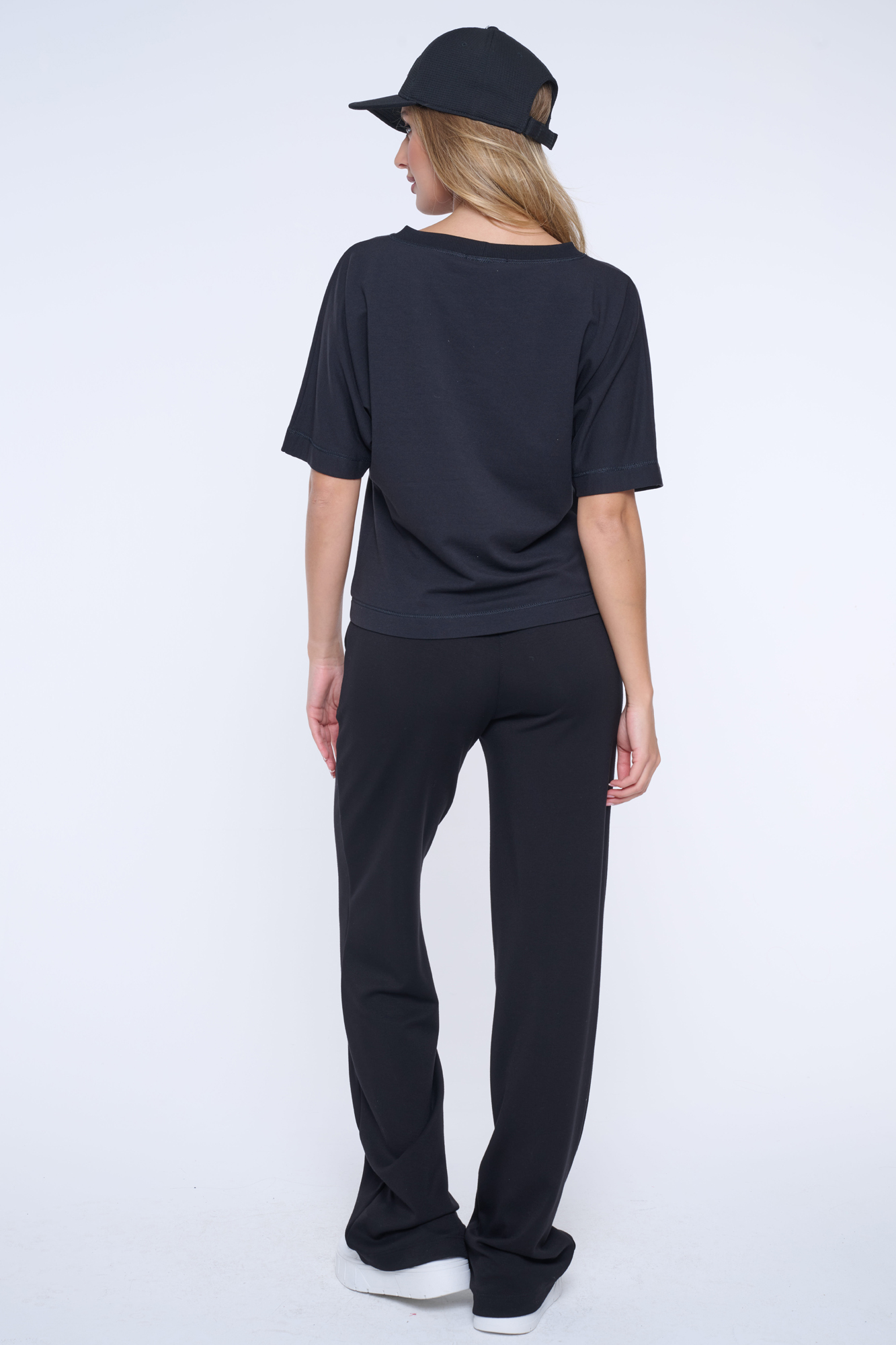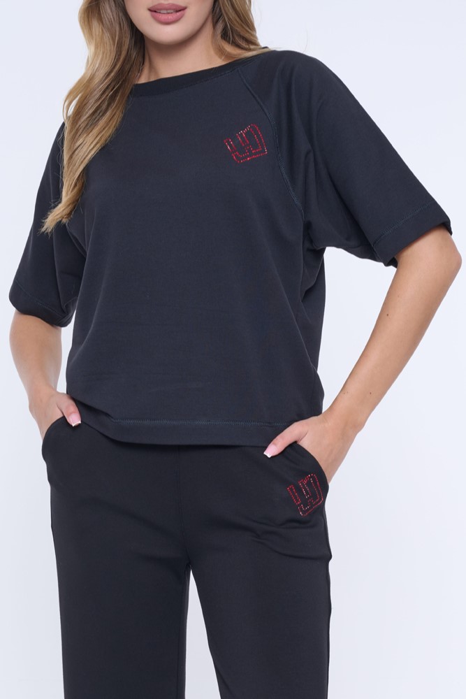 Kratší modní triko rovného volnějšího střihu z mikinového materiálu.