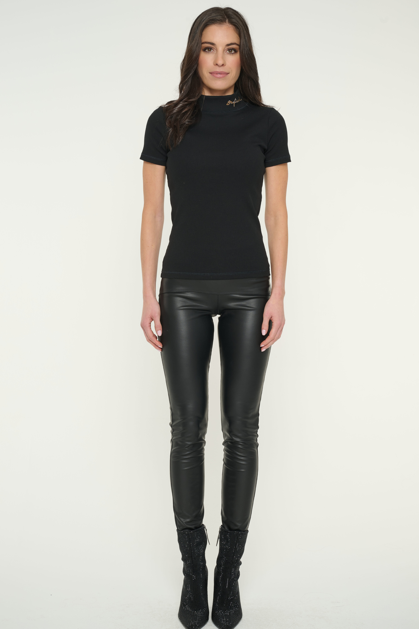 Top se stojáčkem a krátkým rukávem z jemného žebra.