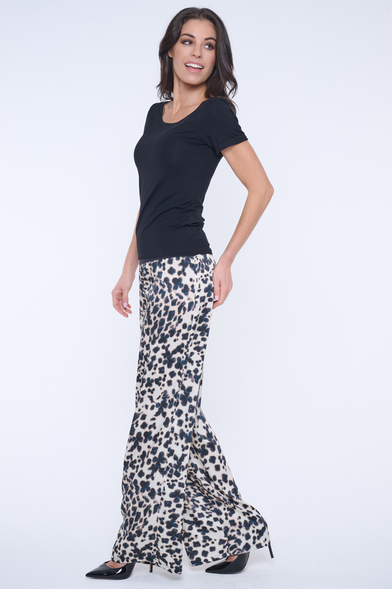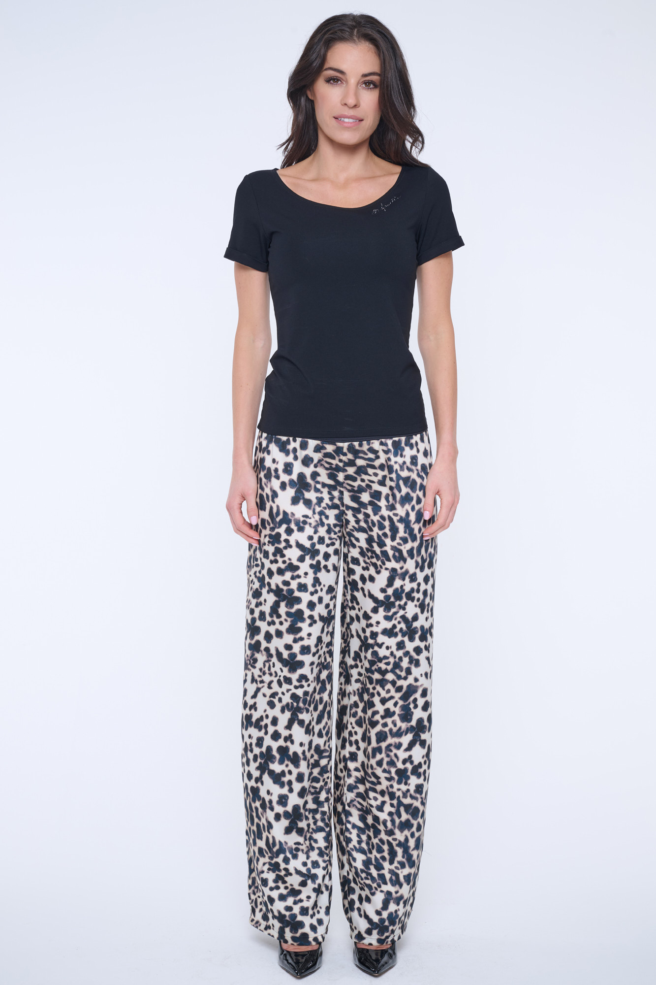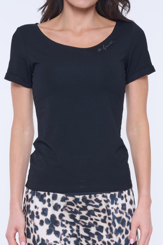 Basic tričko s viskózového strečového úpletu. Ve výstřihu nápis Infinite z černých krystalů Preciosa.