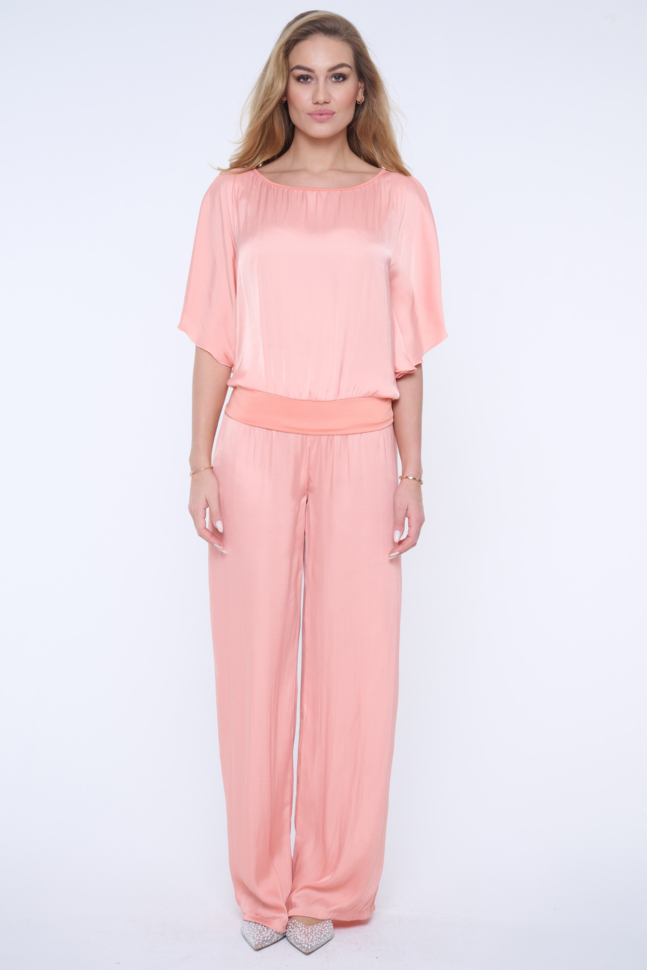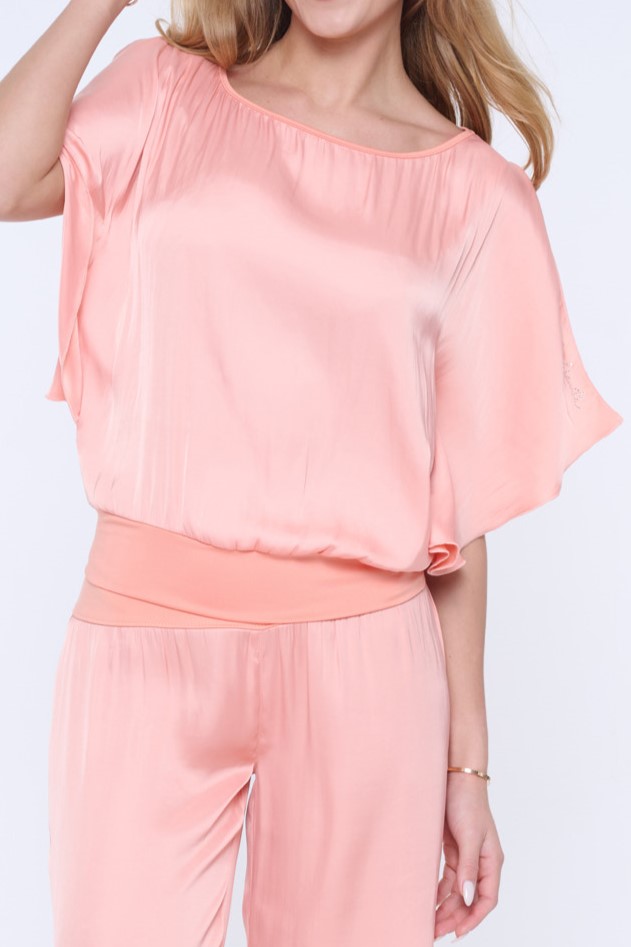 Volná halenka s podkasem. V pase lampas z "rib" materiálu. Na rukávu nápis Infinite ze stříbrných krystalů Preciosa. Halenka se hodí k džínám a teniskám nebo se širokými kalhoty Infinite art. 452-773 i na svatbu nebo jinou společenskou událost.