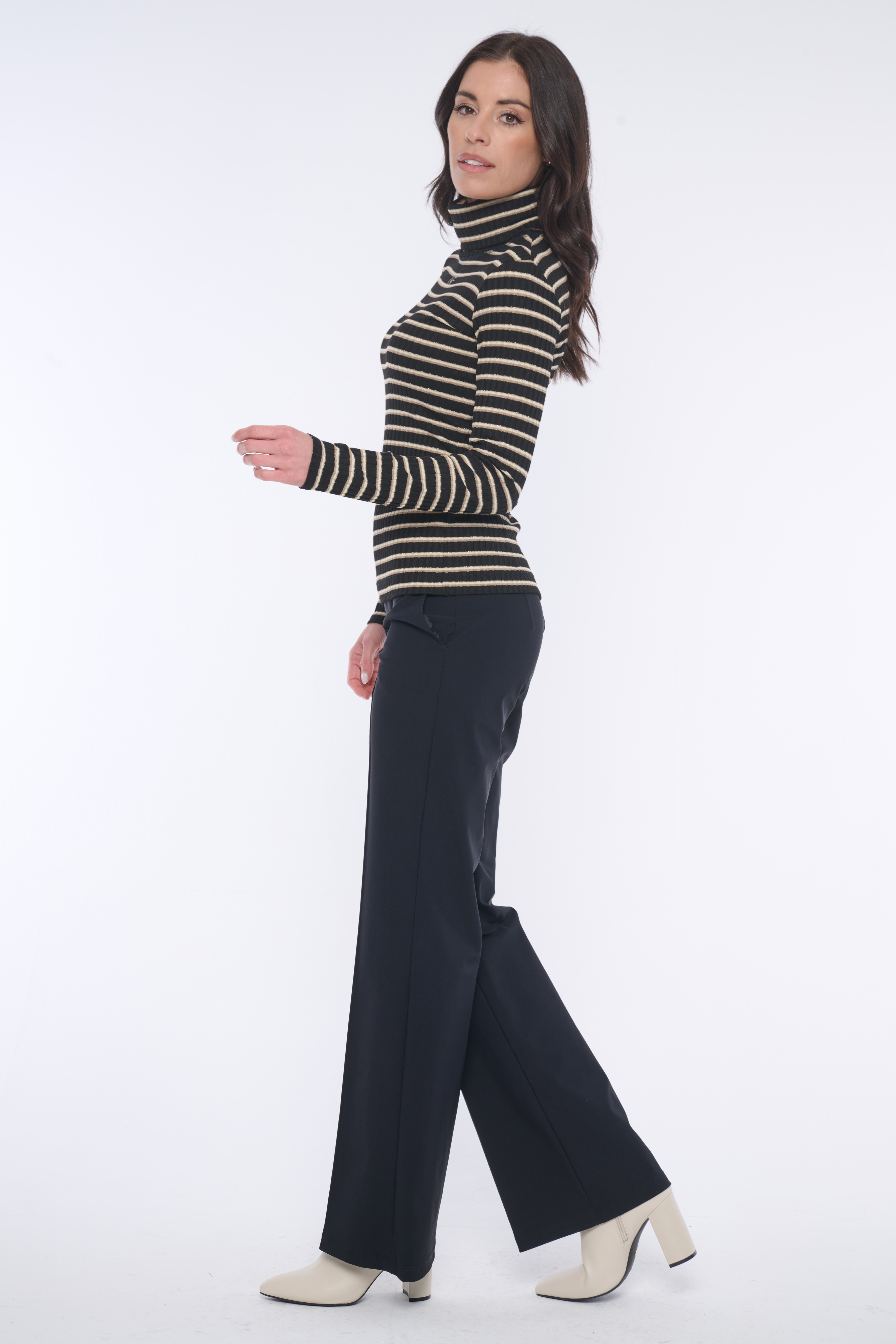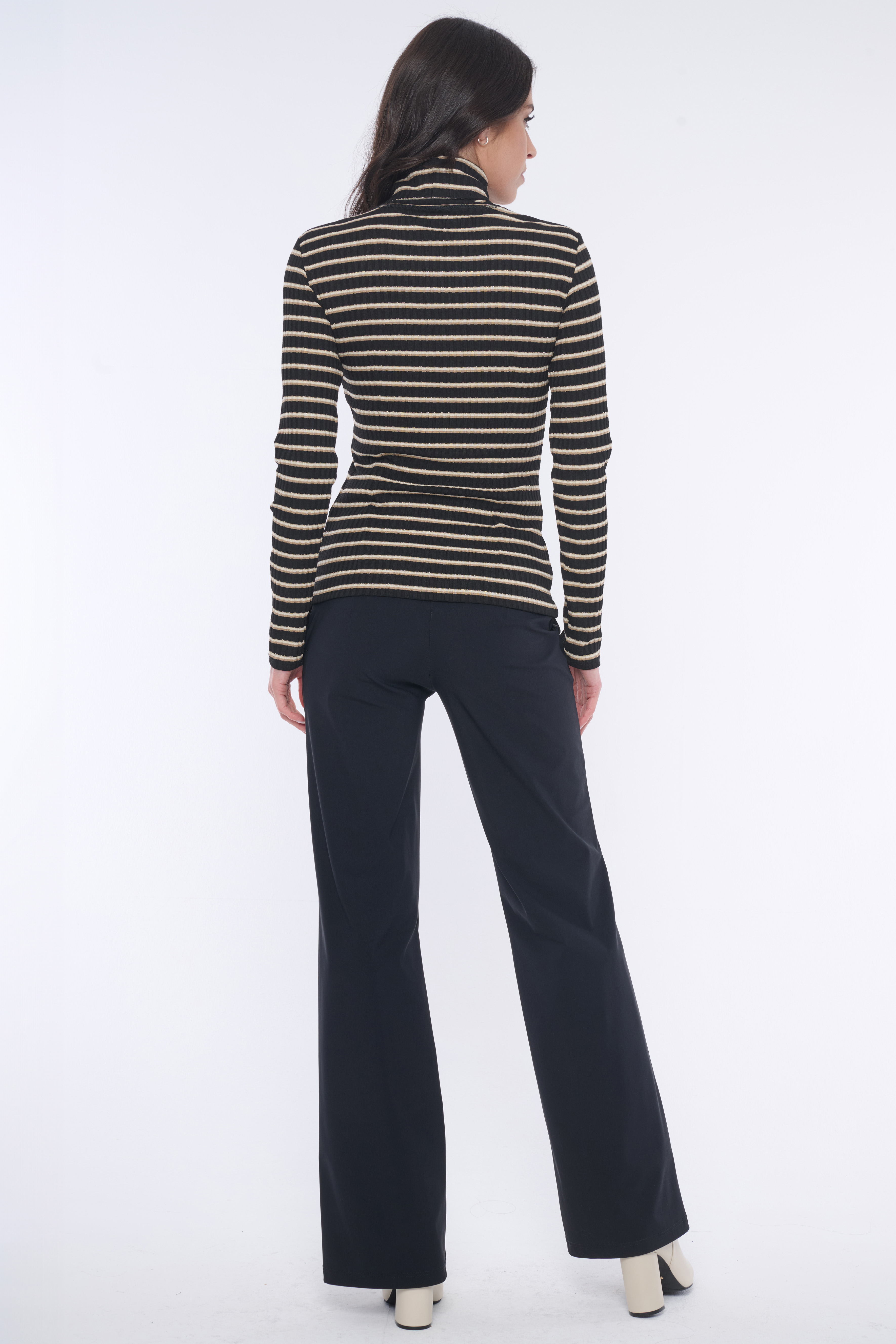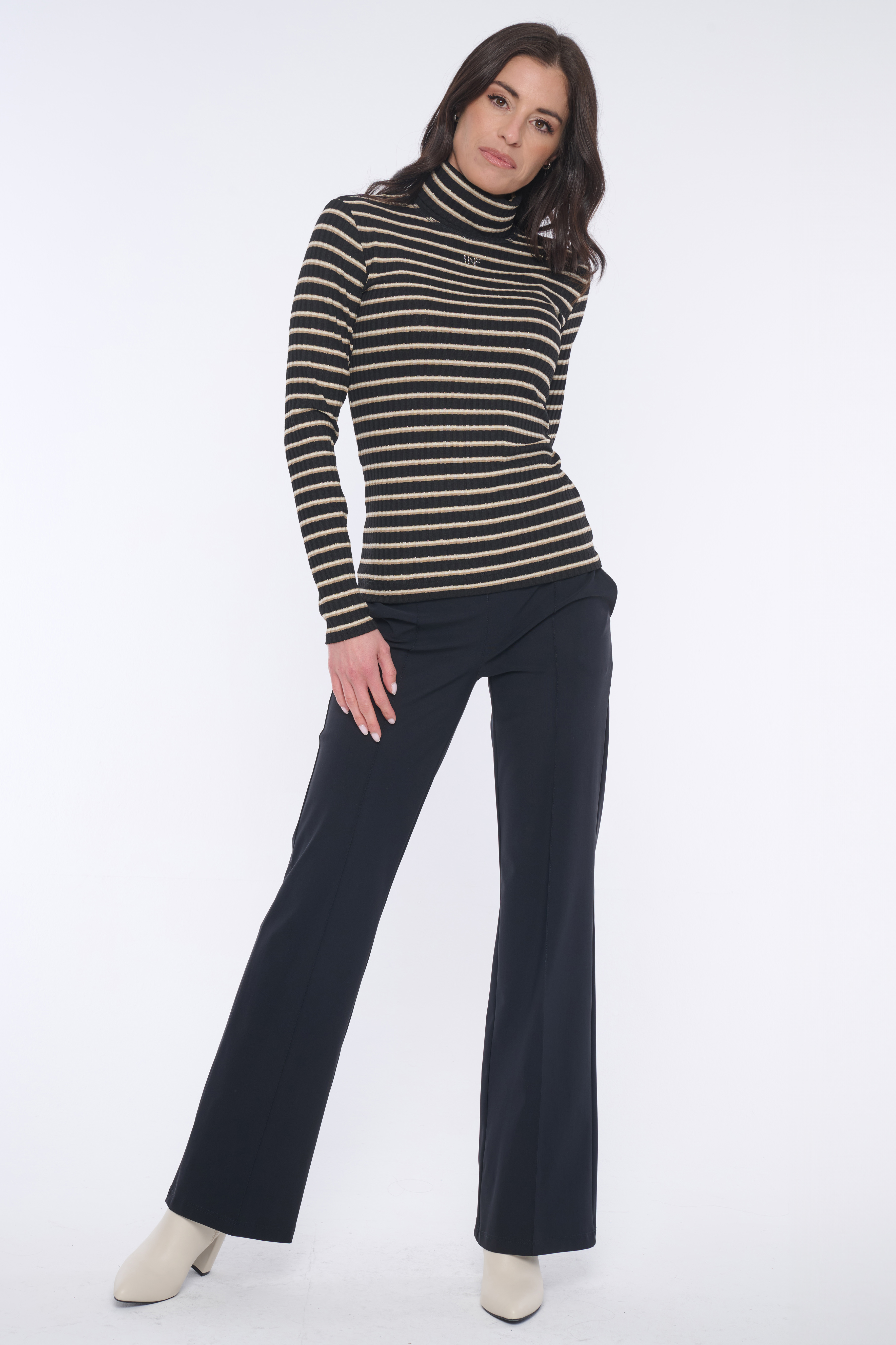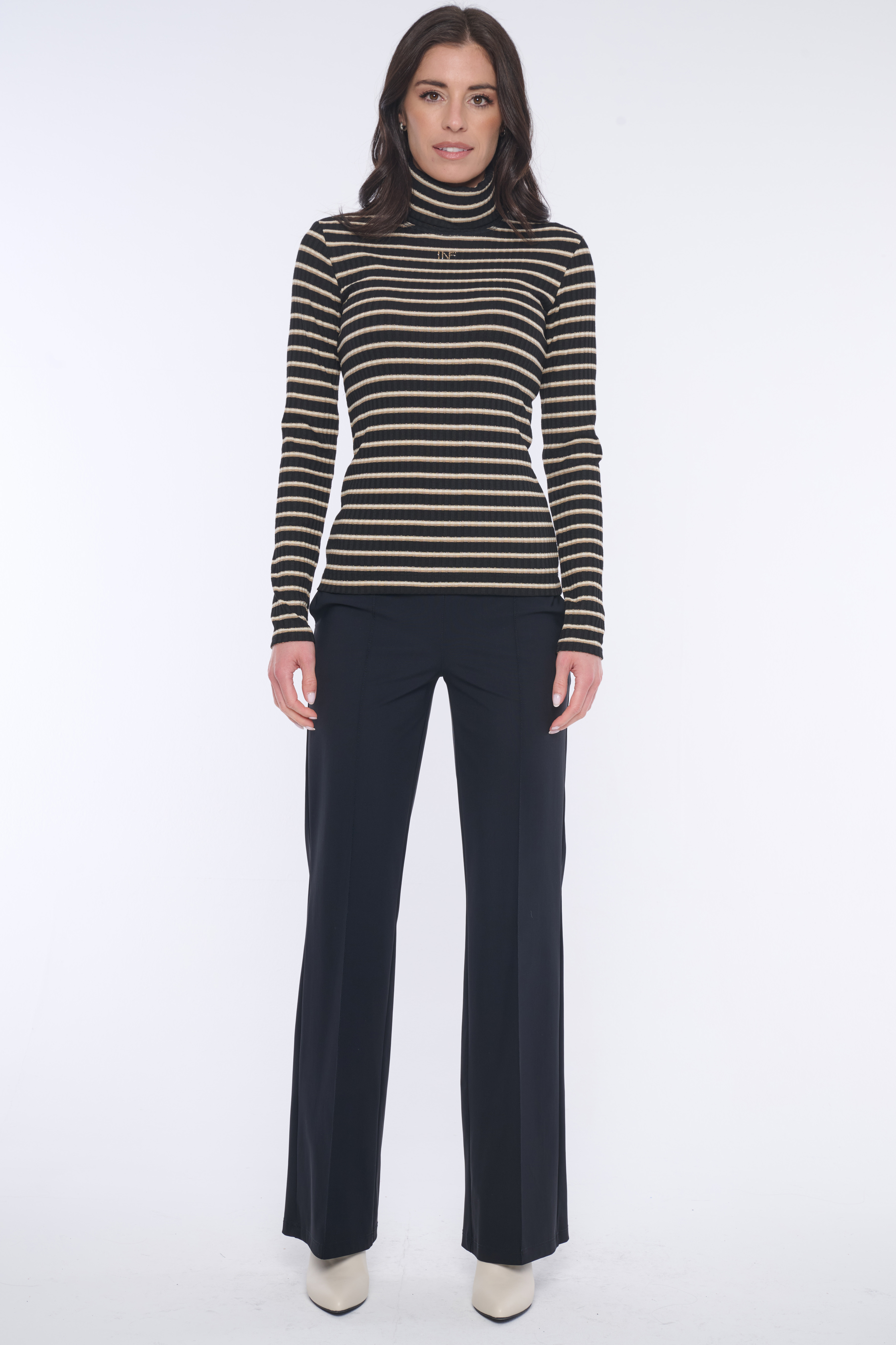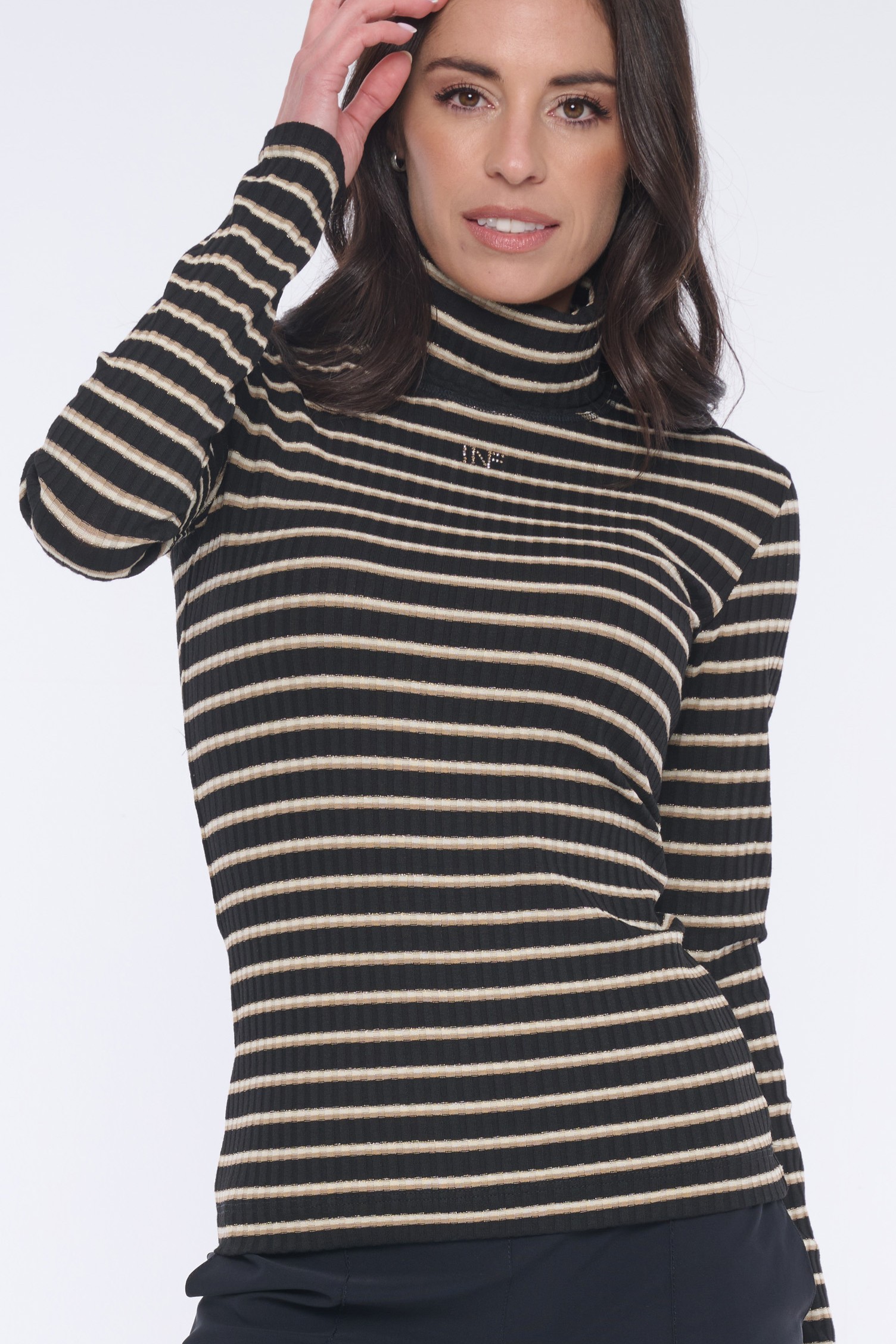 Rolák s dlouhým rukávem z úpletového "rib" úpletu. Na předním díle minimalistické logo INF ze zlatých krystalů Preciosa.