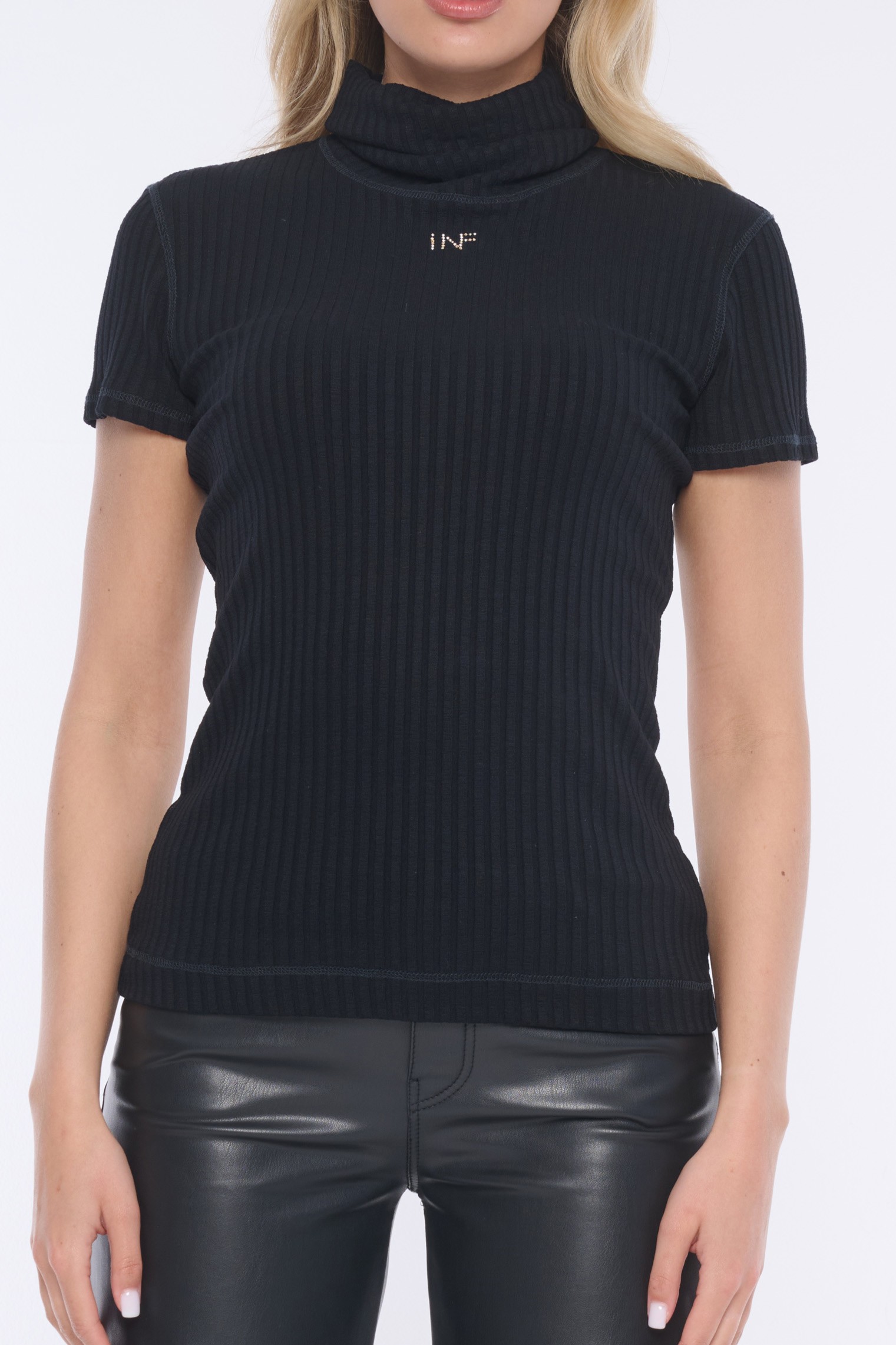 Rolák s krátkým rukávem z úpletového "rib" úpletu.Na předním díle minimalistické logo INF ze zlatých krystalů Preciosa.