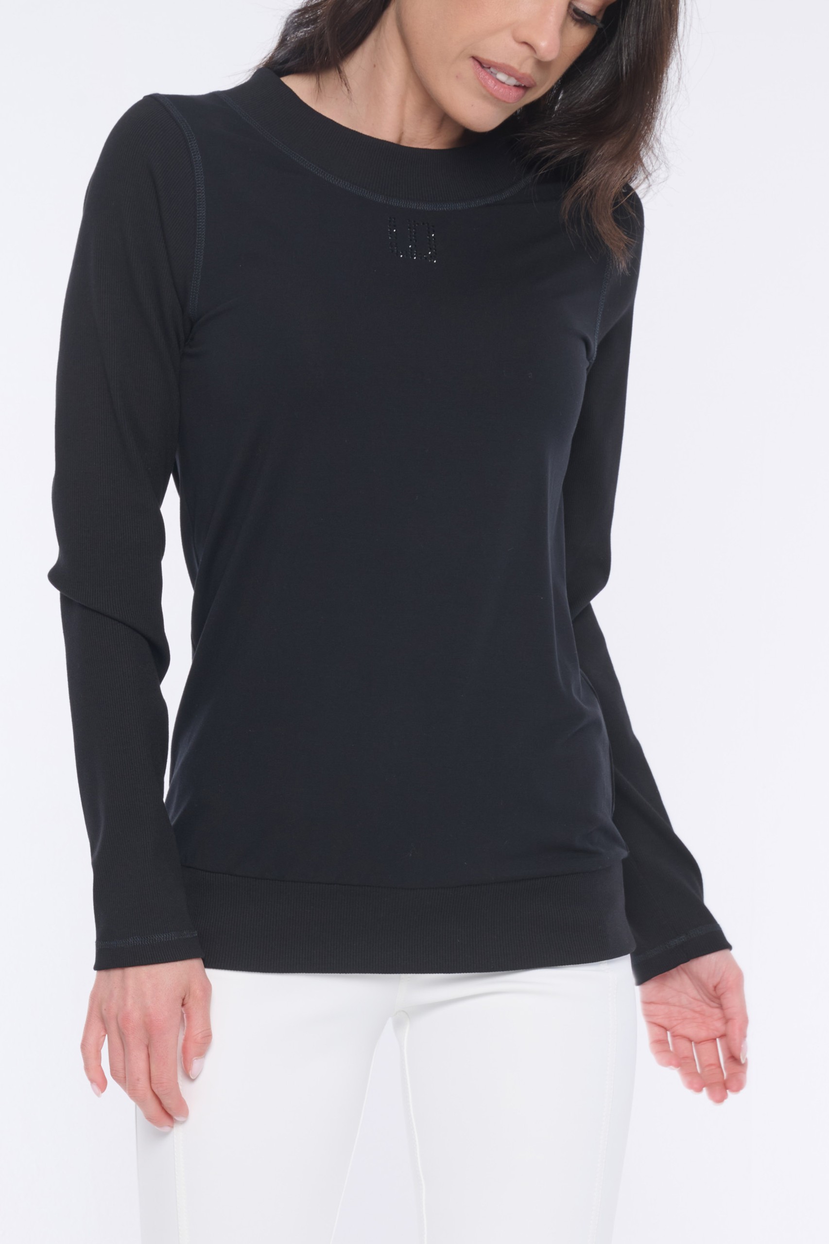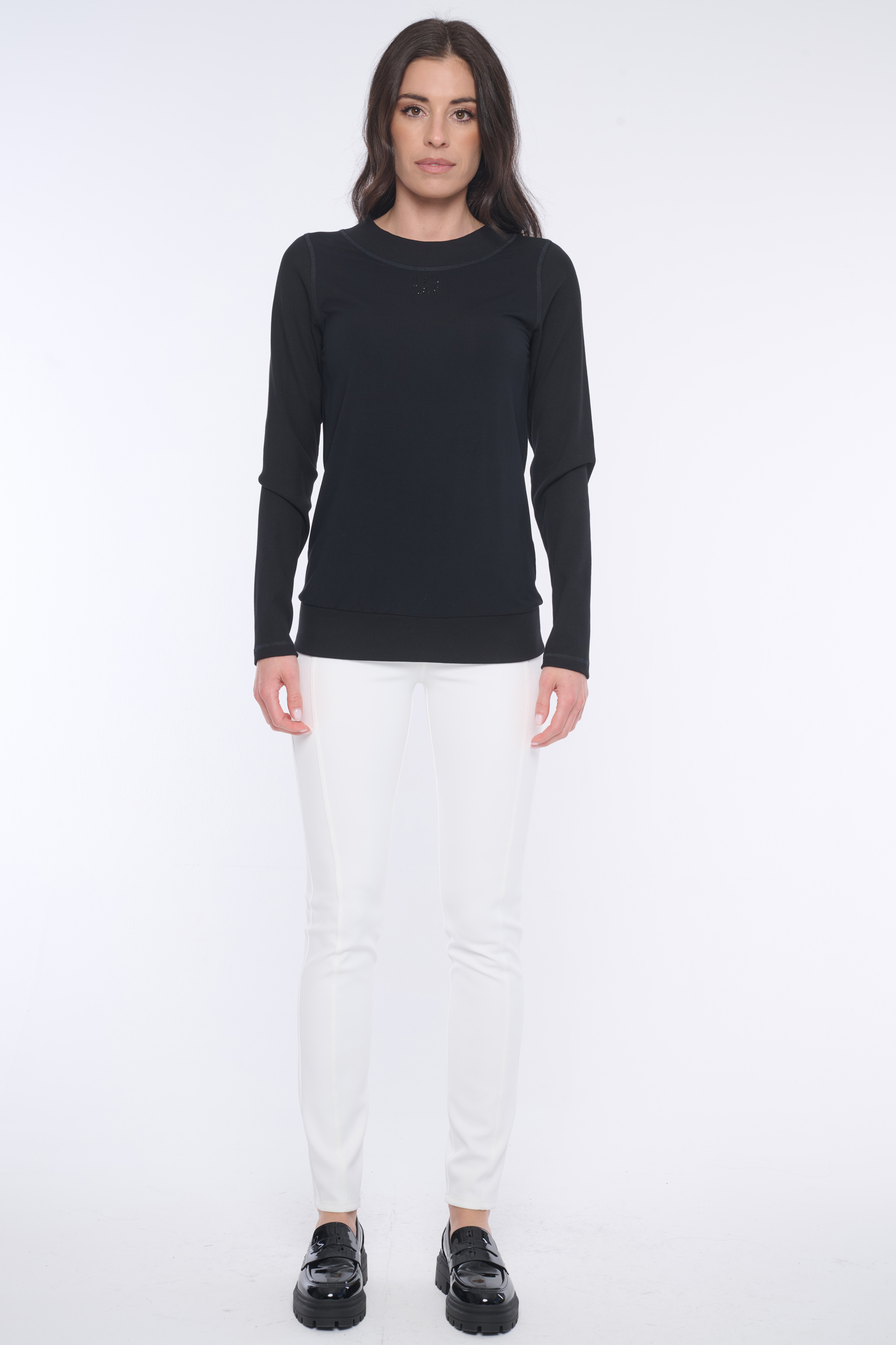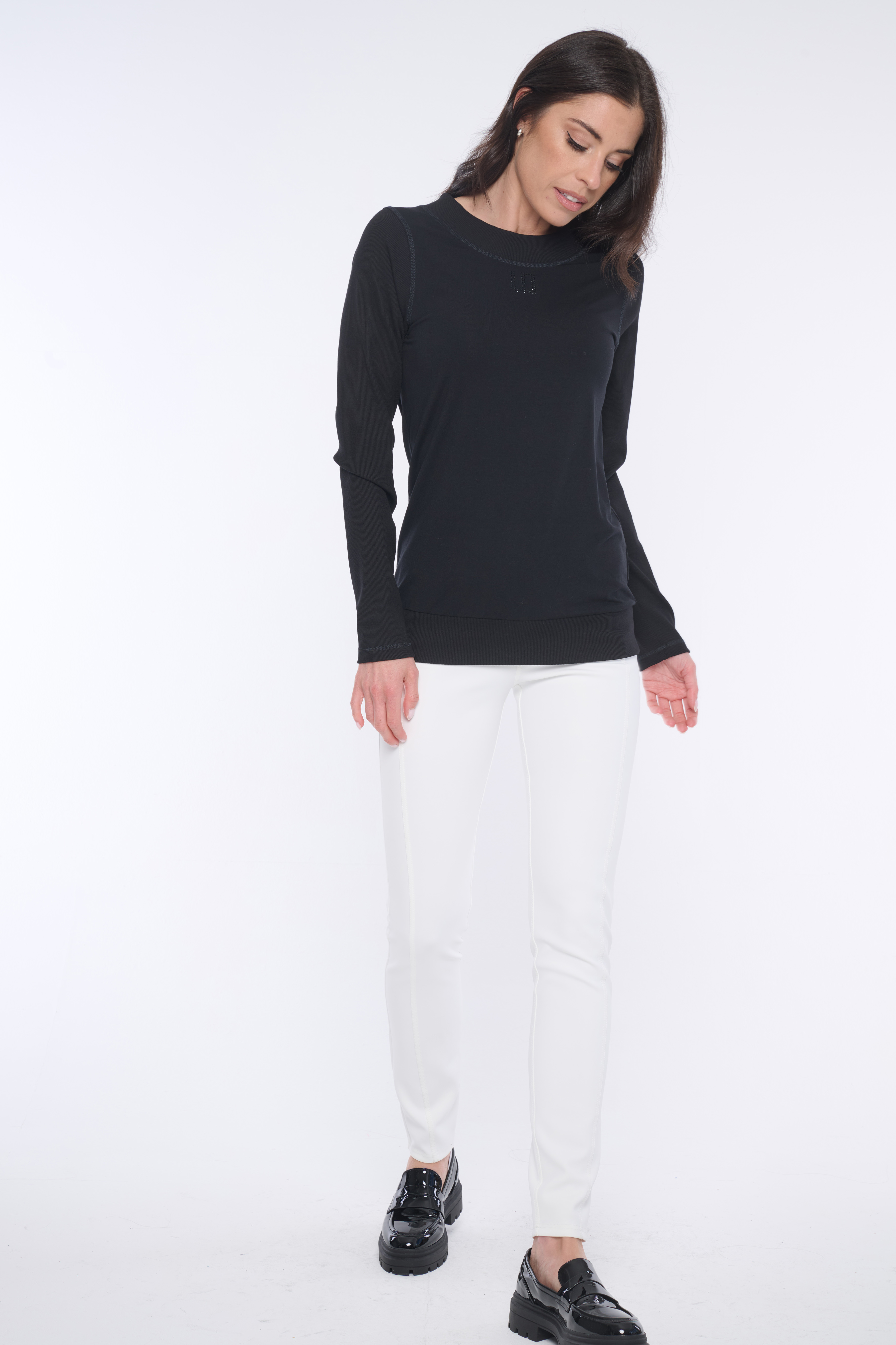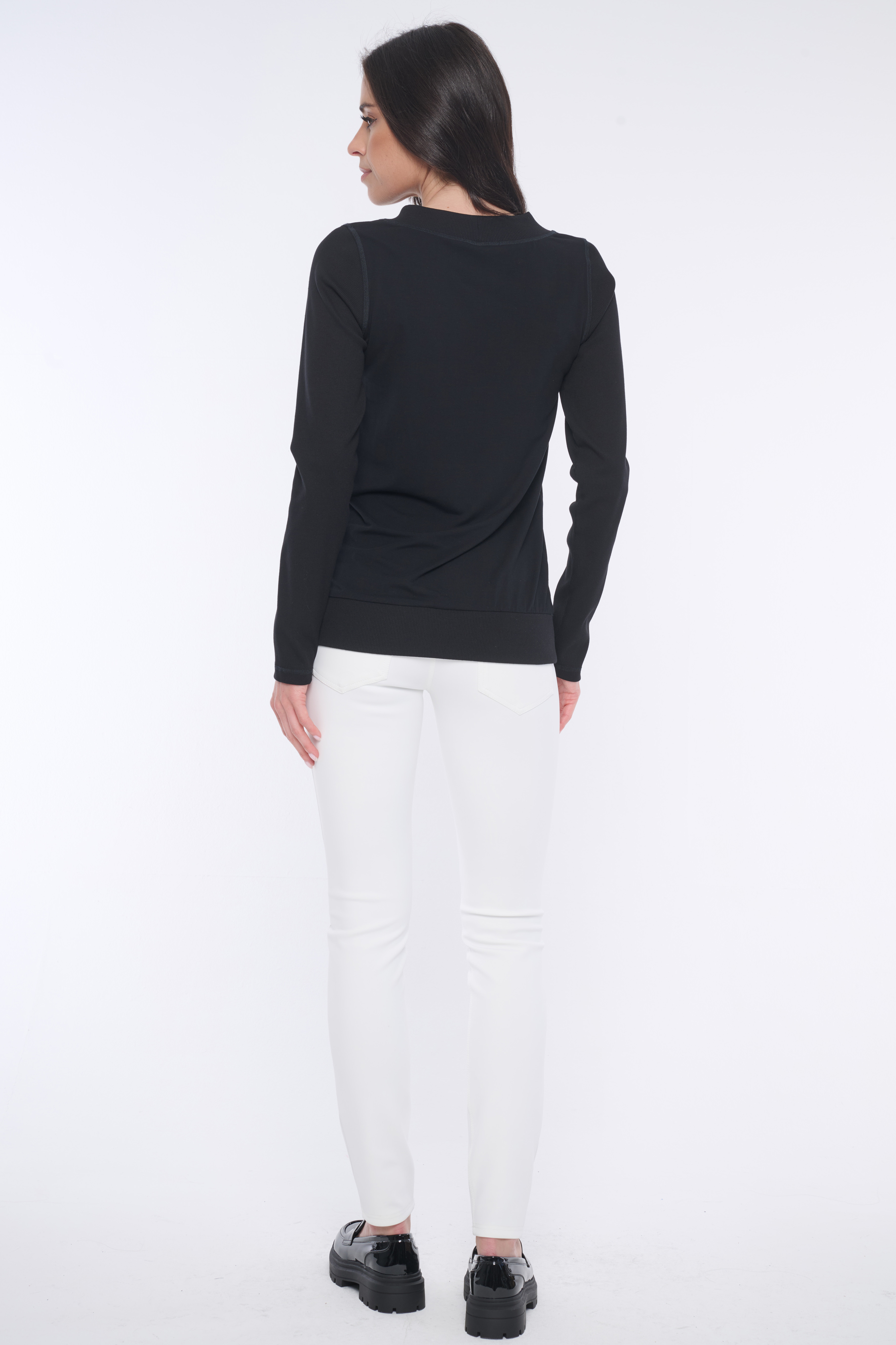 Volnější tričko s patentem. Kombinace hladkého a "rib" úpletu.