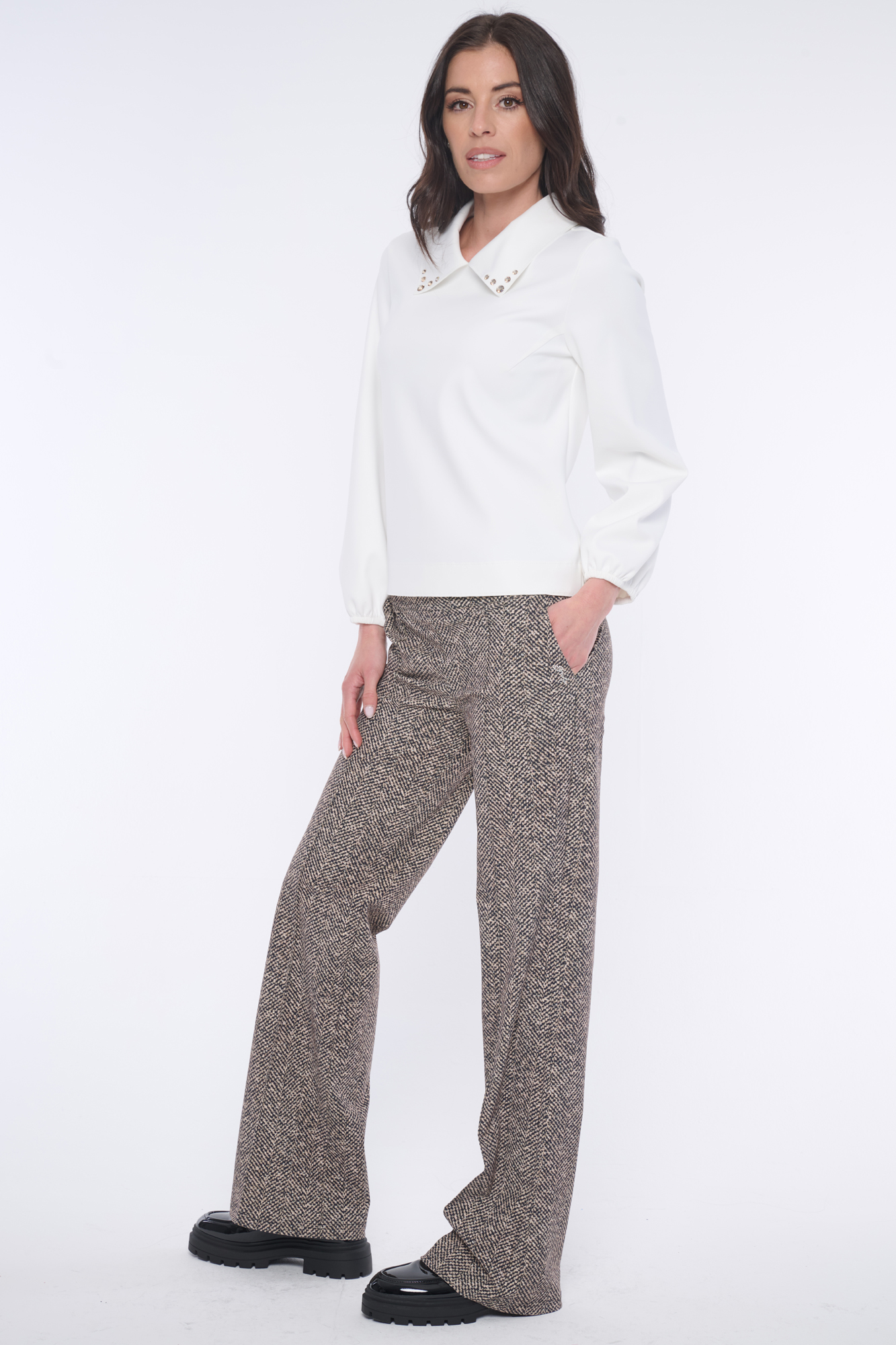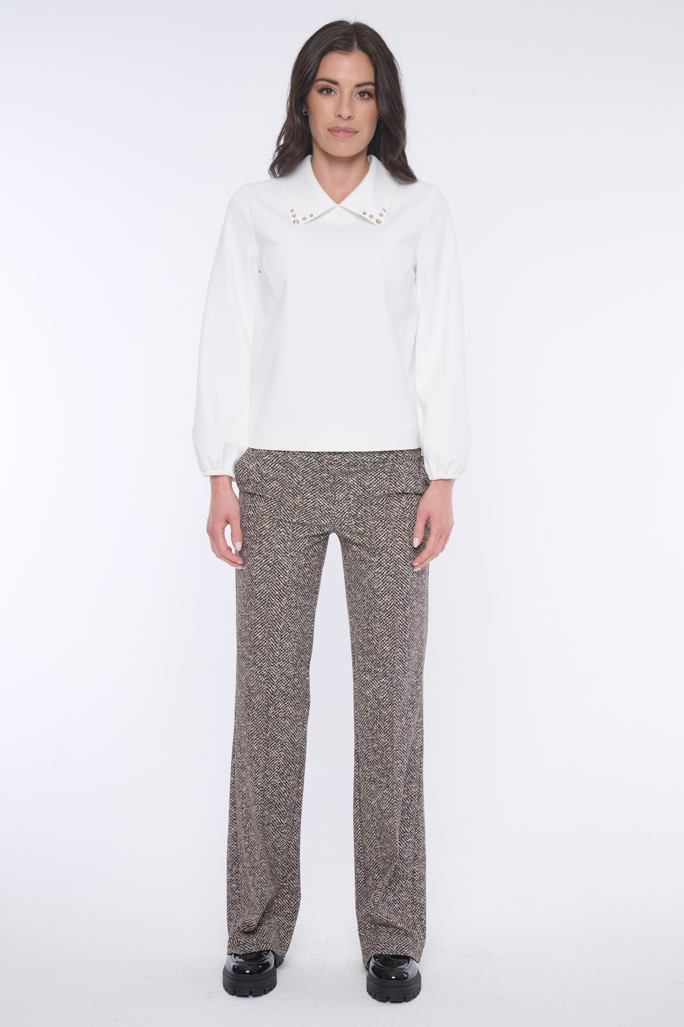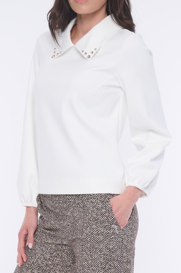 Krátký top s límečkem a dlouhými rukávy z módního materiálu Scuba.