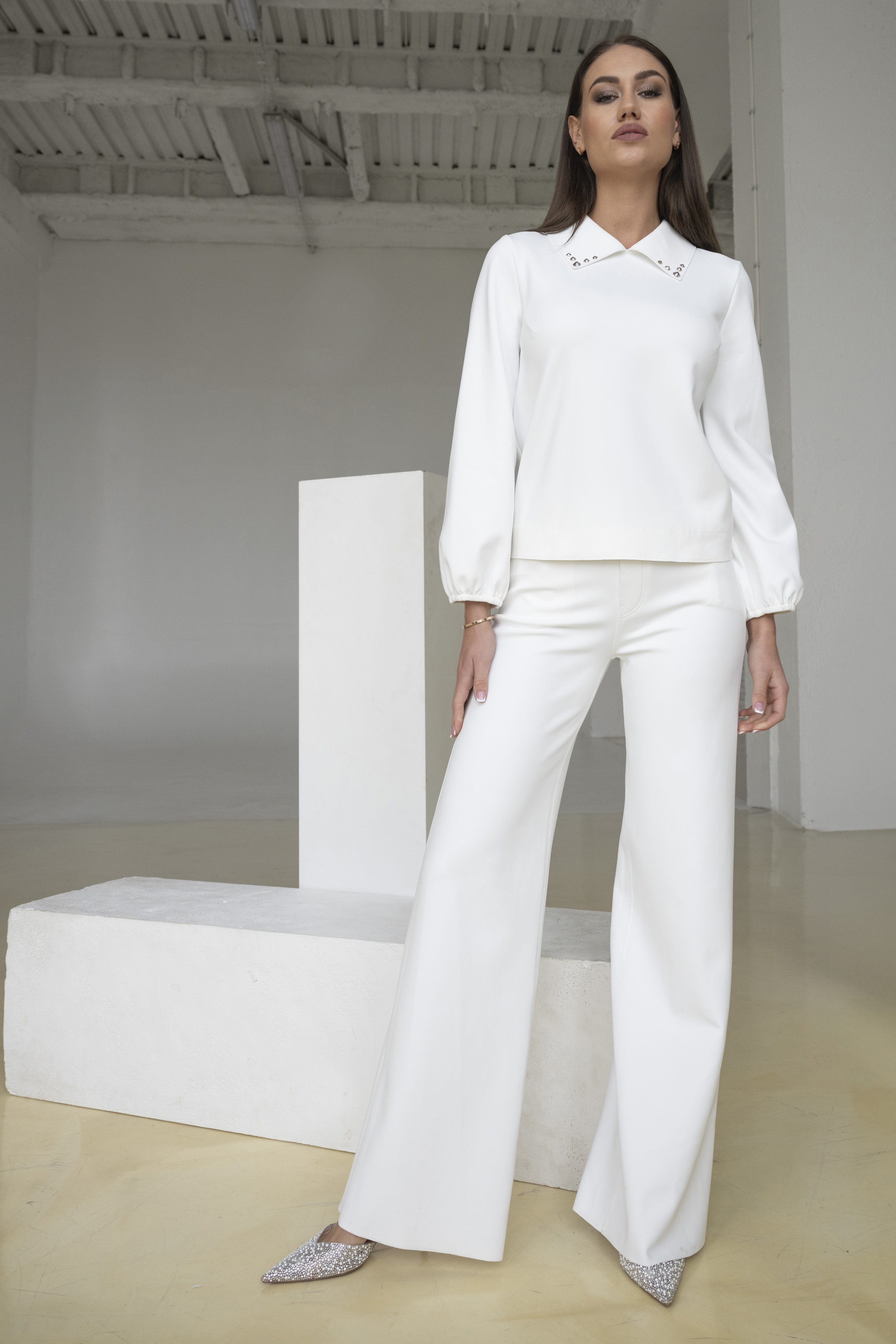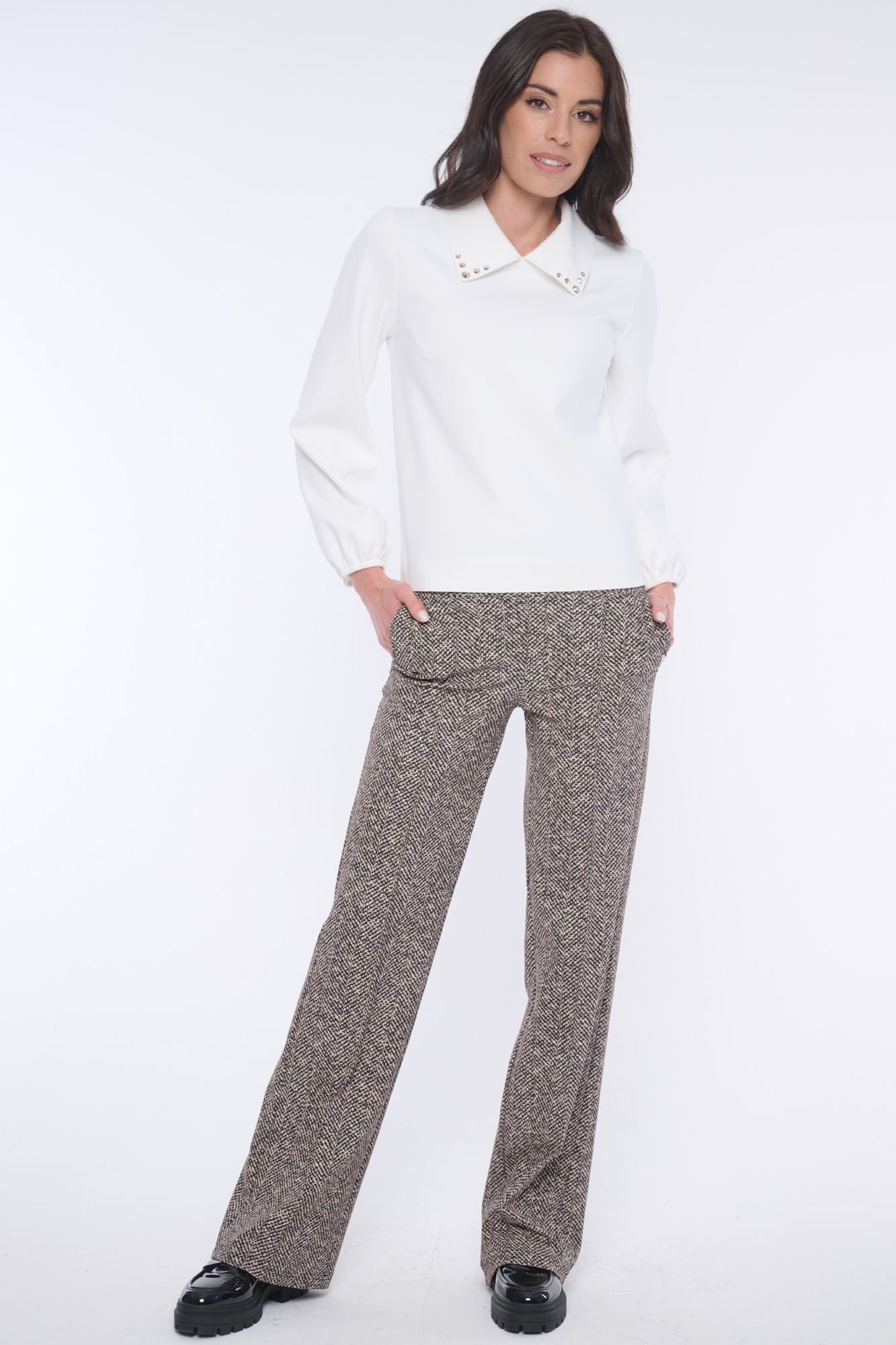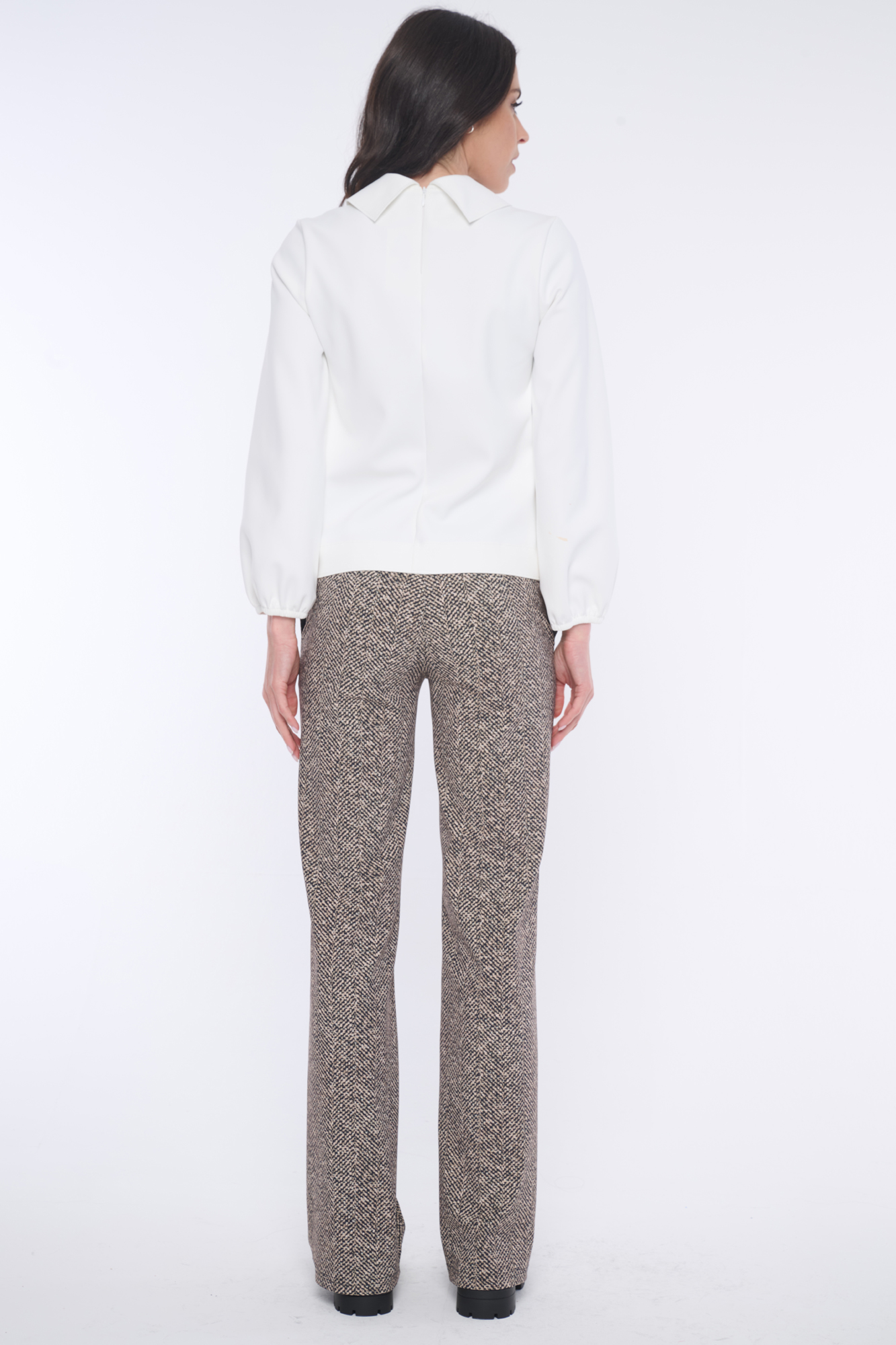 Krátký top s límečkem a dlouhými rukávy z módního materiálu Scuba.