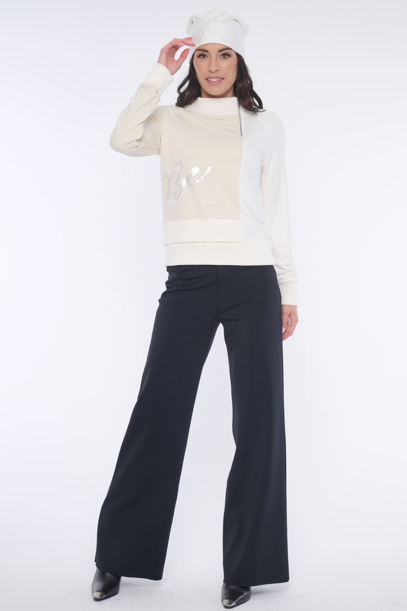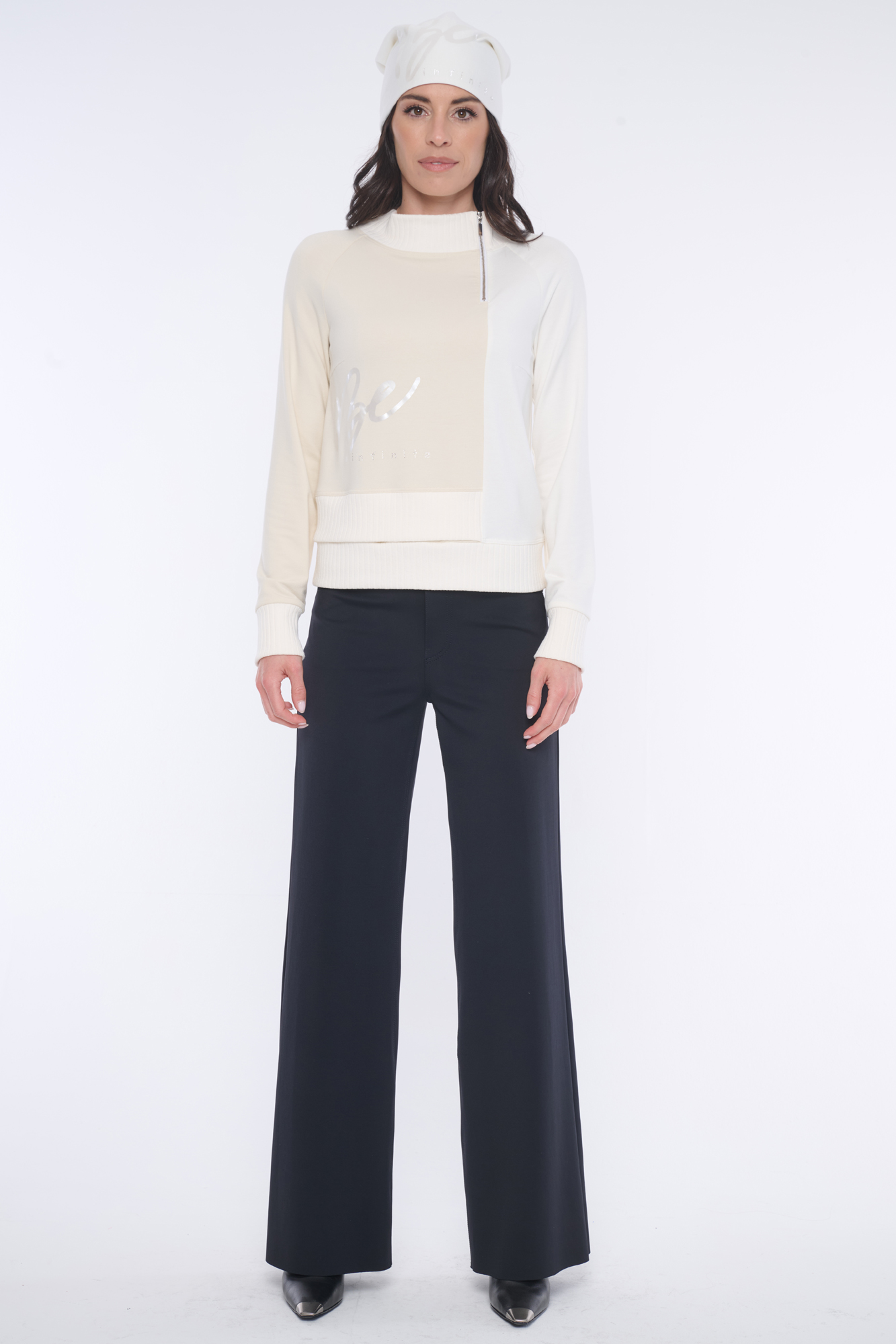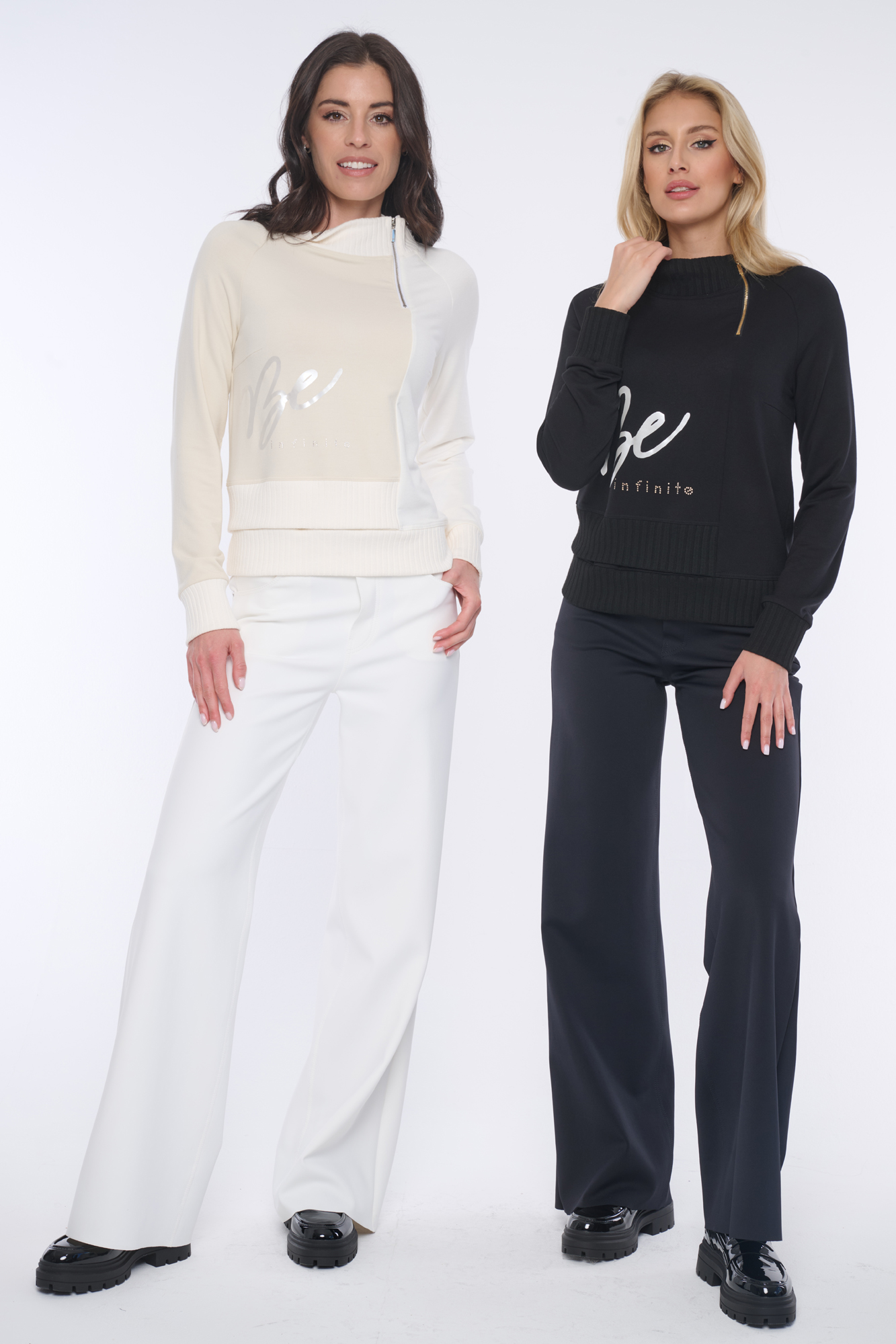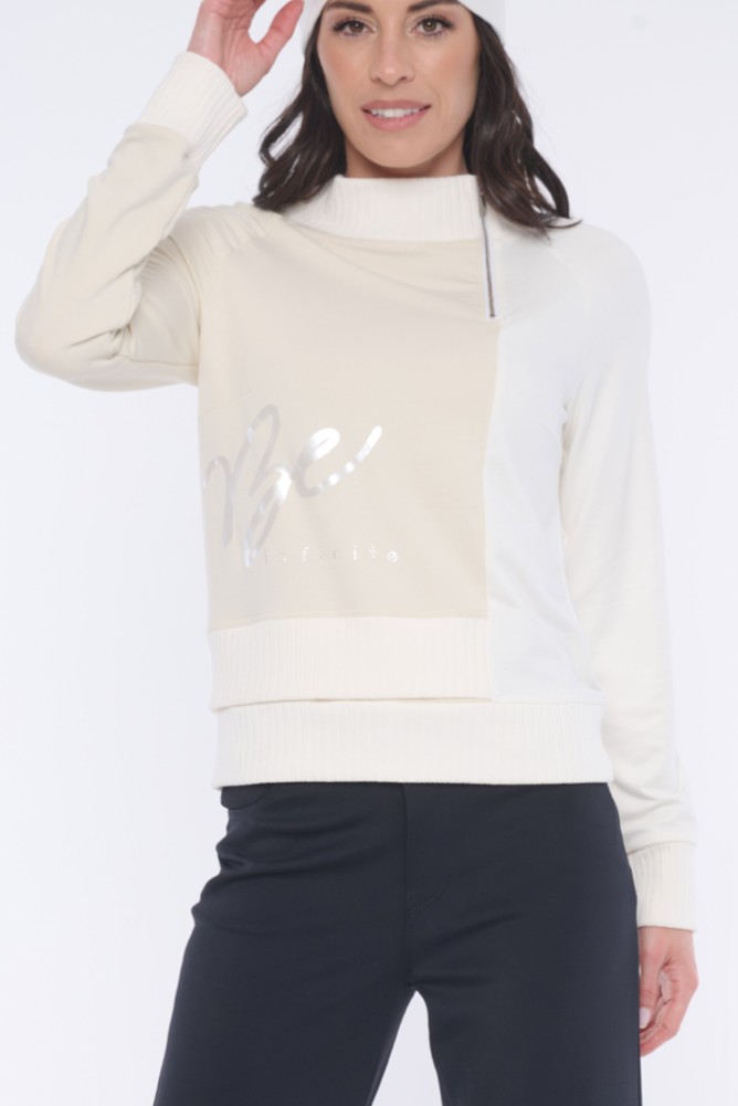 Atraktivní mikina Infinite s tiskem v boku na přední straně. Narukávech a u krku "rib" úlet. Nápis Infinite z krystalů Preciosa.