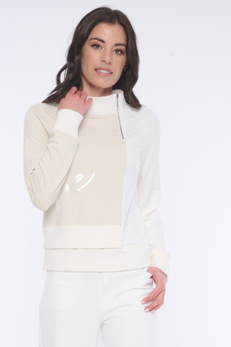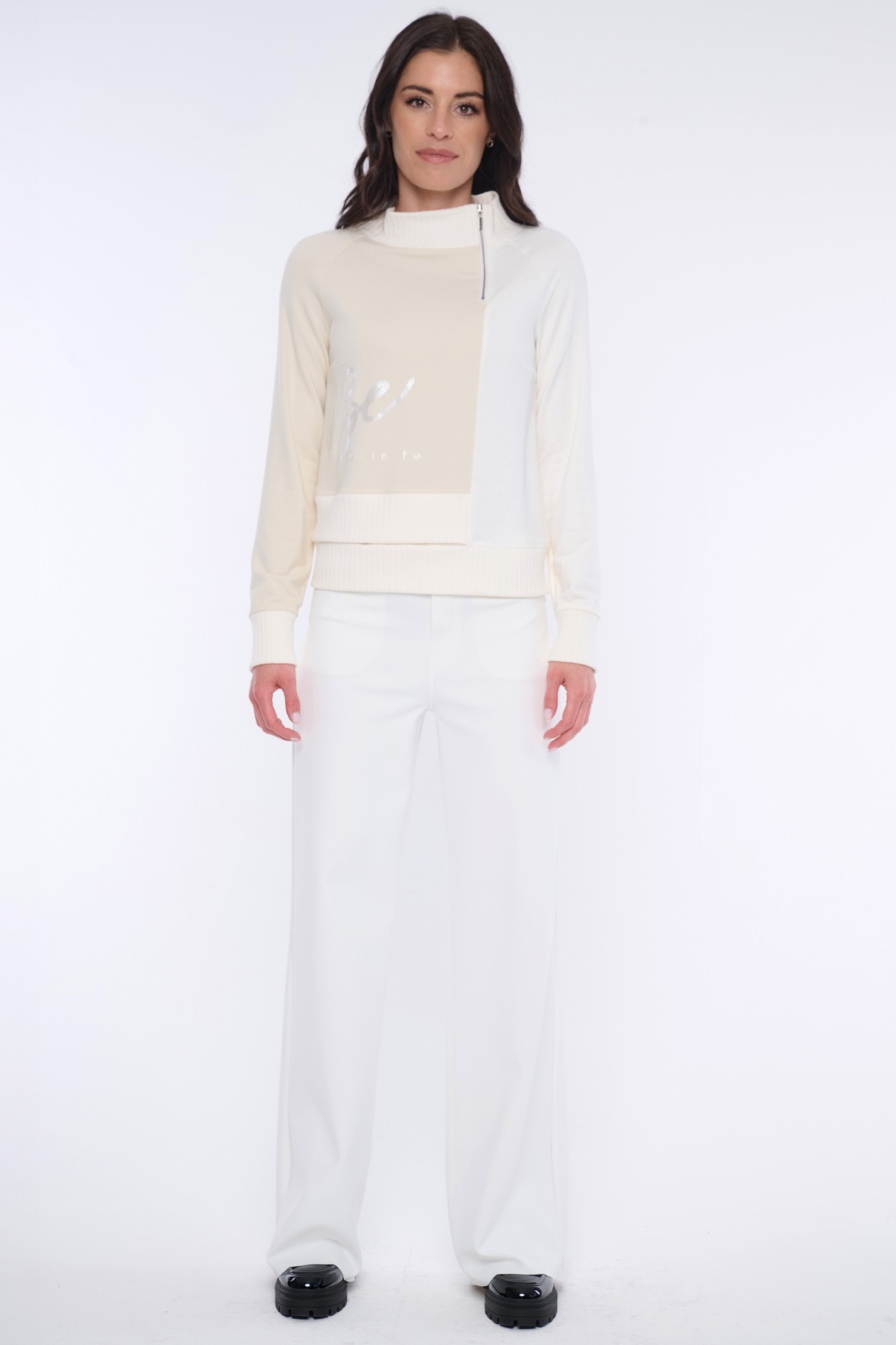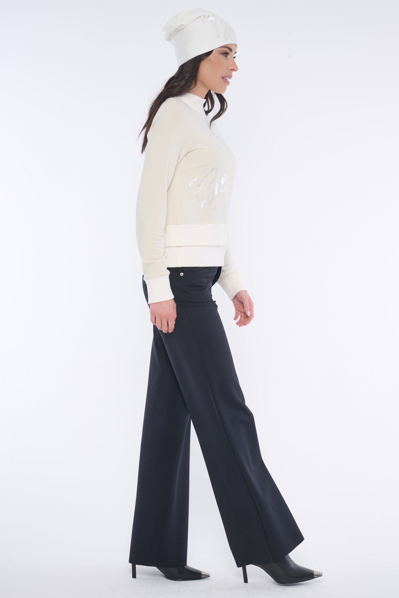 Atraktivní mikina Infinite s tiskem v boku na přední straně. Narukávech a u krku "rib" úlet. Nápis Infinite z krystalů Preciosa.