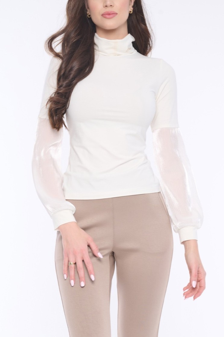 Rolák s volnými rukávy z luxusního lesklého materiálu doplněn krystaly Swarowski. Vhodný na každodenní nošení i výjimečné příležitosti.