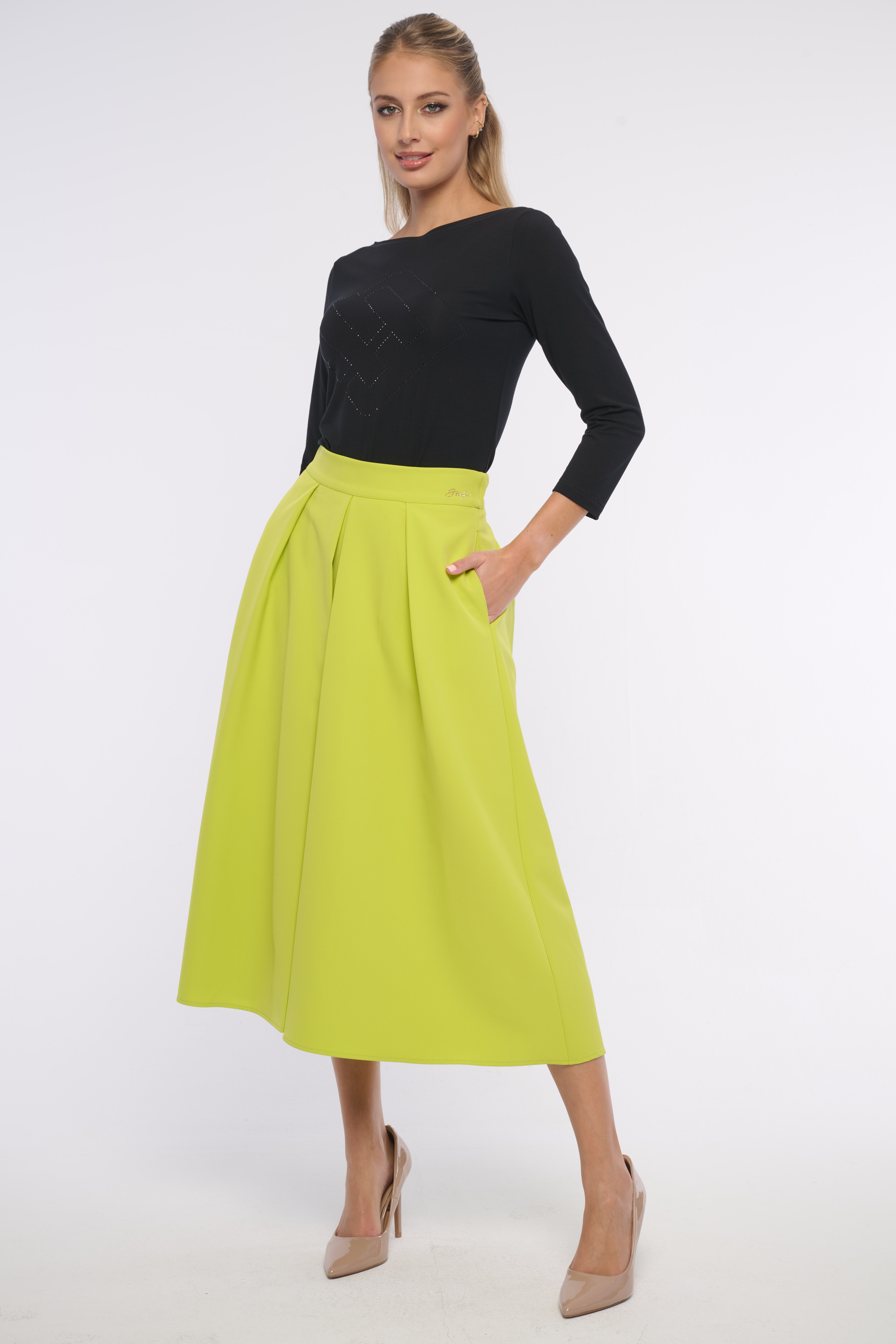 Triko se slušivým lodicovým výstřihem, tříčtvrteční rukávy a velké logo z luxusních krystalů Preciosa. Jednoduchý, avšak efektní kousek, který by neměl chybět v žádném šatníku. Dostupný ve třech barevných variantách.